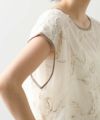 【CHIGNONSTAR(シニヨンスター】から、立体的なモール糸とラメ糸の刺繍で、華やかな印象のチュールレースを使用したブラウスをセレクト。