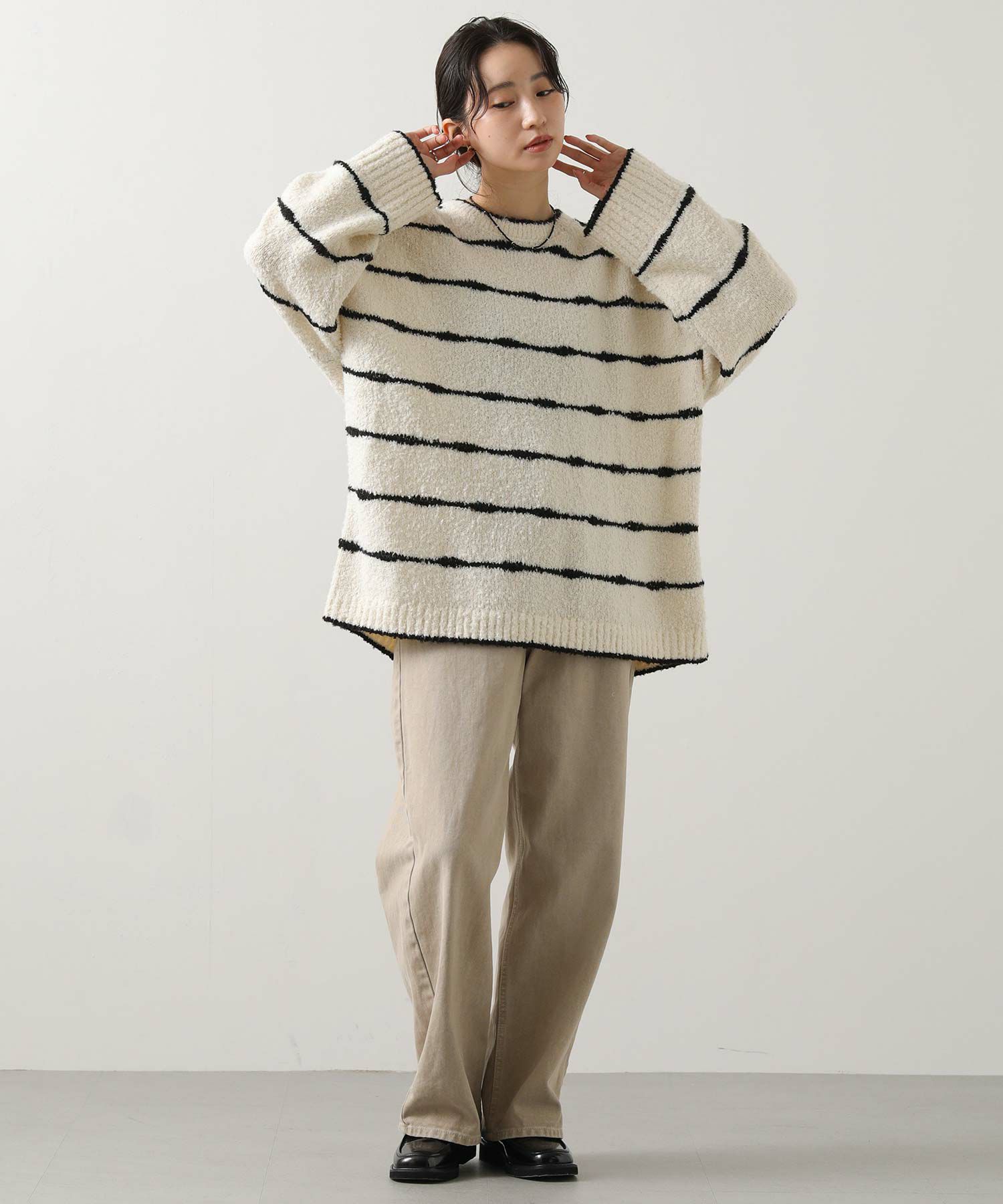 【CHIGNON(シニヨン】から、手書きのような強弱のラインが入ったボーダーニットをセレクト。