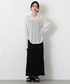 シアー素材で女性らしいのでマニッシュなスラックスをミックスさせたり、サテンやとろみのあるボトムで女性らしさをアップさせるのもオススメ。