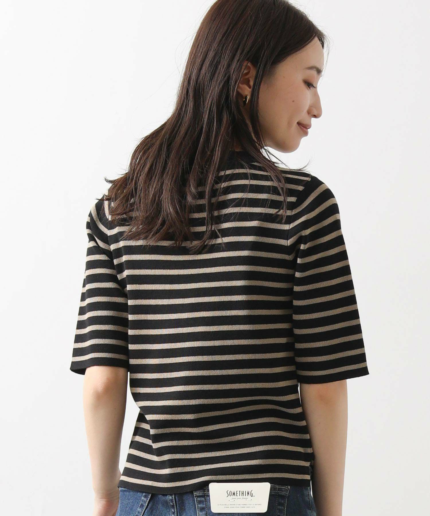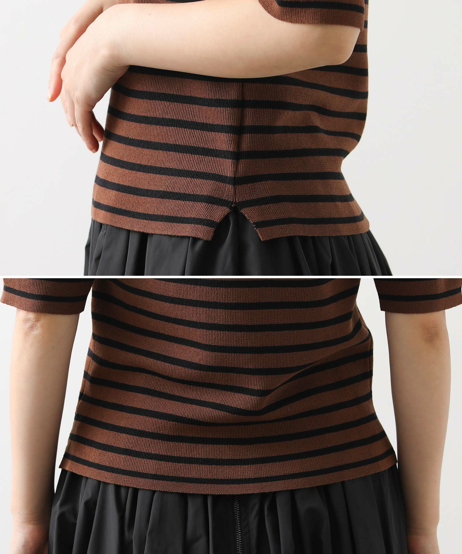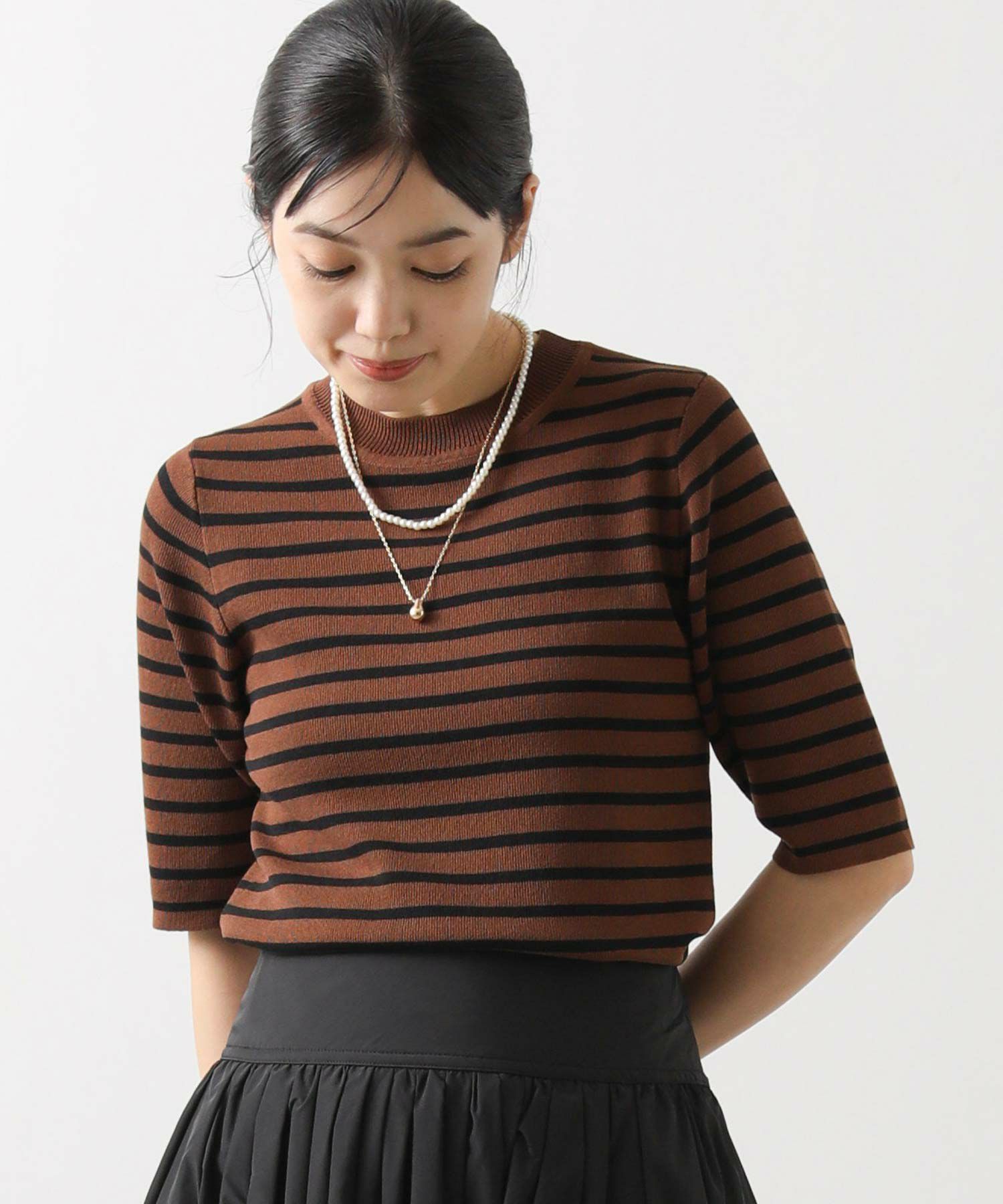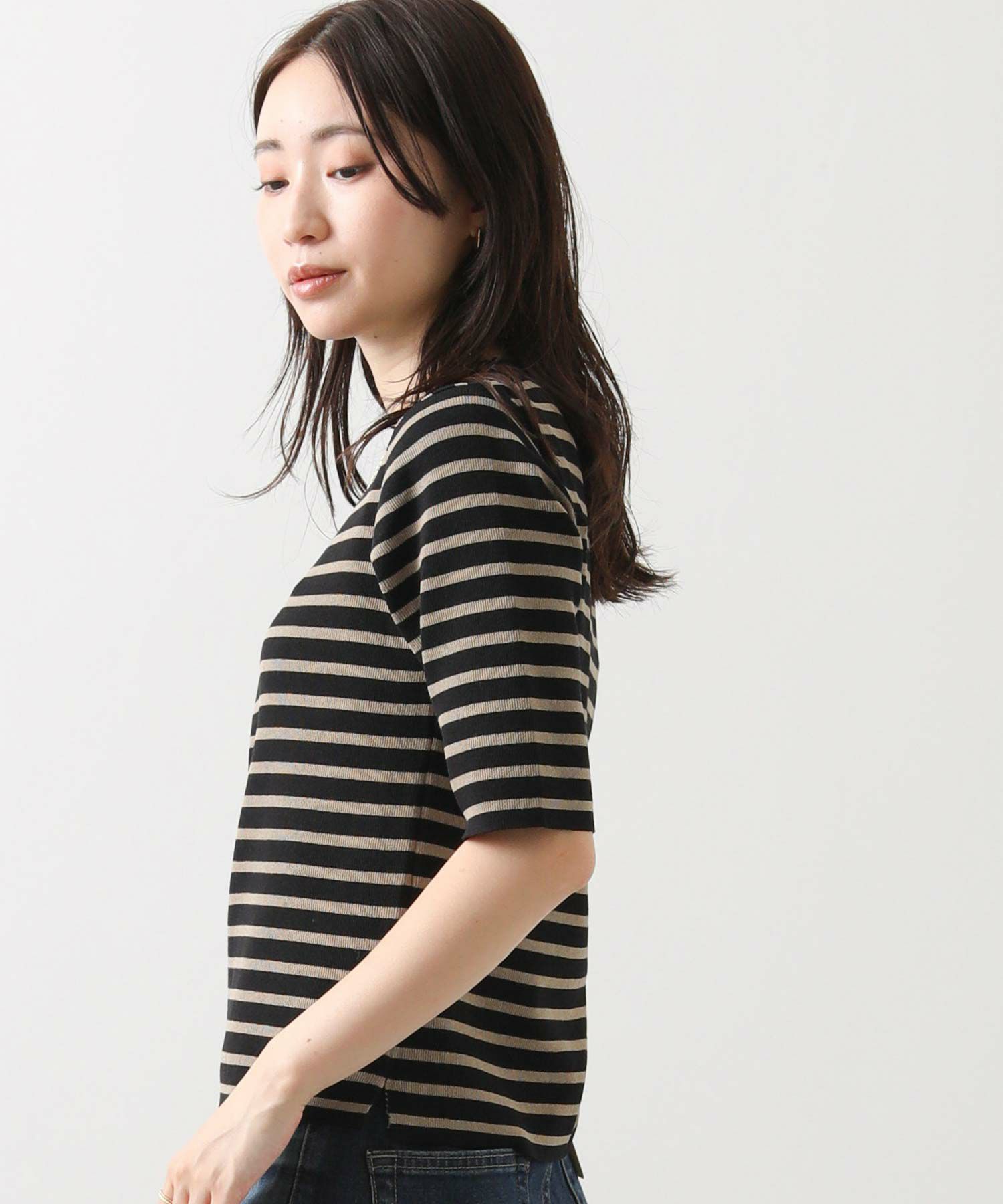 【CLOCHE(クロッシェ】から、伸縮性の高いボーダー5分袖ニットをセレクト。