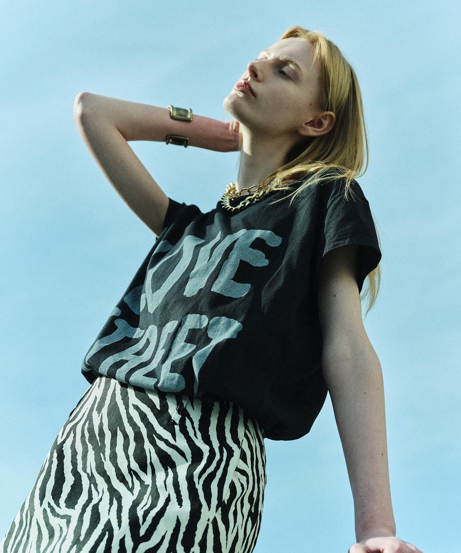 カットオフ仕様と大胆なロゴがエッジの効いたTシャツ。