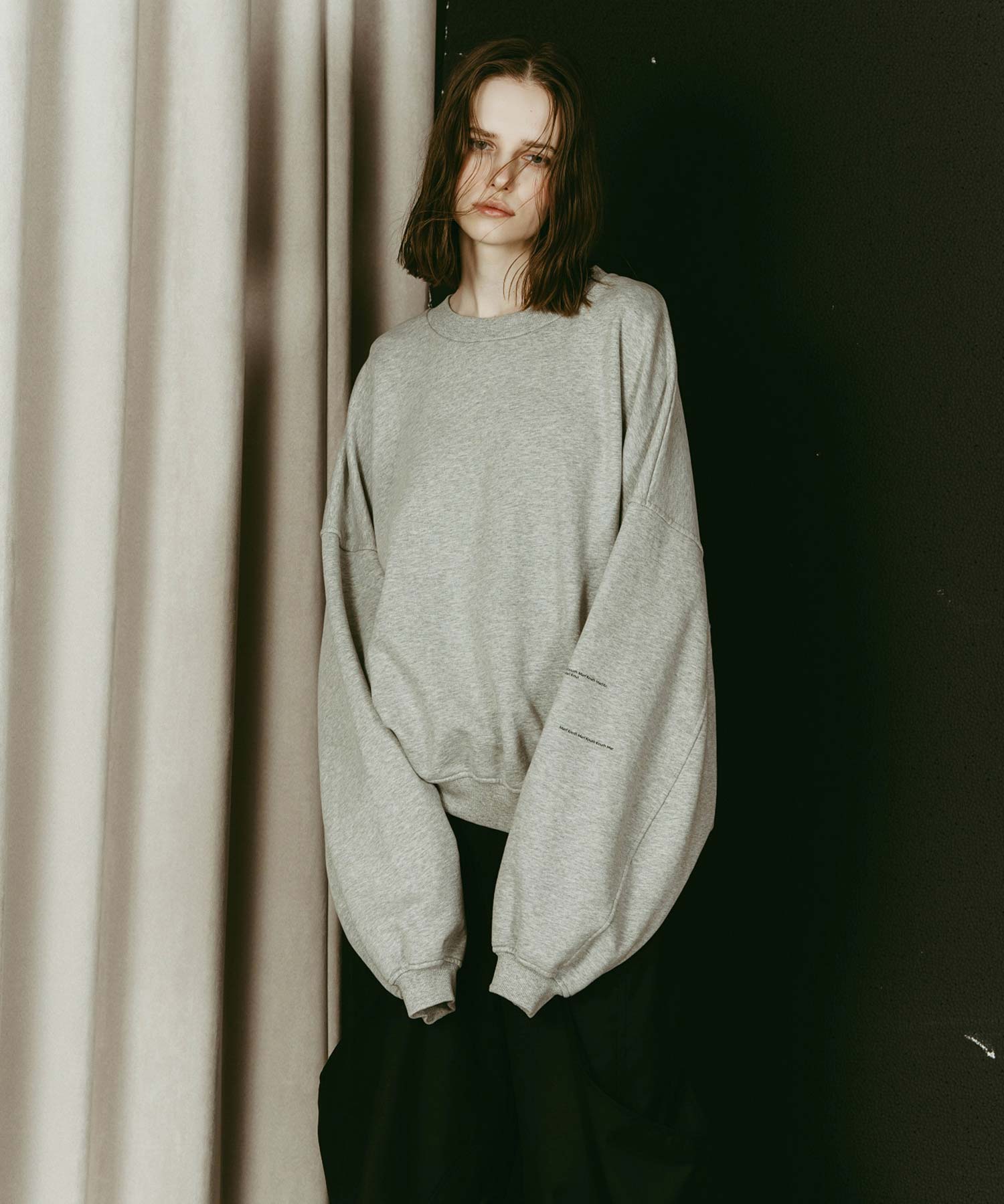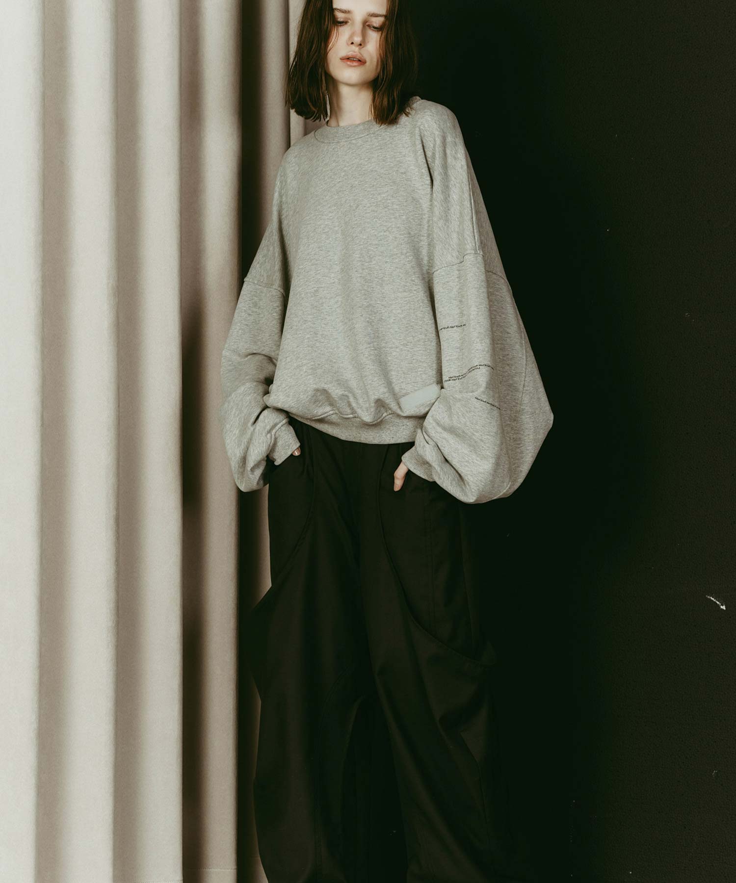 ヴィンテージのような風合いと、構築的なボリュームラインが共存するスウェット。