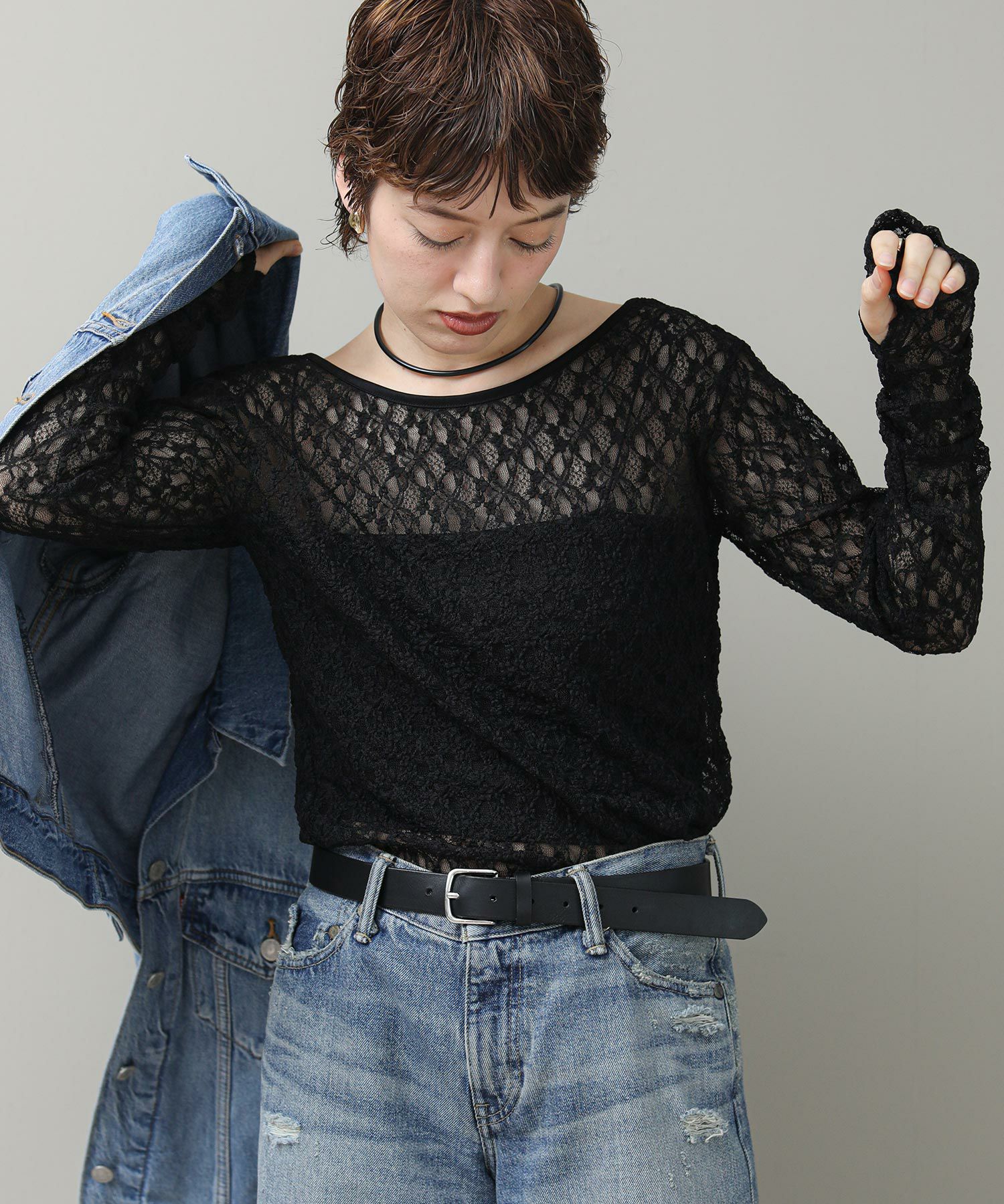 エレガントな雰囲気とは相反してしっかりとしたストレッチがあり、着心地抜群です。程よいシアー感でスタイルに奥行きを与えてくれるアイテム。ニットやシャツの下からレースの袖を覗かせてくしゅっとさせるスタイリングもおすすめです。 一枚で着てもレイヤードのインナーとしても着用でき、長く愛用していただけます。