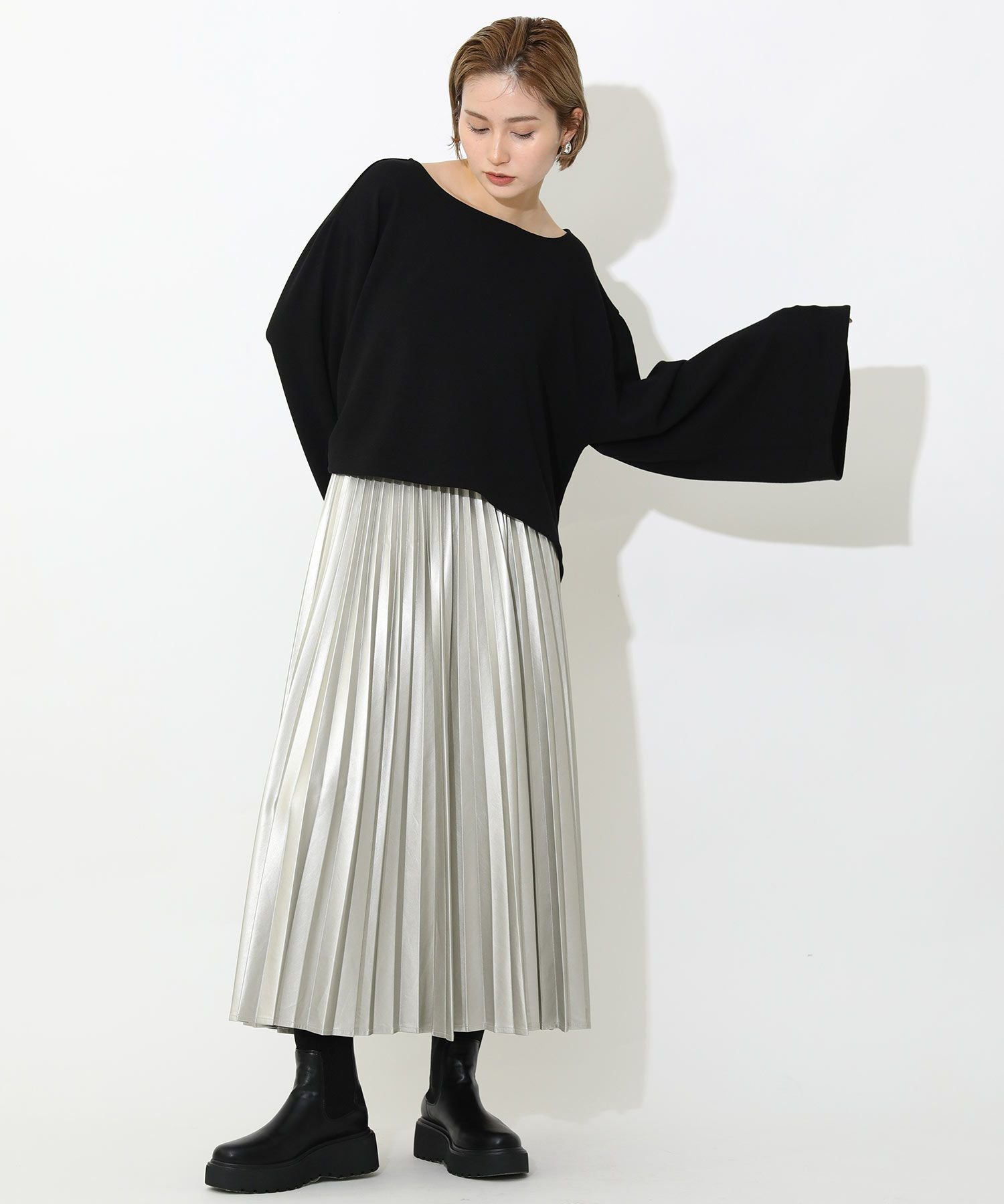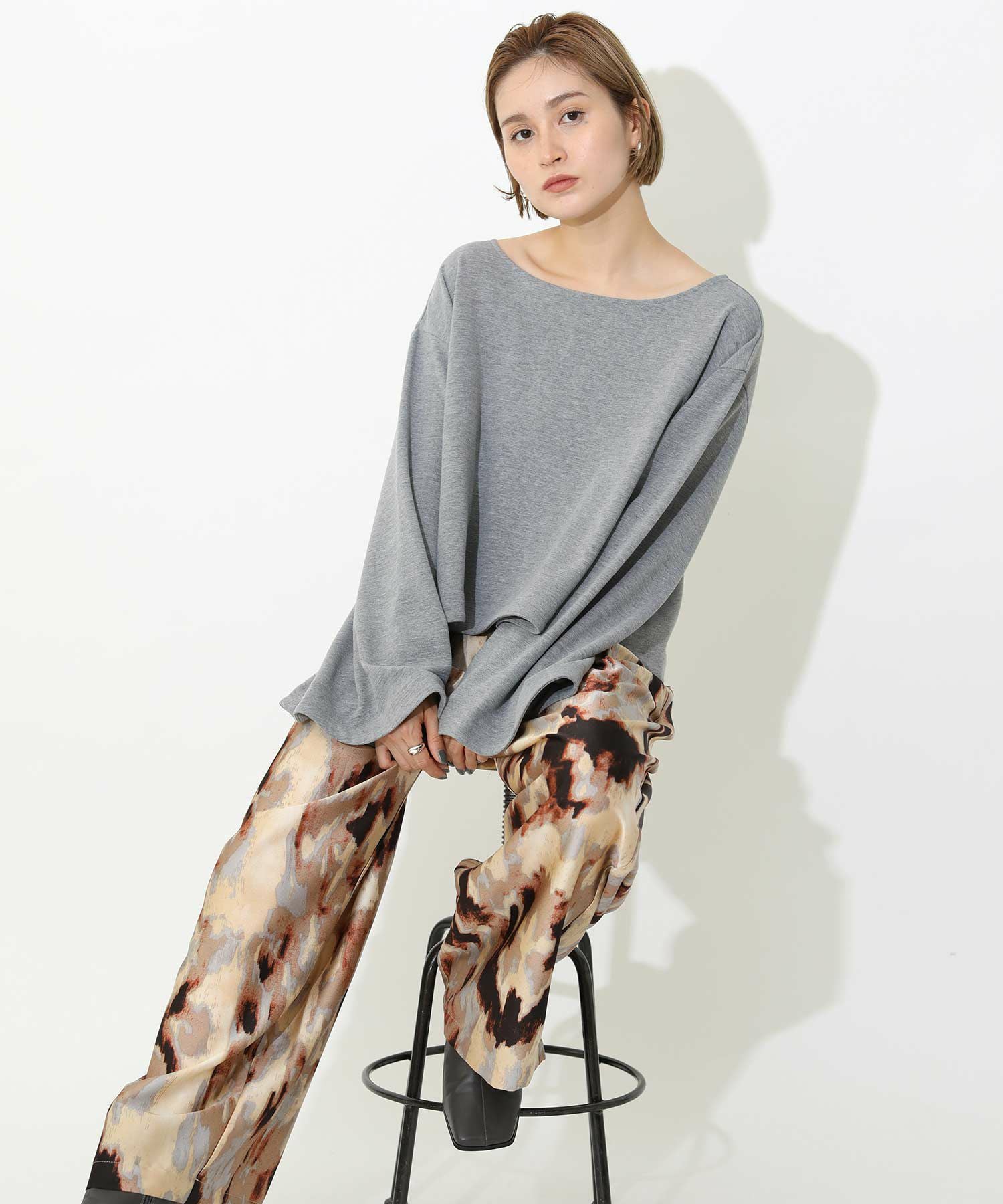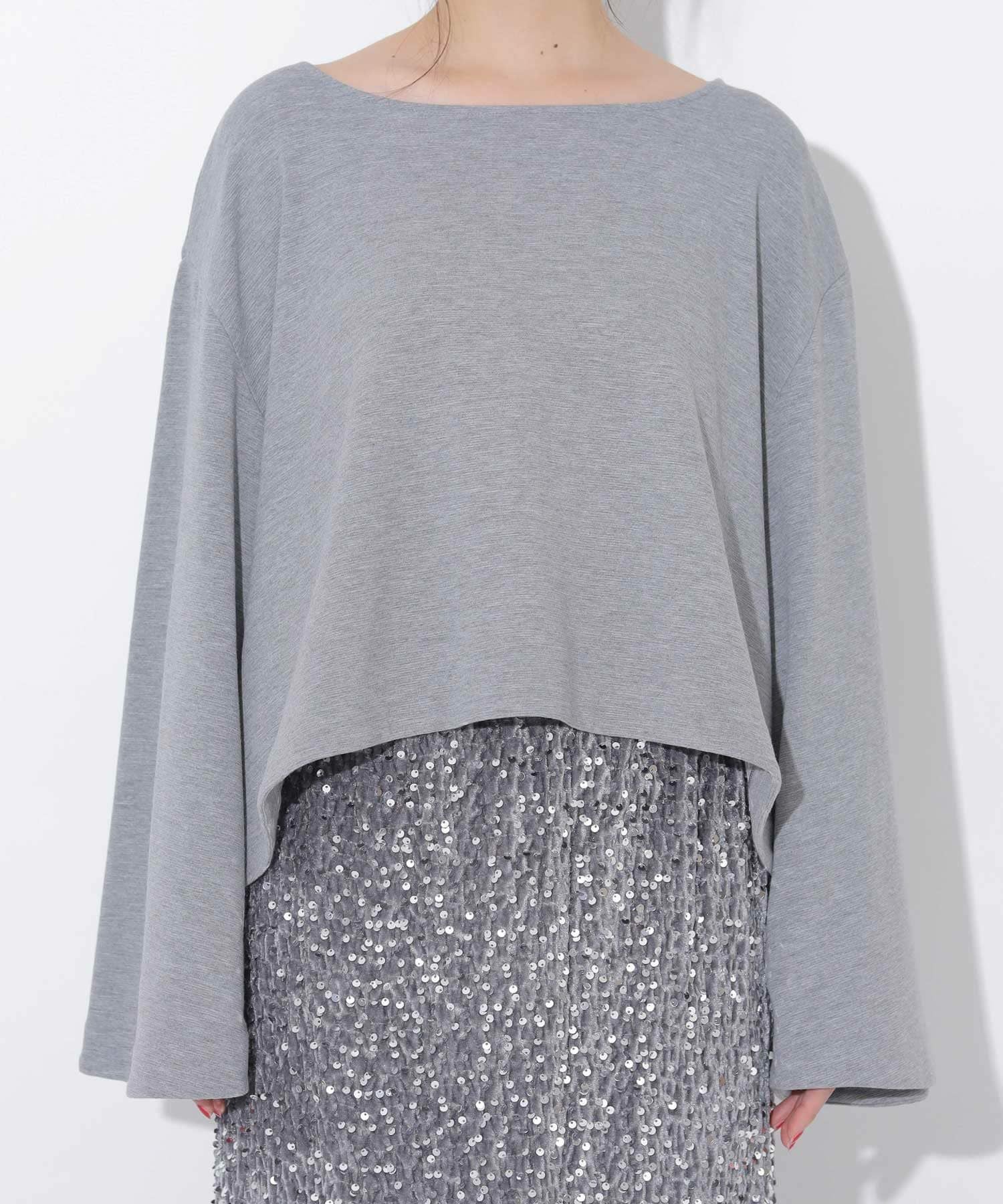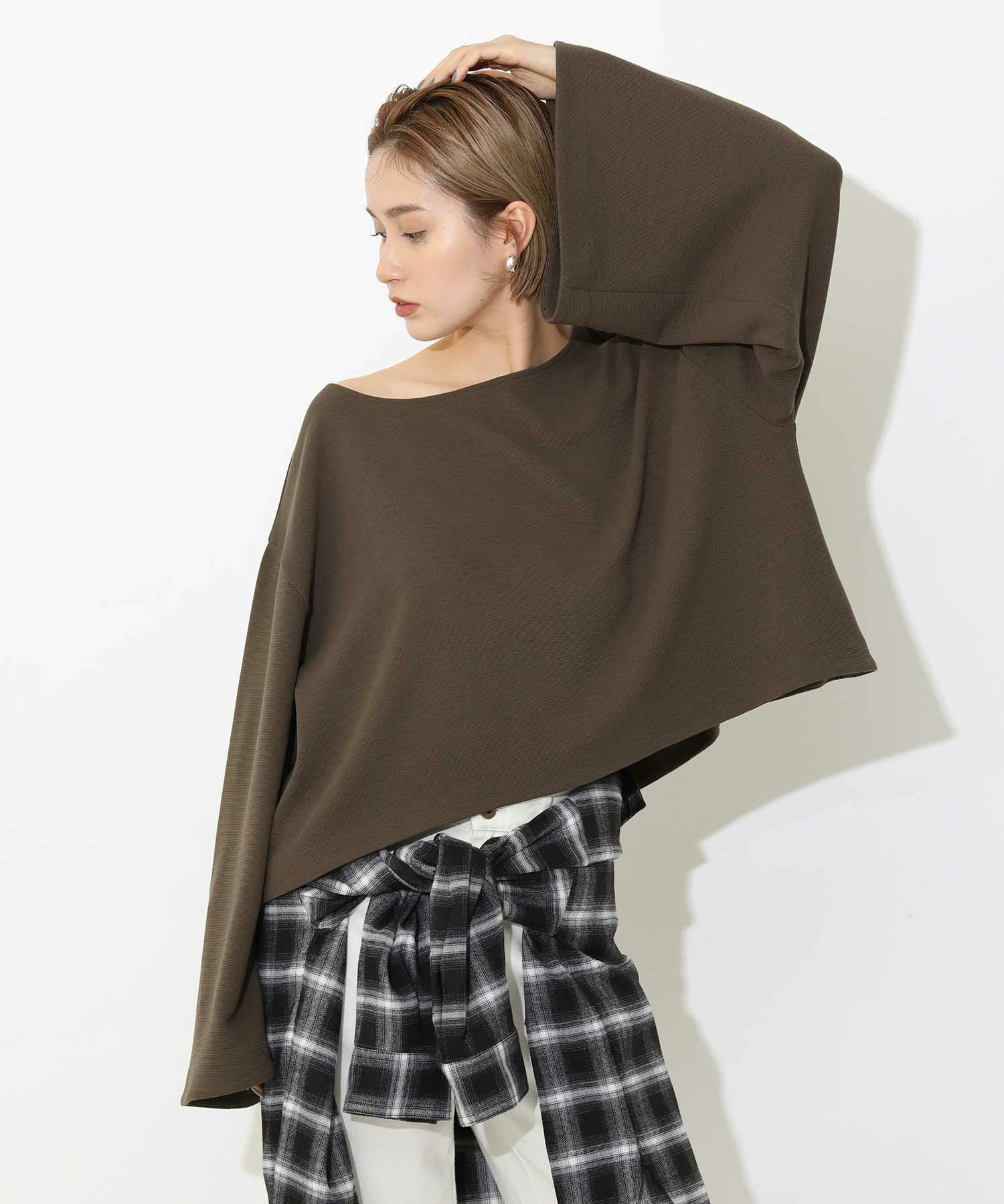 伸縮性が高く、ボディラインを拾わないリラックスしたシルエットがストレスフリーな着心地。広がりのあるフレアスリーブが手元に上品なニュアンスを与えます。デコルテを美しく見せるボートネックでよりエレガントな印象に。カジュアルなパンツを合わせたデイリースタイルから、スカート合わせのレディなスタイリングまで幅広く活躍できる一着です。