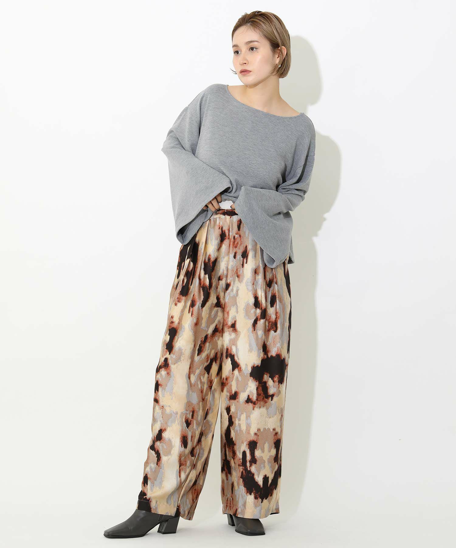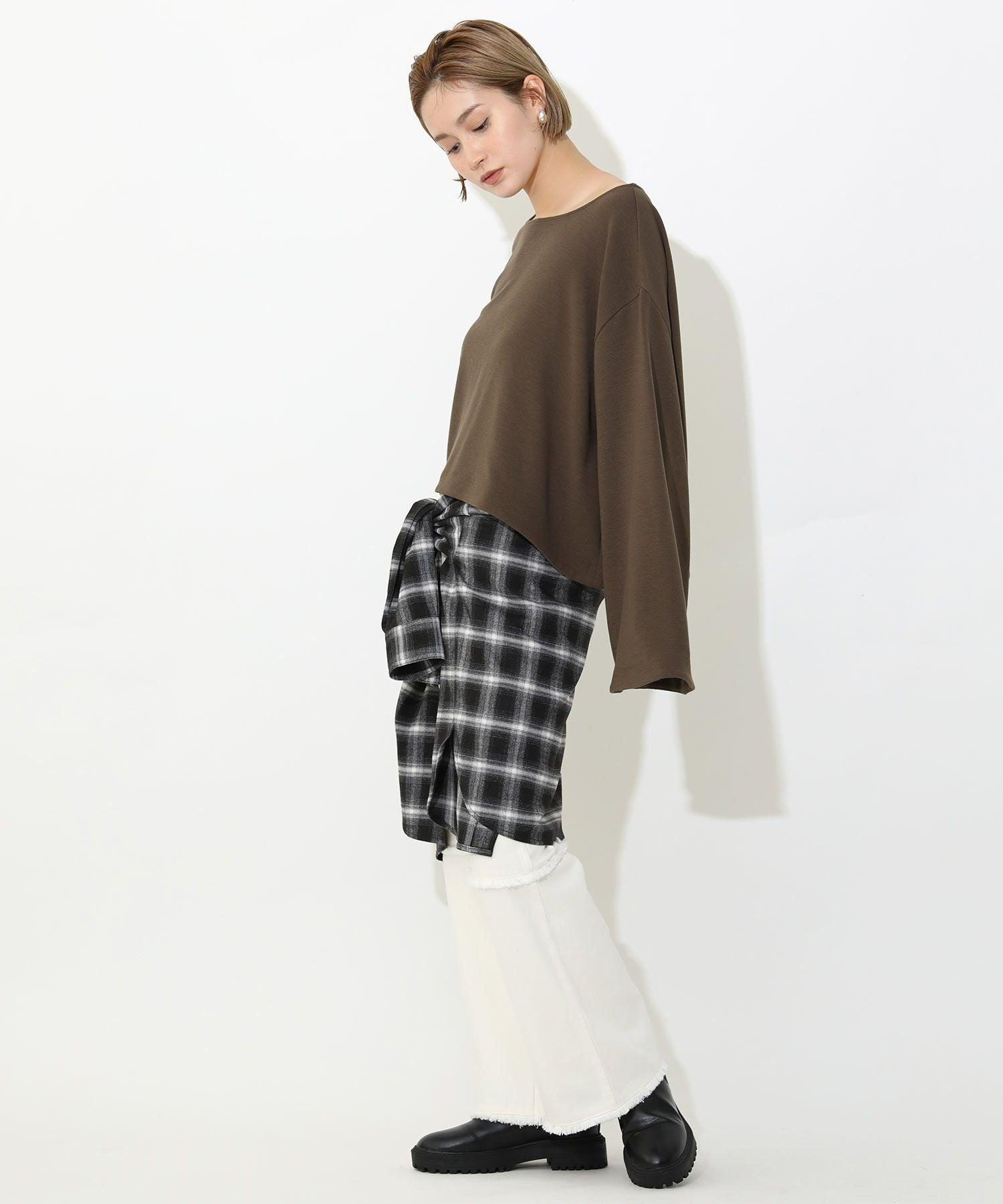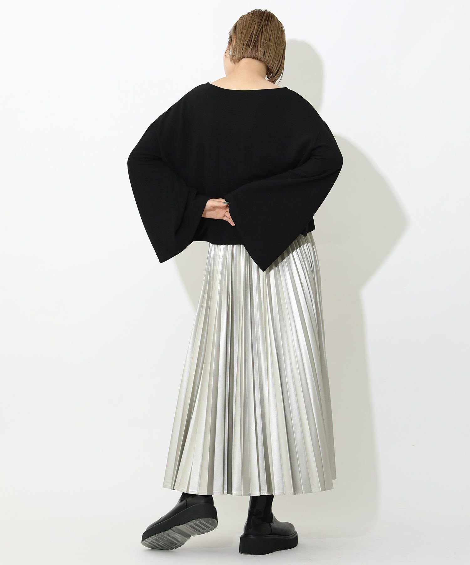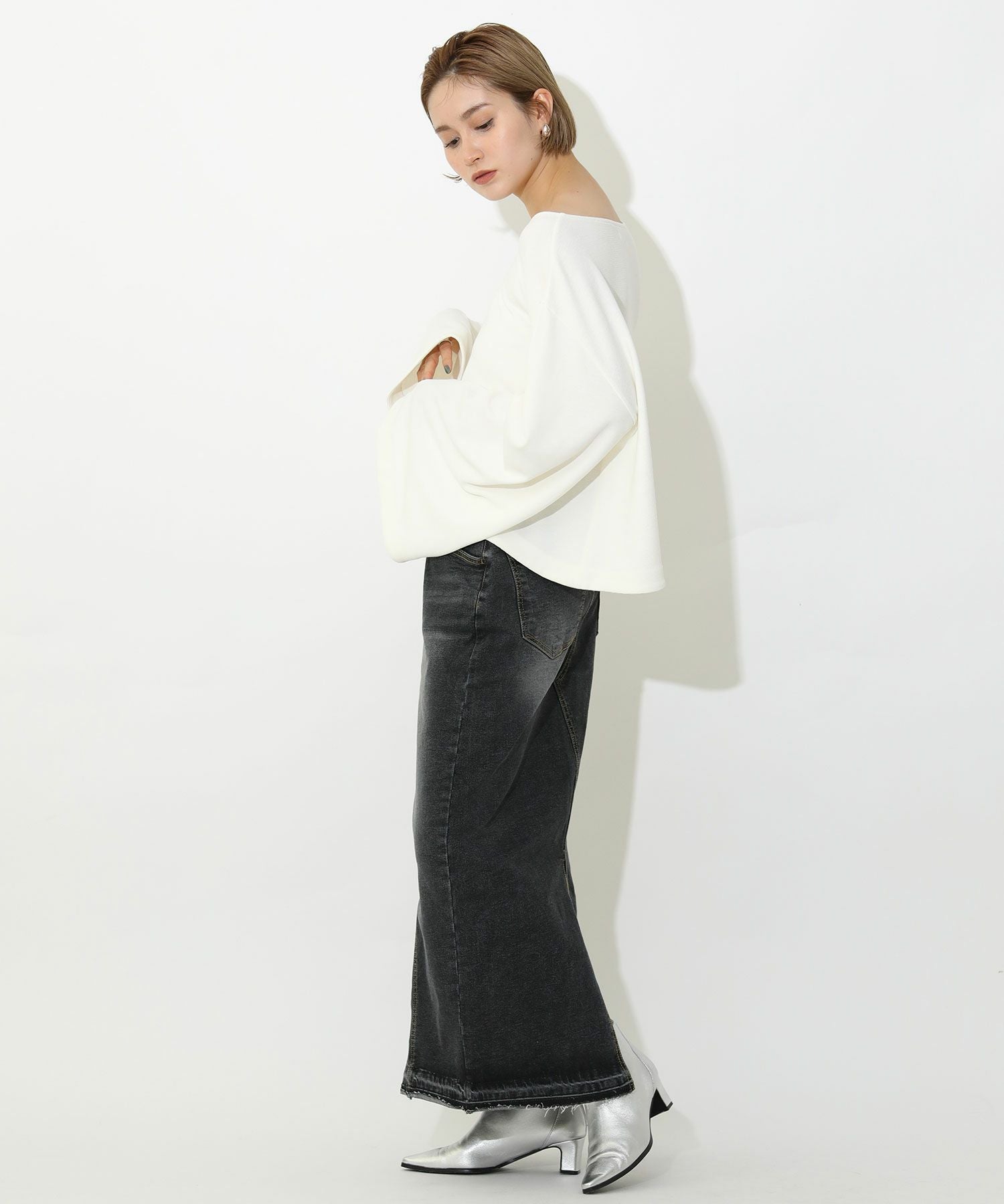 伸縮性が高く、ボディラインを拾わないリラックスしたシルエットがストレスフリーな着心地。広がりのあるフレアスリーブが手元に上品なニュアンスを与えます。デコルテを美しく見せるボートネックでよりエレガントな印象に。カジュアルなパンツを合わせたデイリースタイルから、スカート合わせのレディなスタイリングまで幅広く活躍できる一着です。