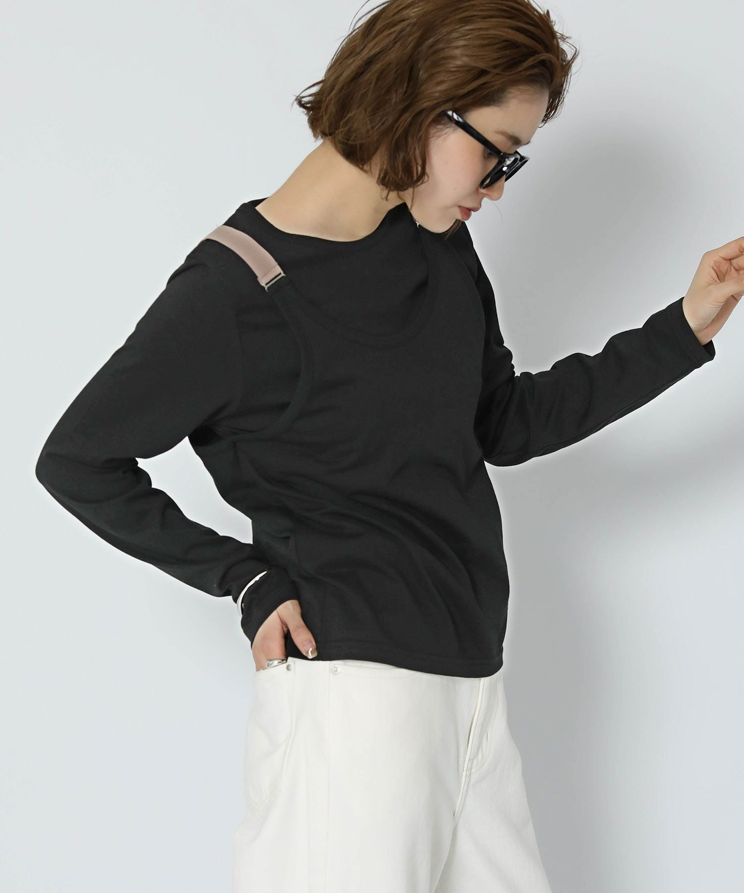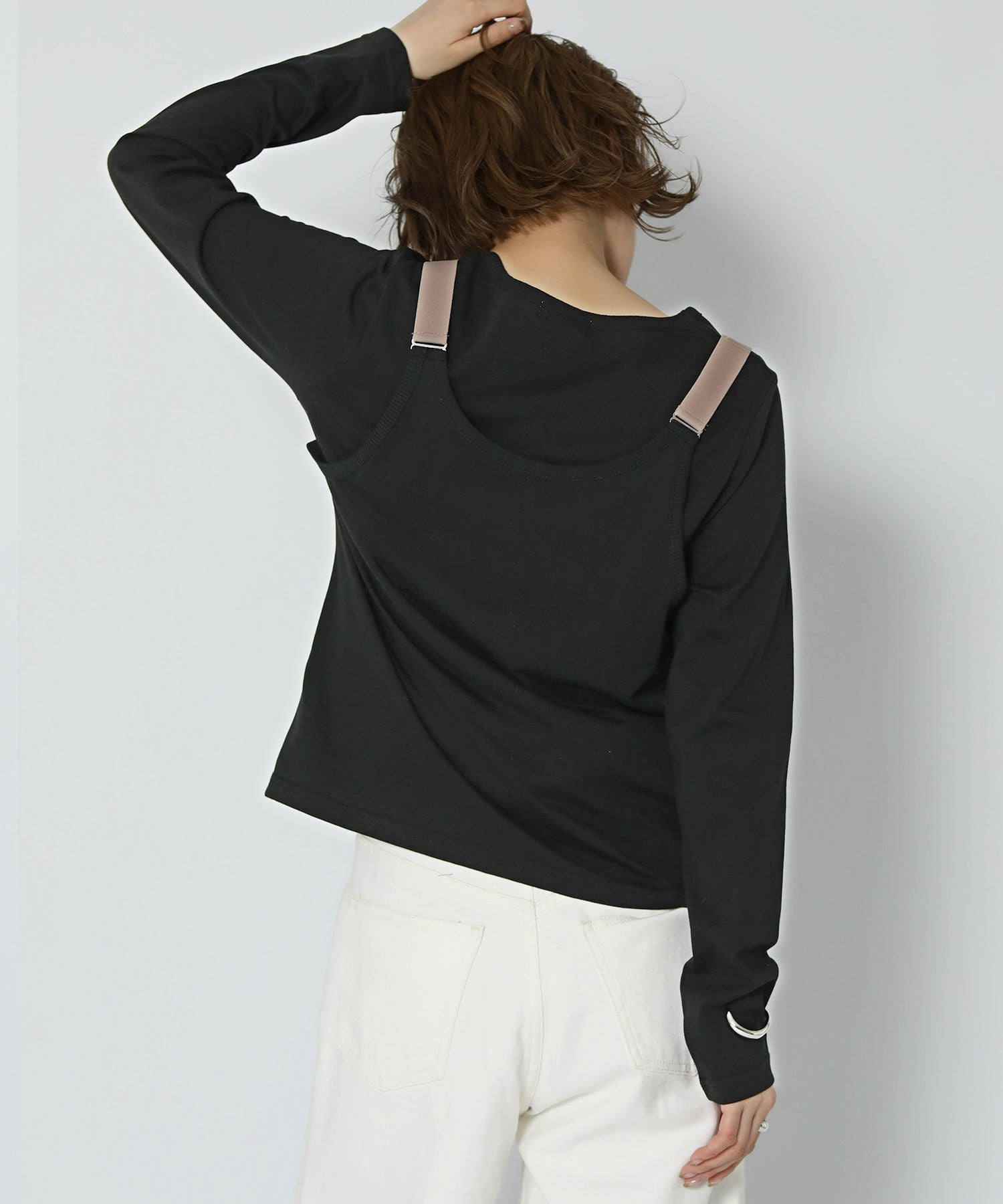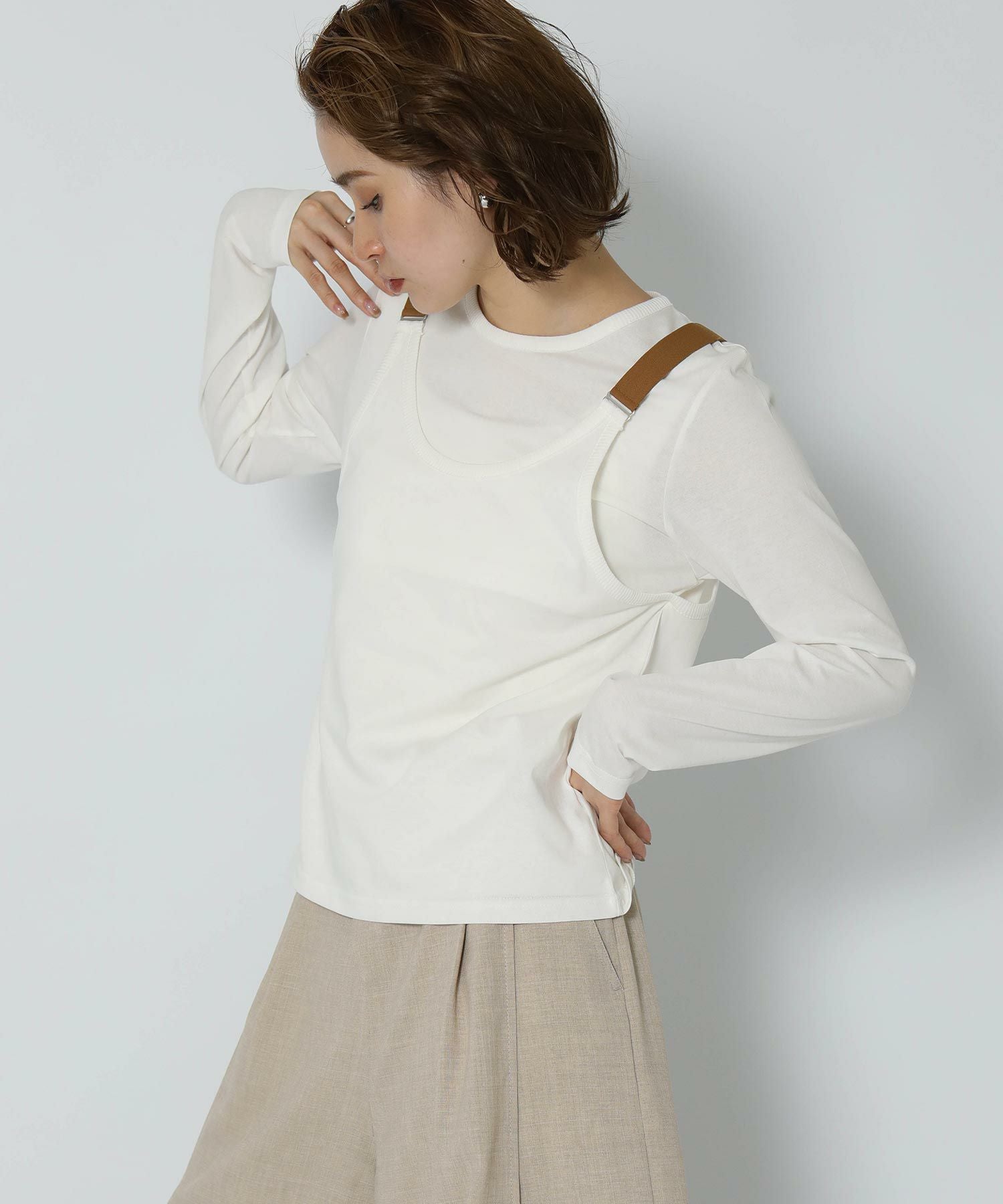 1枚でレイヤードコーデが楽しめる一枚。コンパクトな丈感なので、着ぶくれすることなく、様々なトップスとレイヤードしてお楽しみいただけます。太めに設定した肩紐は、肩幅を華奢に見せる効果も◎