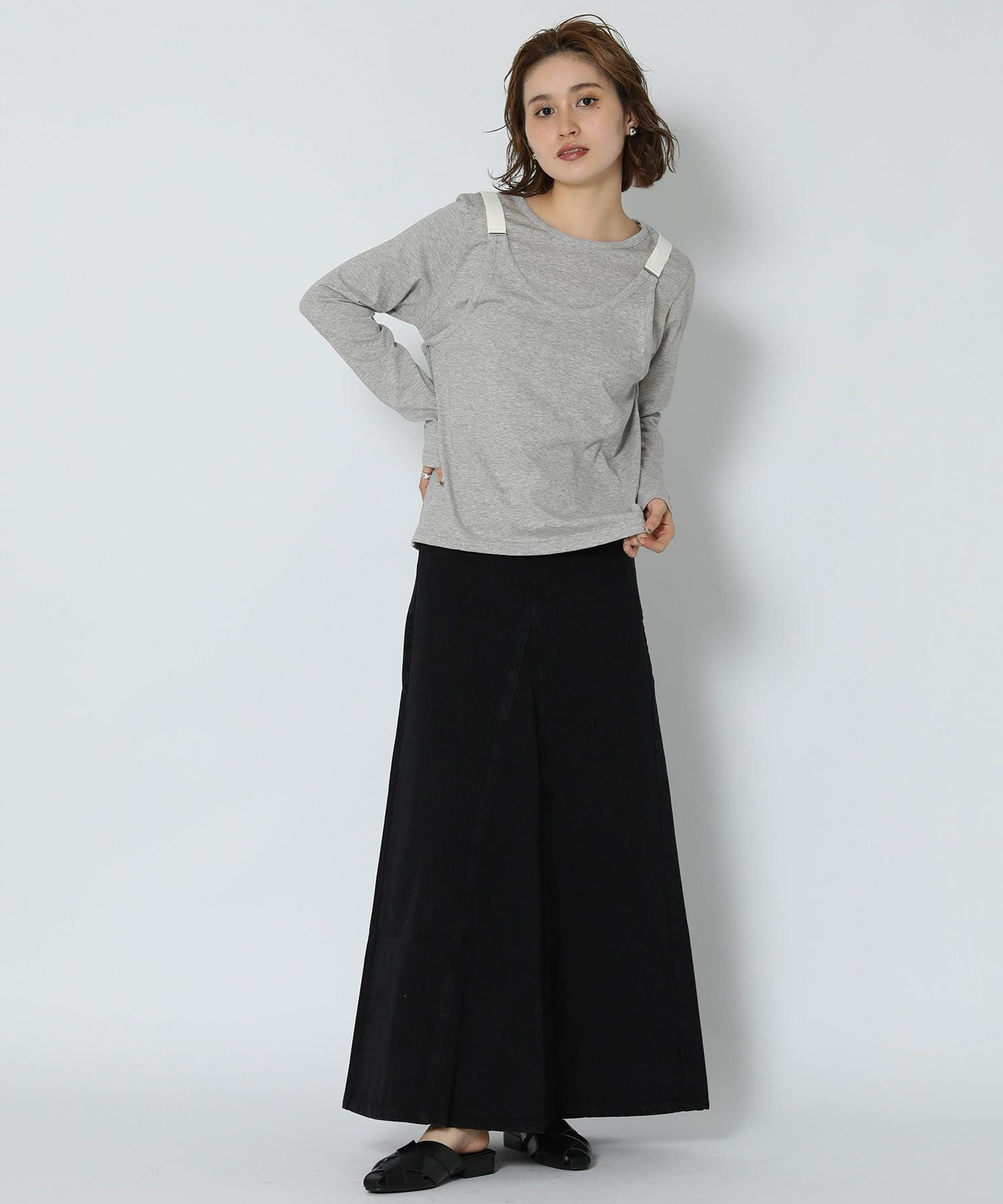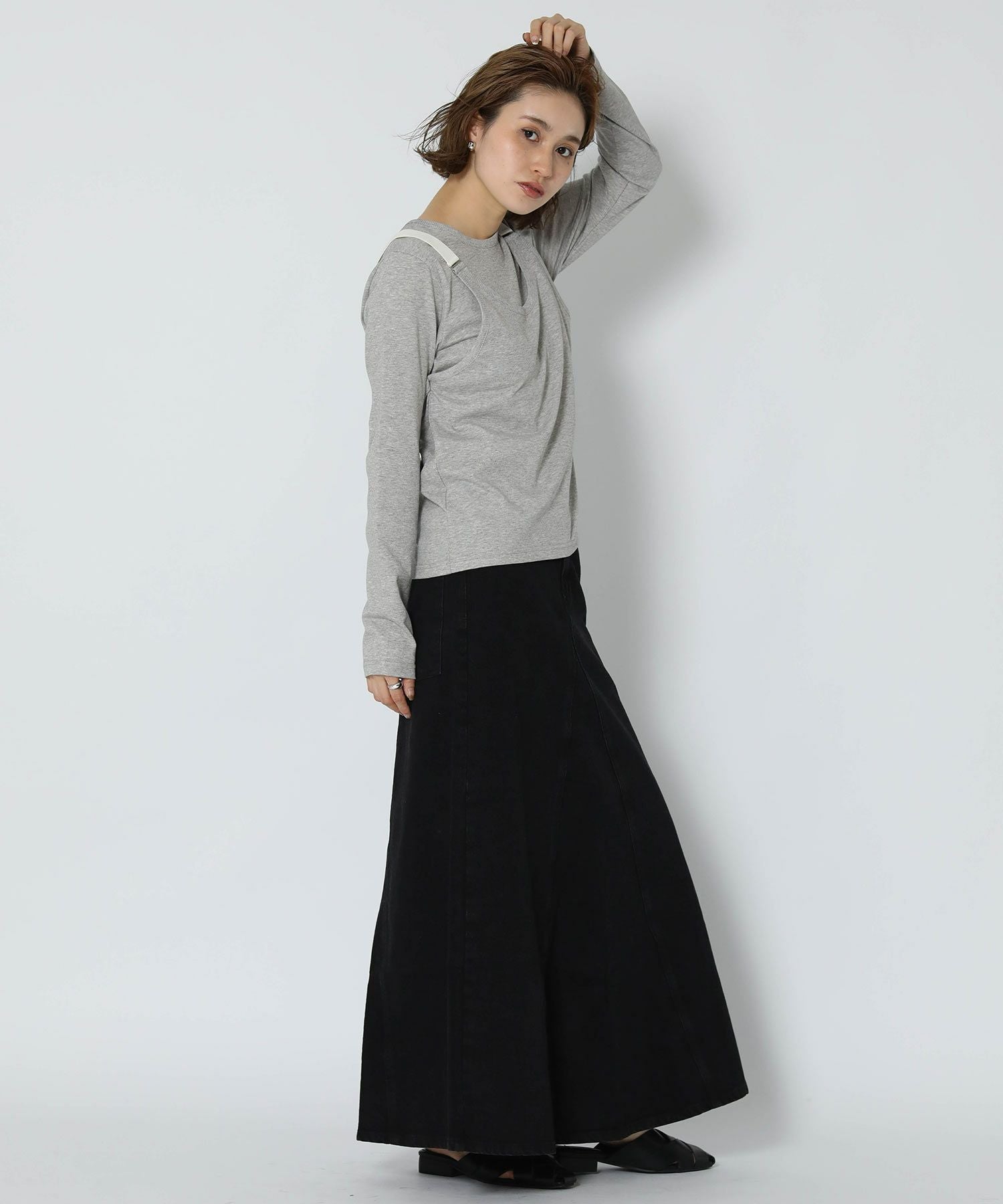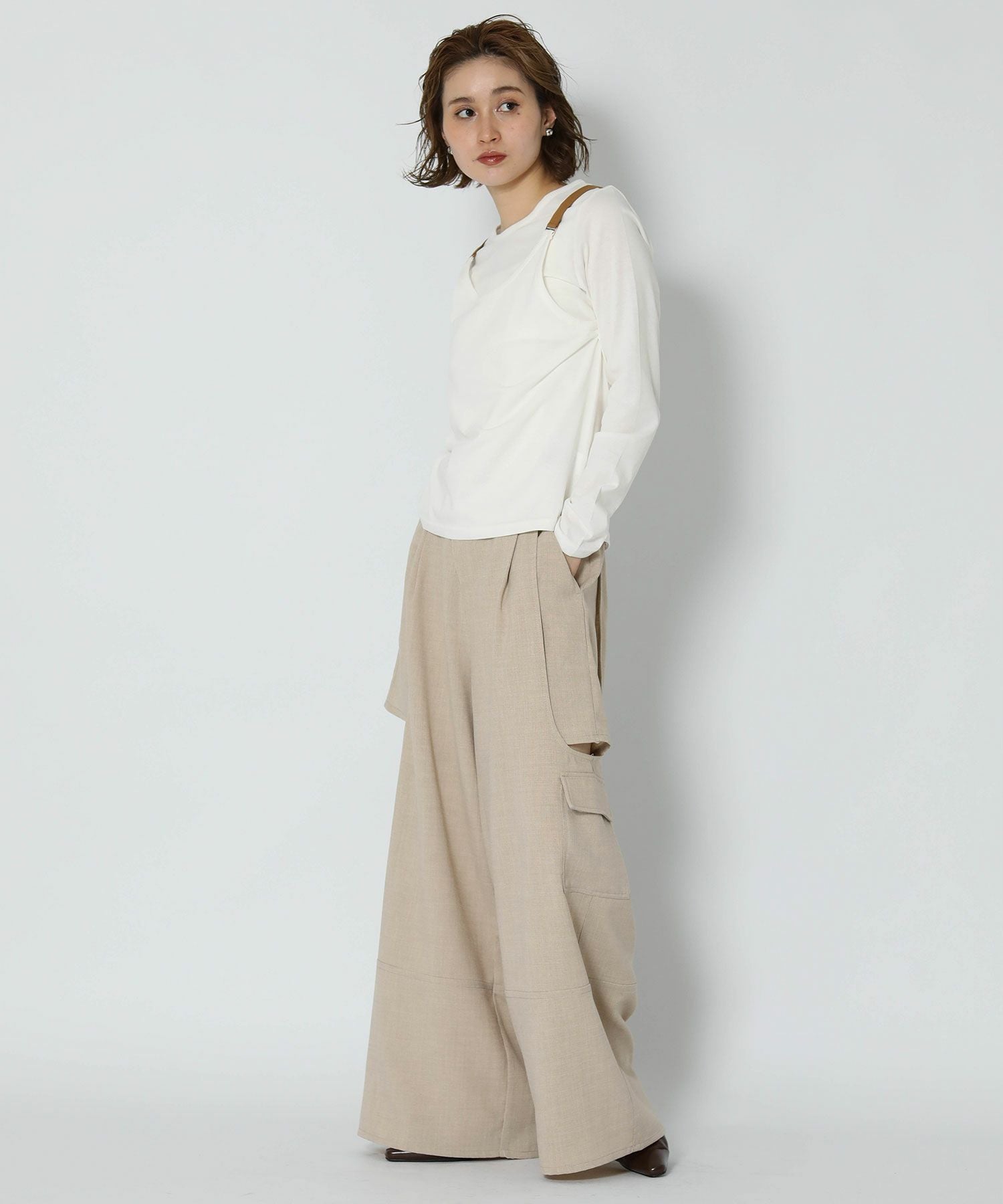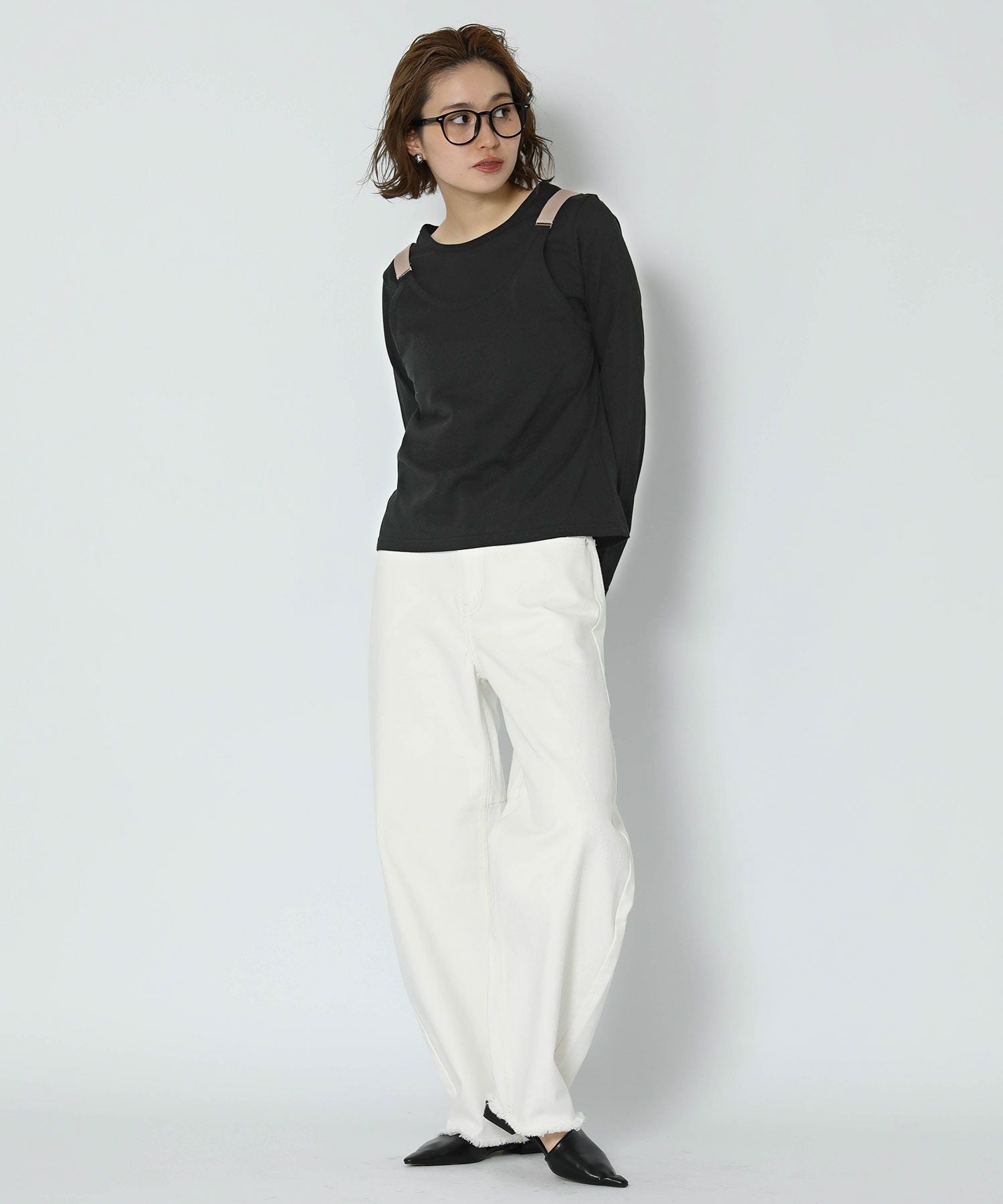 1枚でレイヤードコーデが楽しめる一枚。コンパクトな丈感なので、着ぶくれすることなく、様々なトップスとレイヤードしてお楽しみいただけます。太めに設定した肩紐は、肩幅を華奢に見せる効果も◎