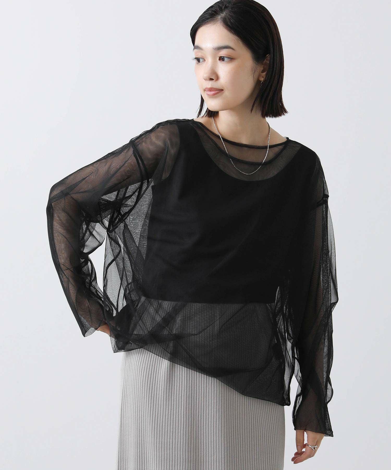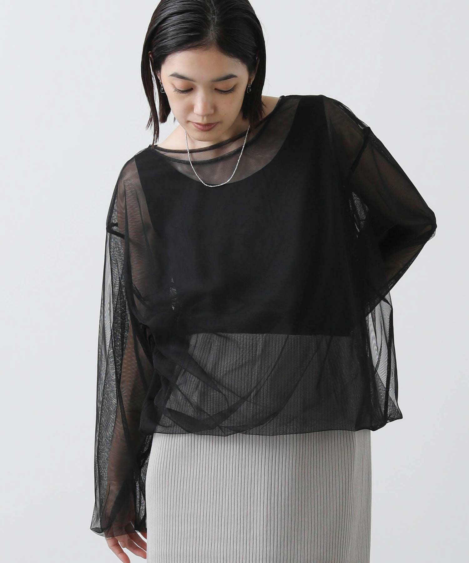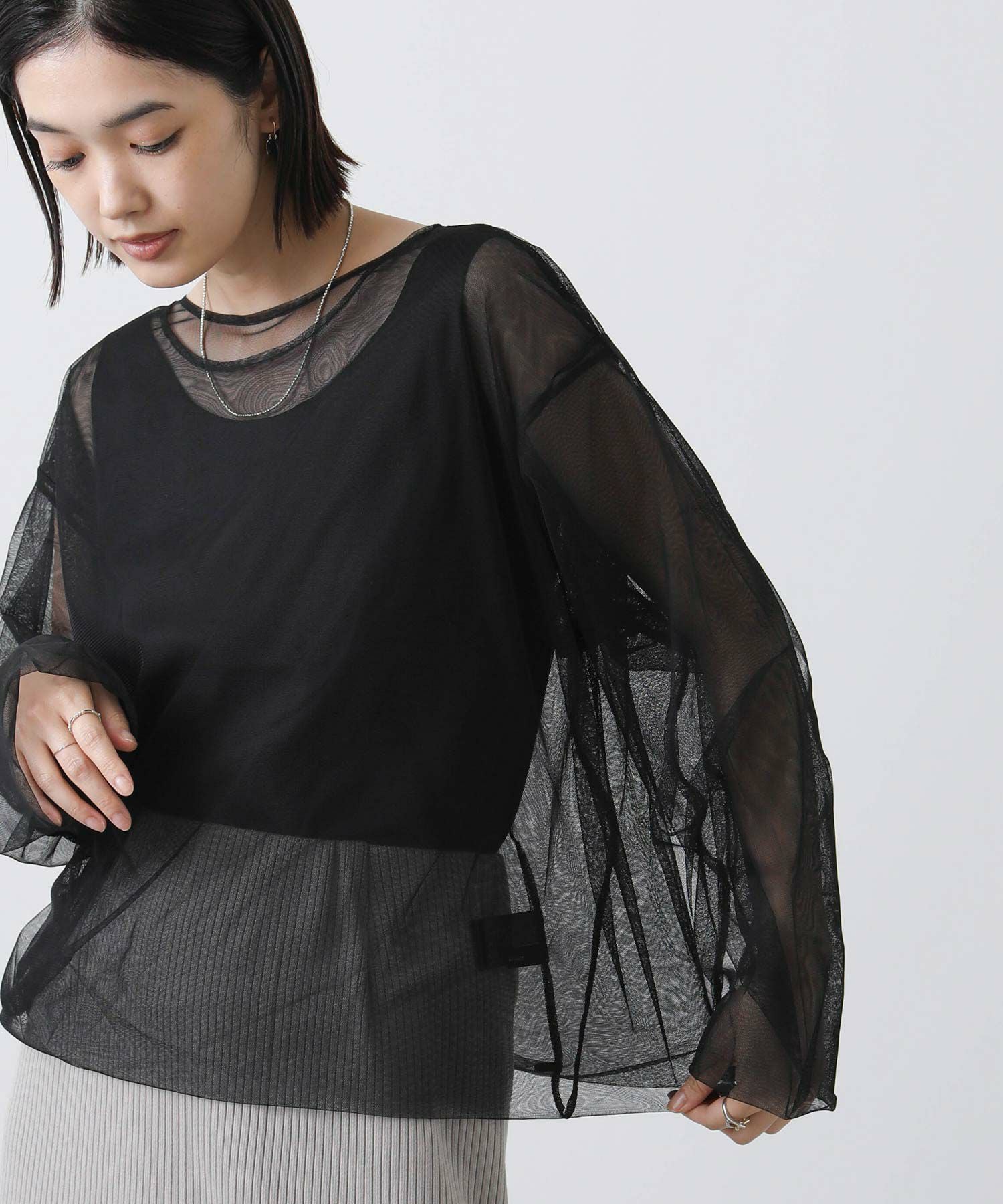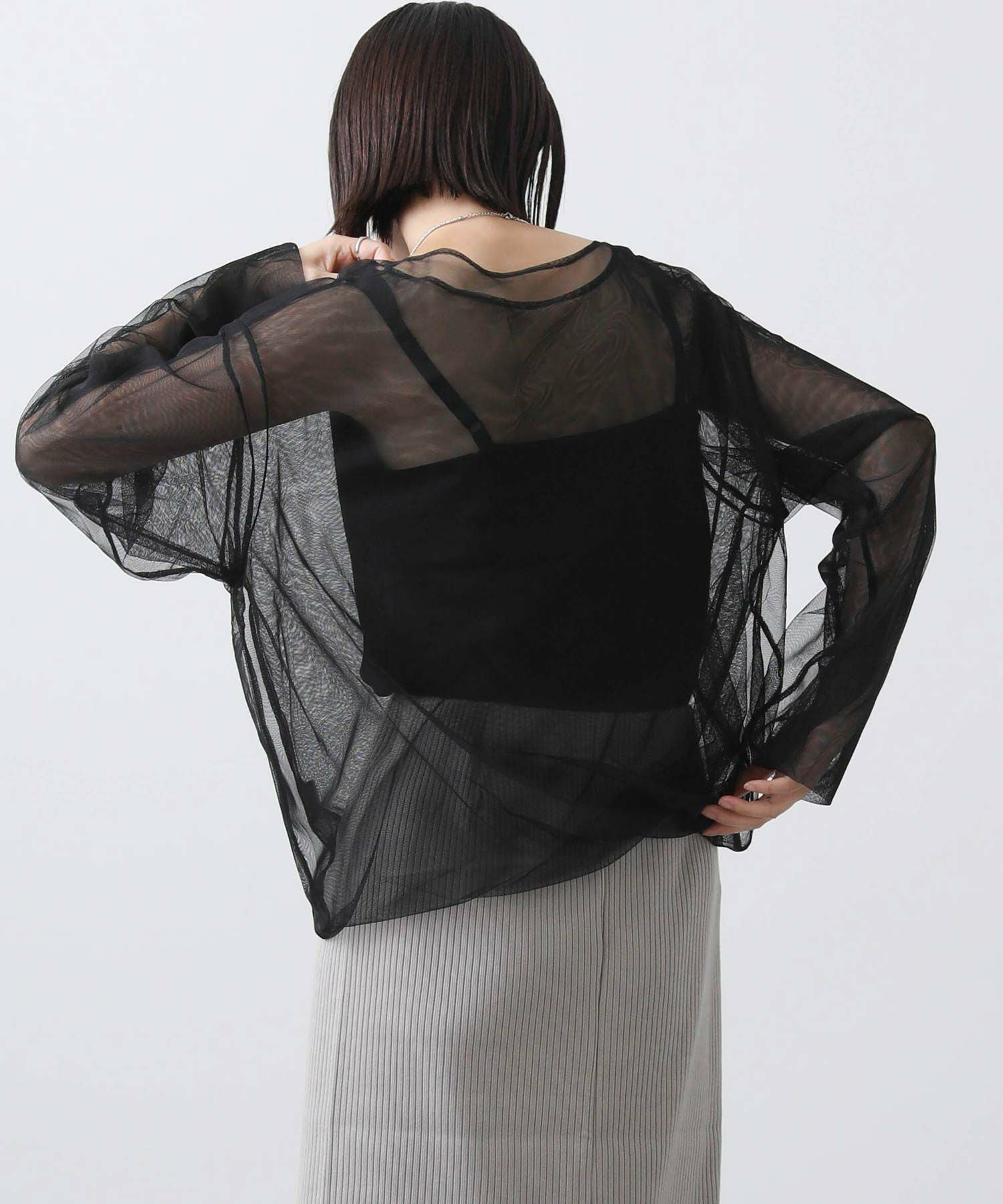 トレンドのチュールトップス。