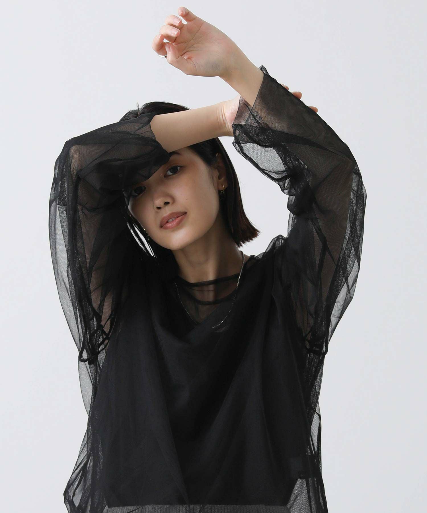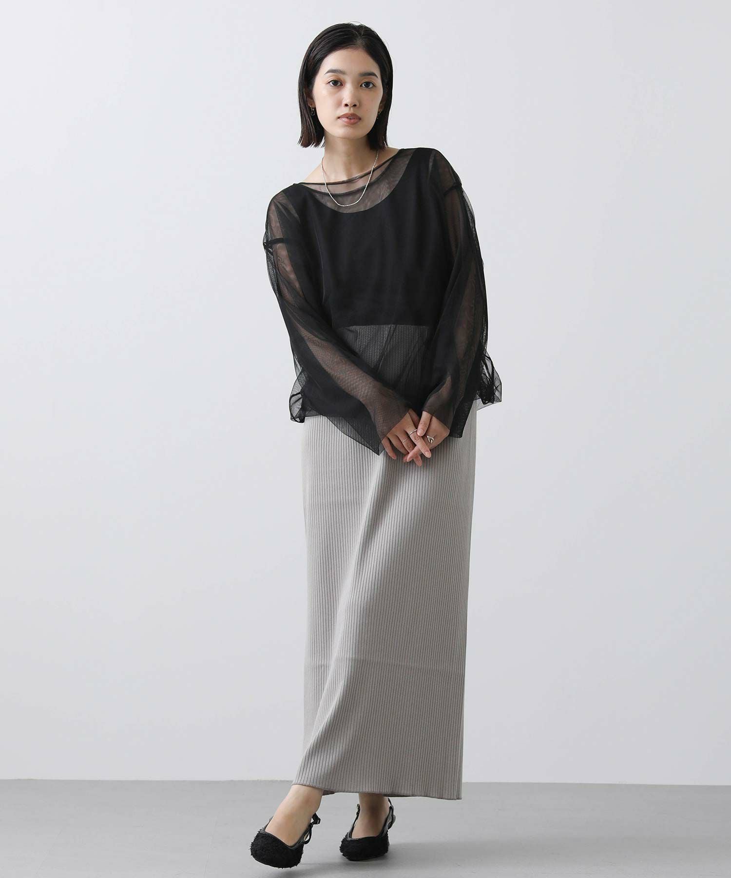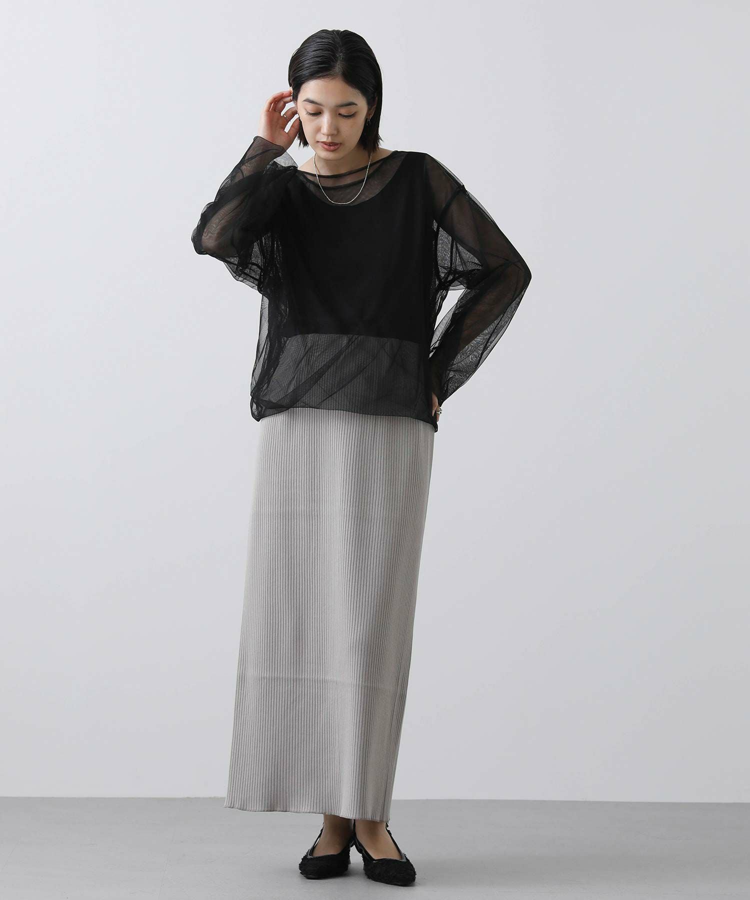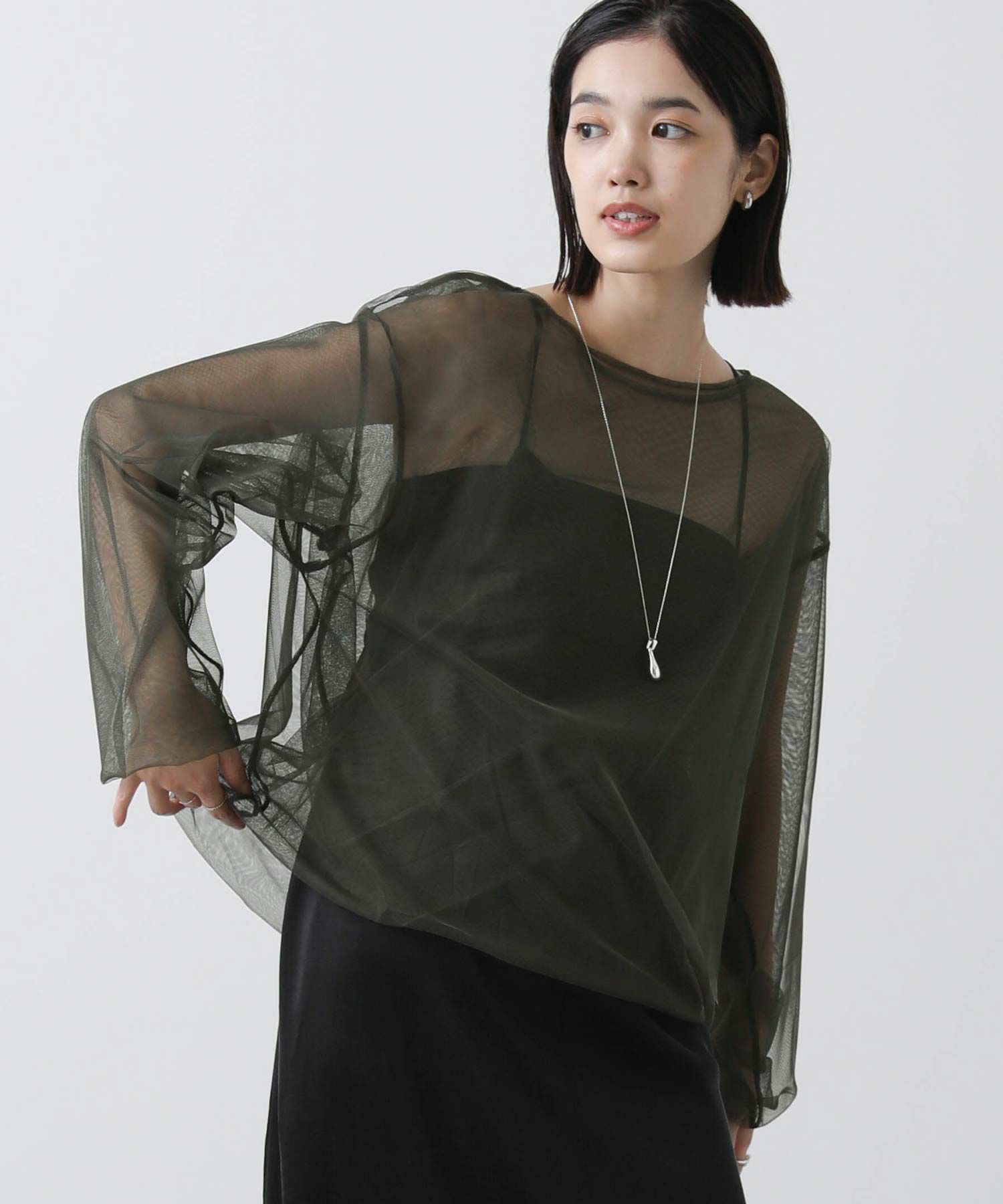 トレンドのチュールトップス。