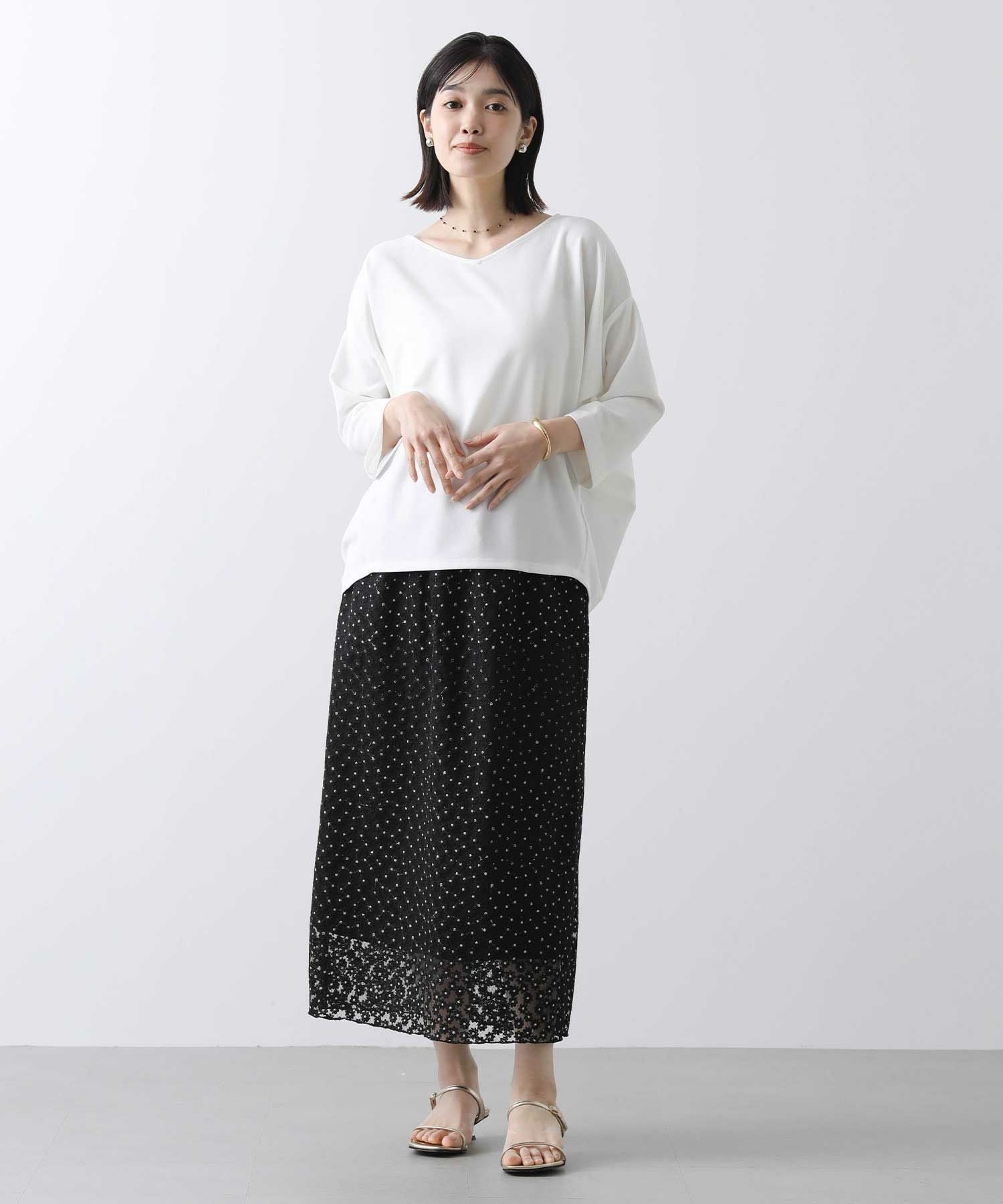 程良いストレッチと反発感が特徴のカットジョーゼットを使用。滑らかな着心地が魅力です。