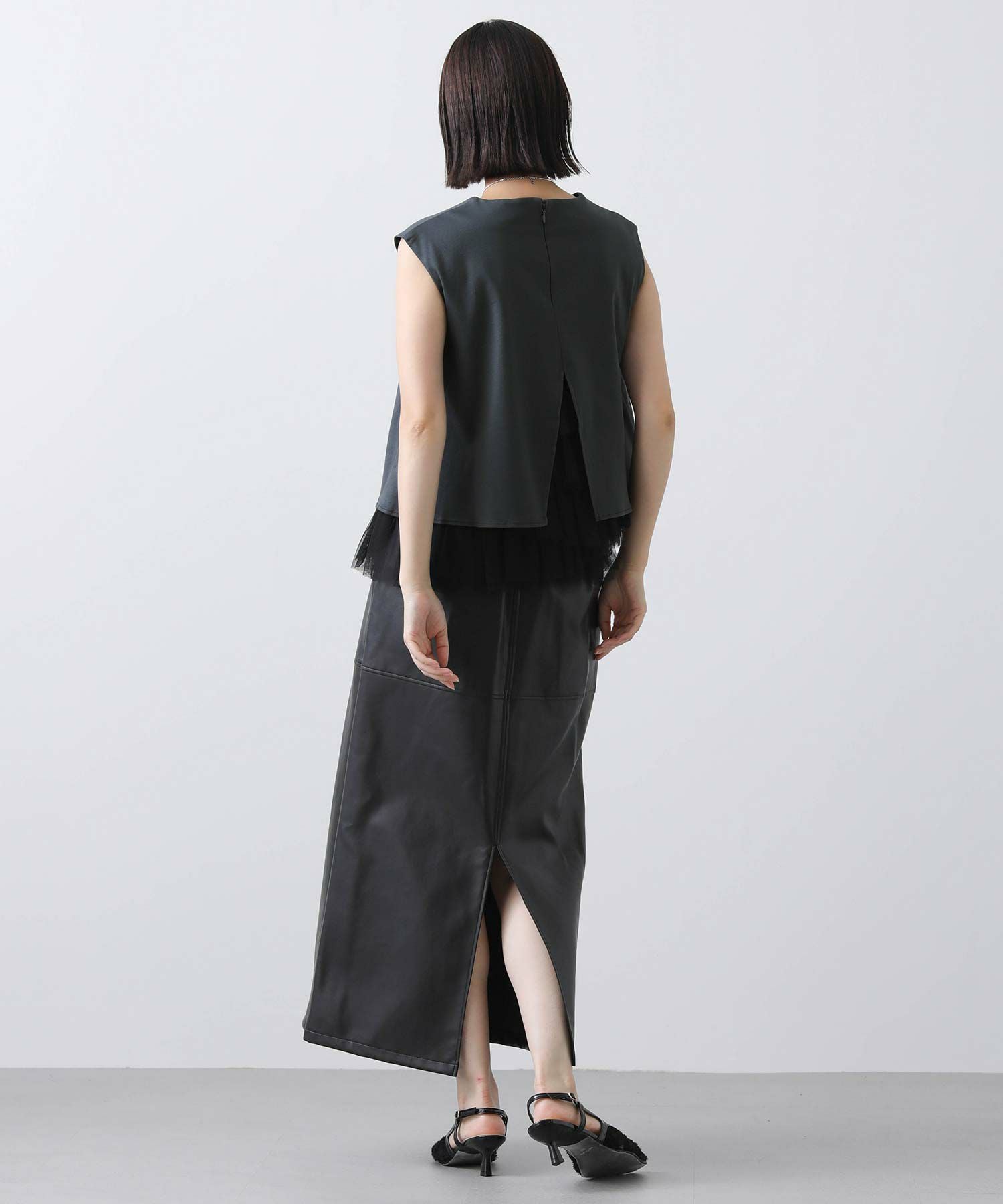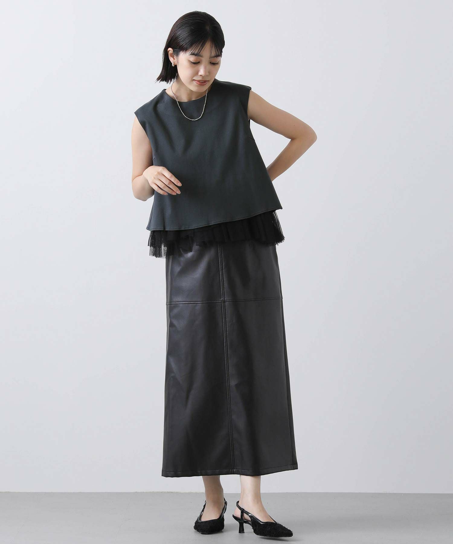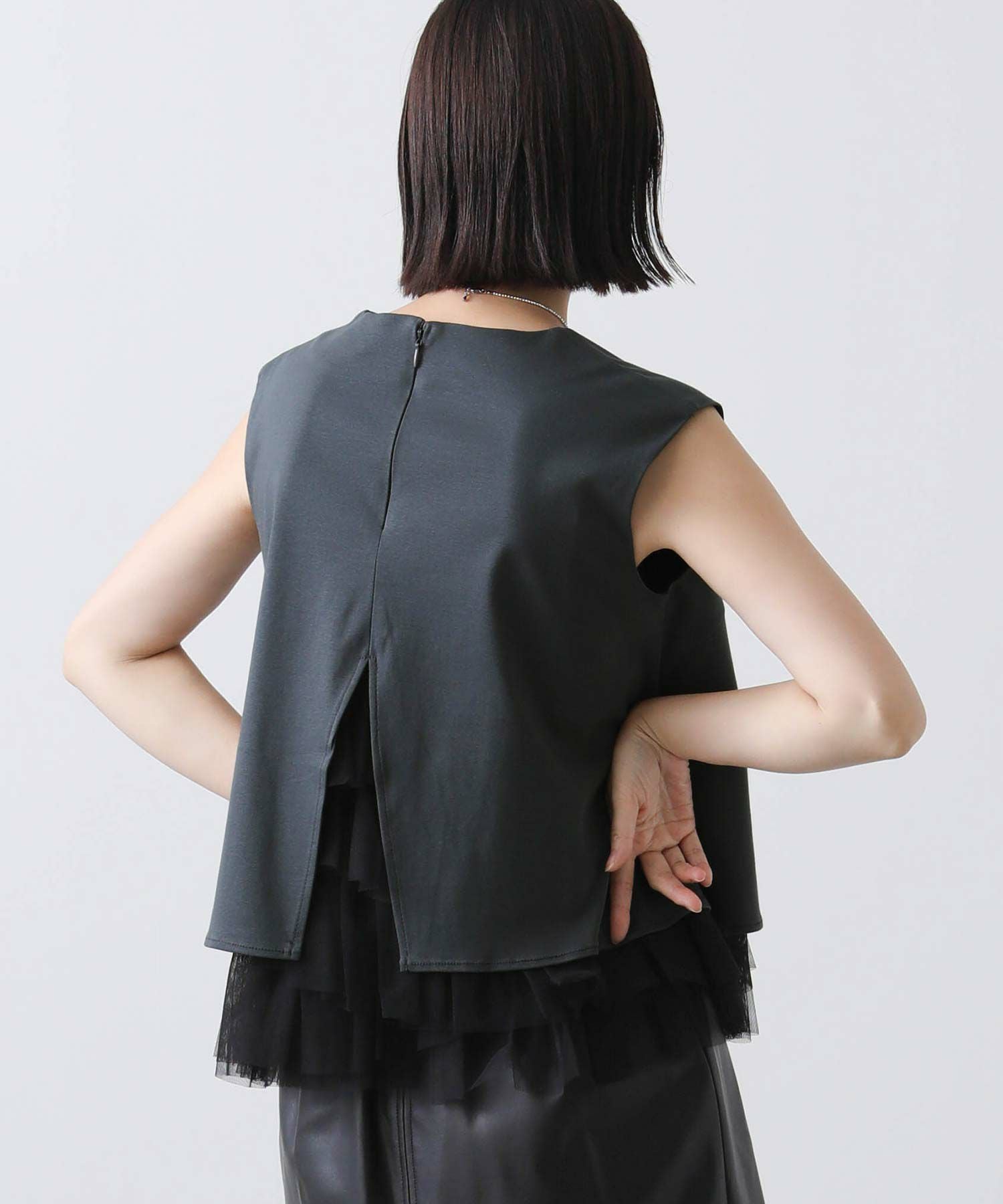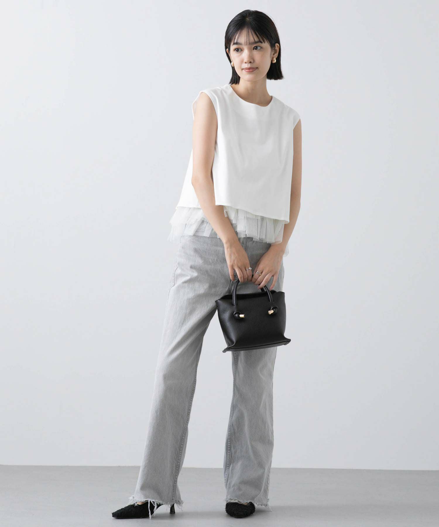 【anana/アナナ】から、きれい見えするTシャツ生地に裾からチュールレースがのぞくドッキングプルオーバーをセレクト。