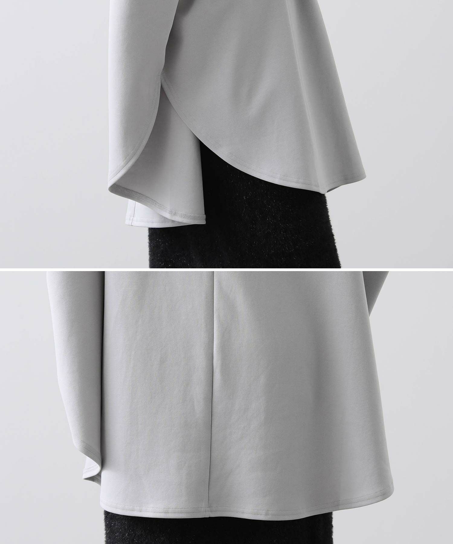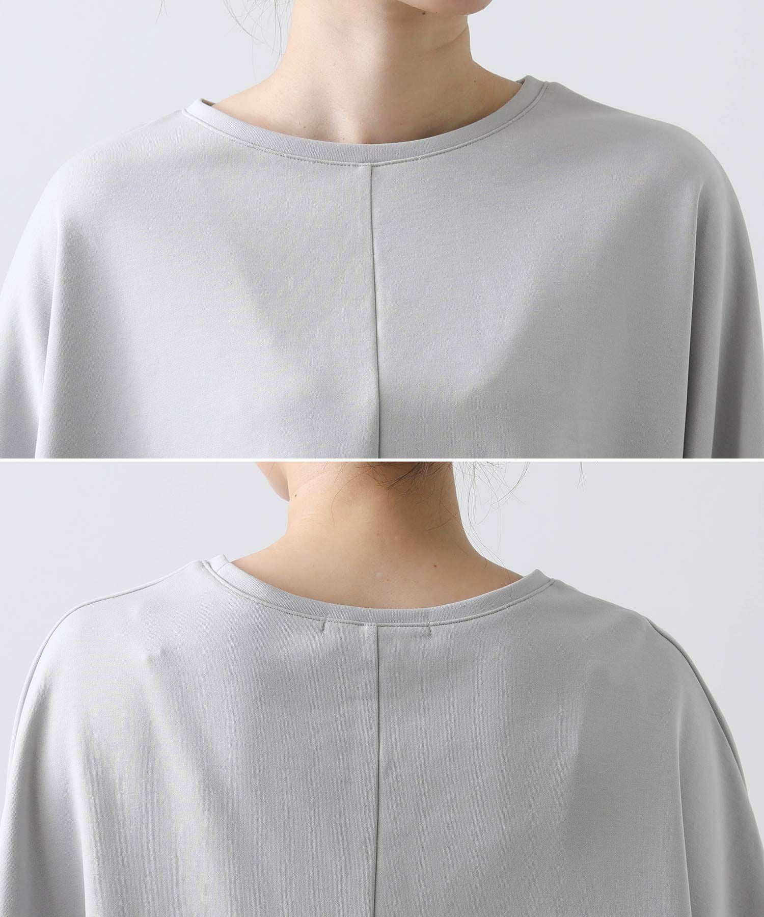腰回りをカバーする着丈で、ボディーラインを拾わないゆったりとした着心地に、袖は細く止まるようにデザインする事でメリハリのあるスタイルに。
