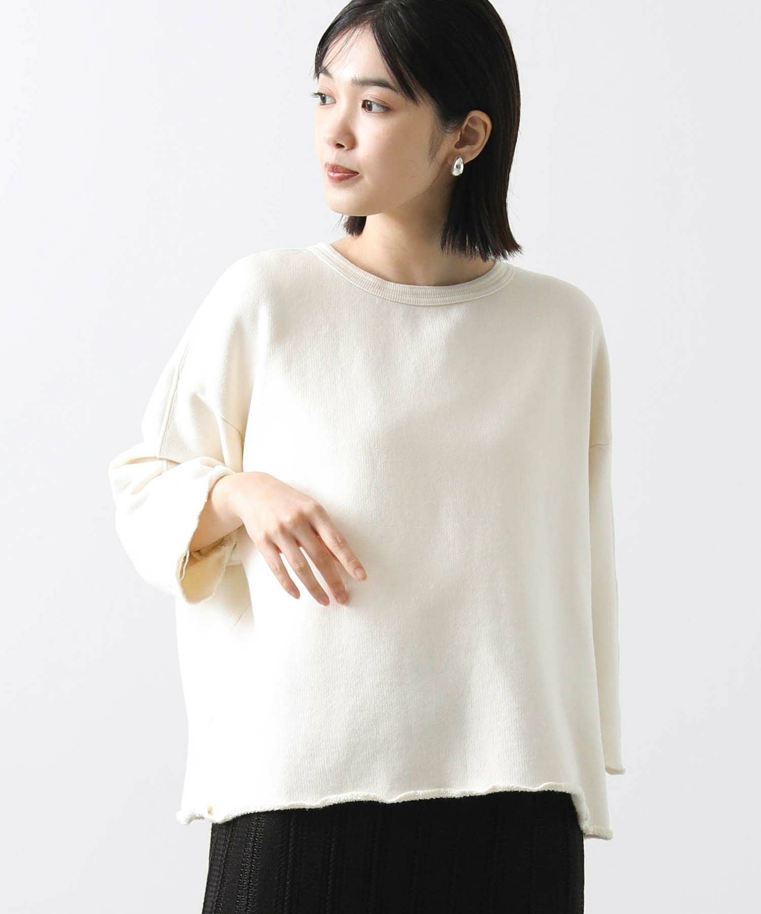 LyCo裏毛ボートネック7分袖カットソー