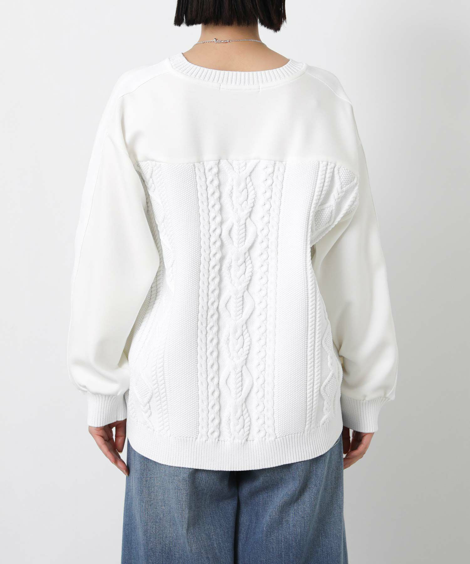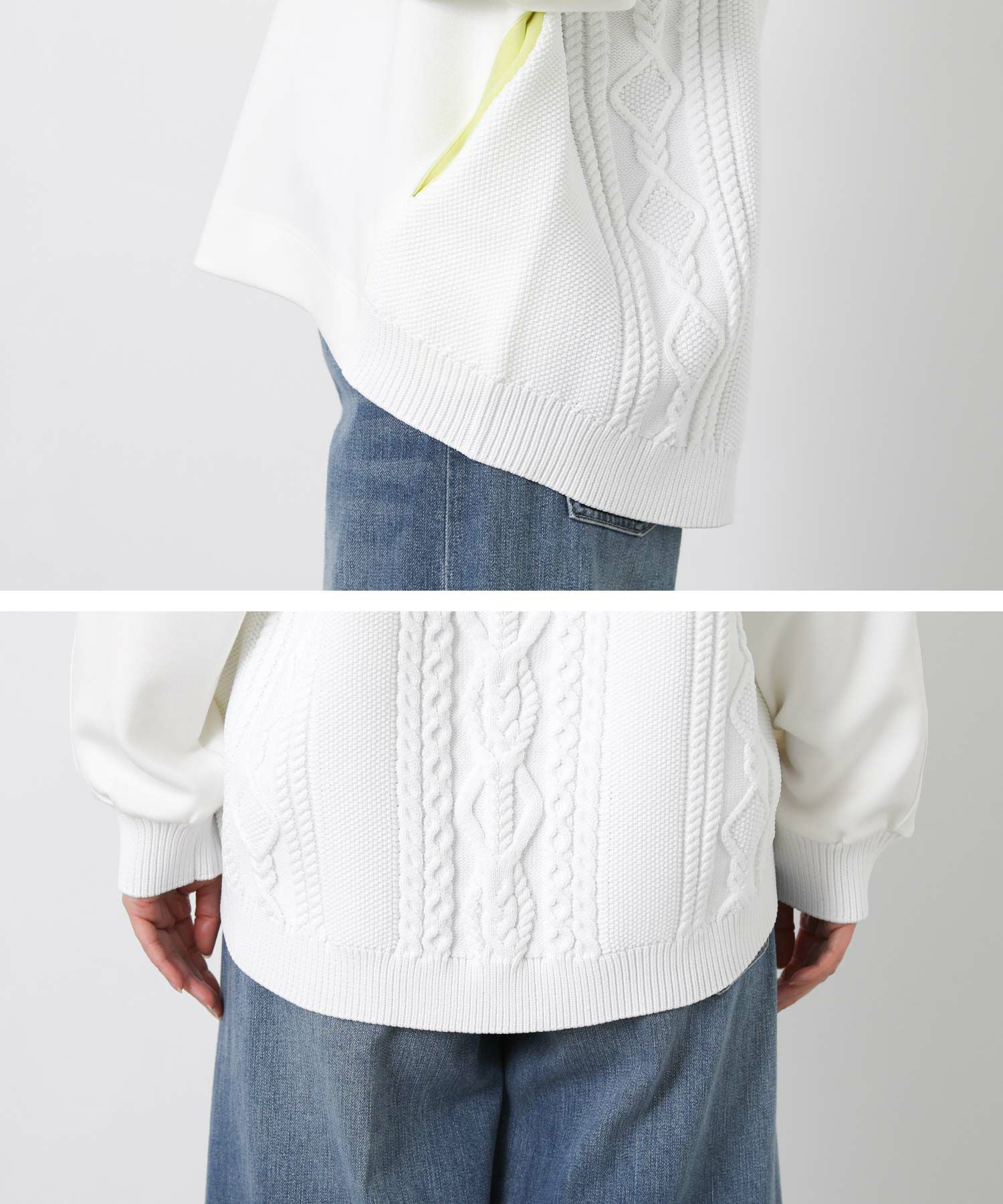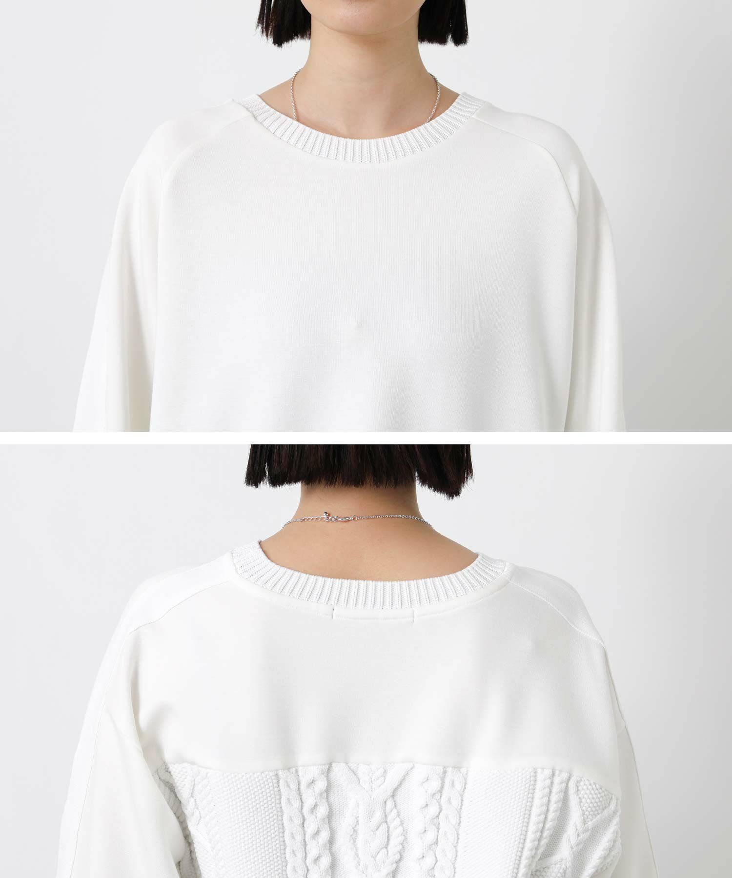 ケーブルニットとカットソーをドッキングしたプルオーバー。