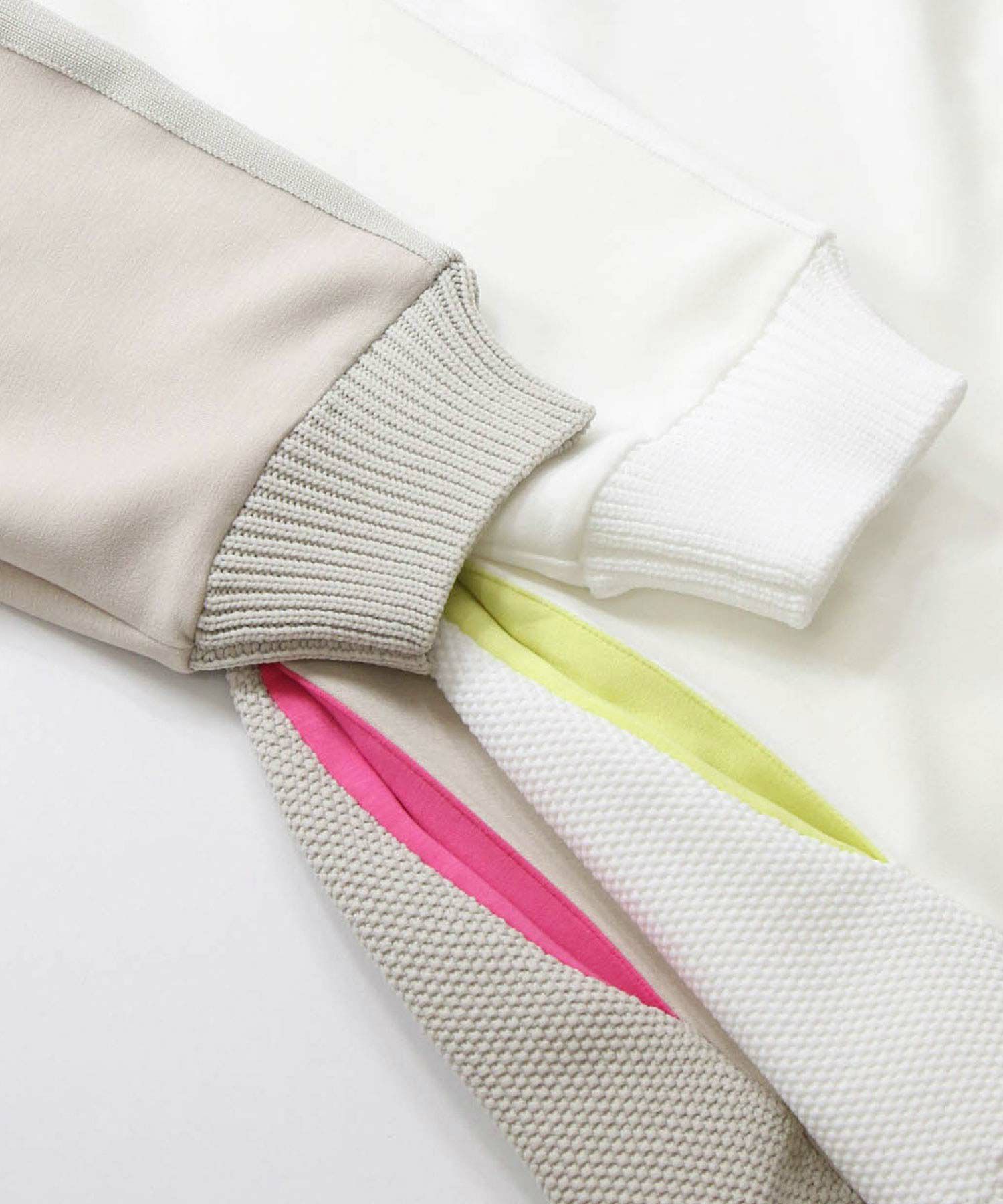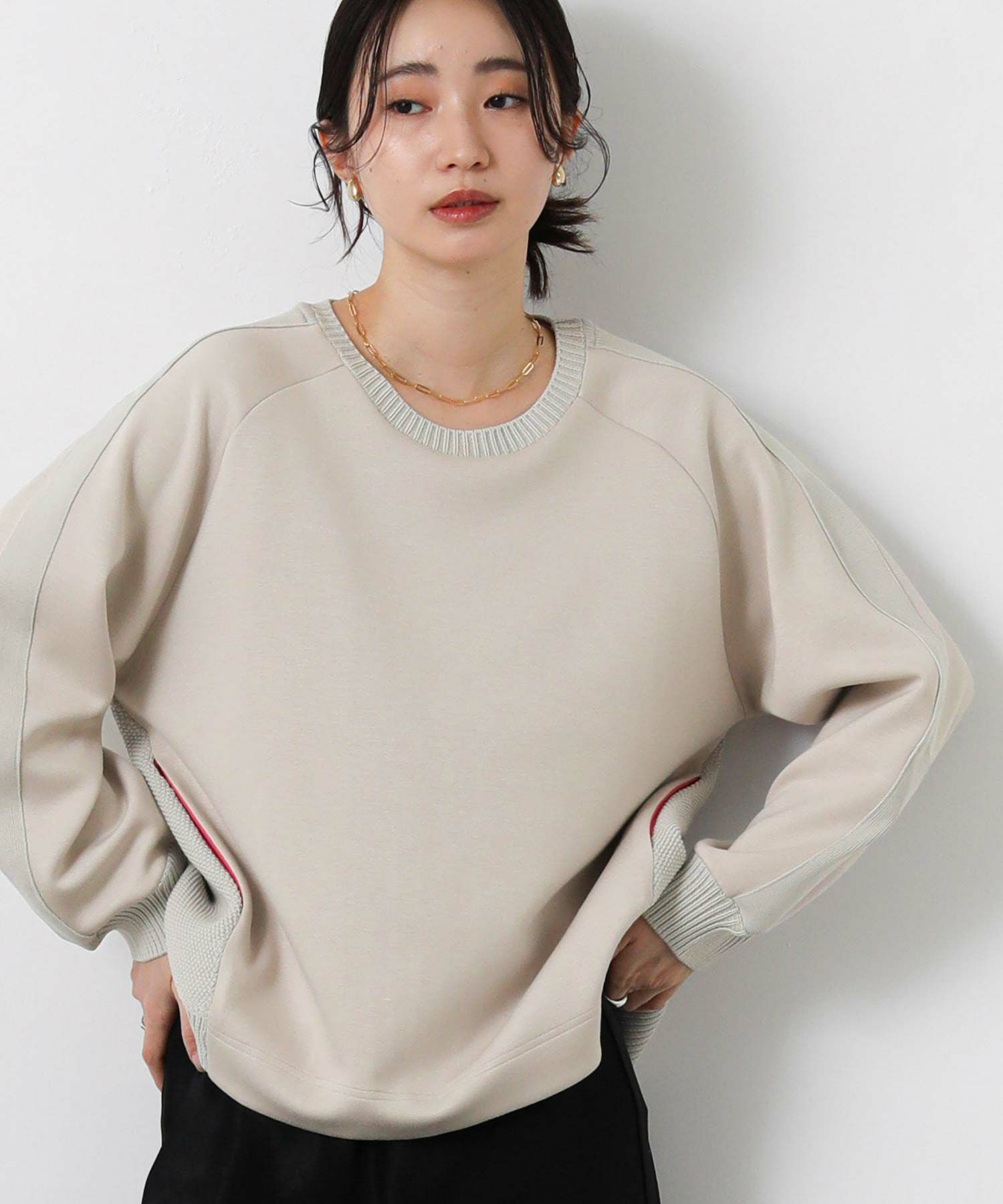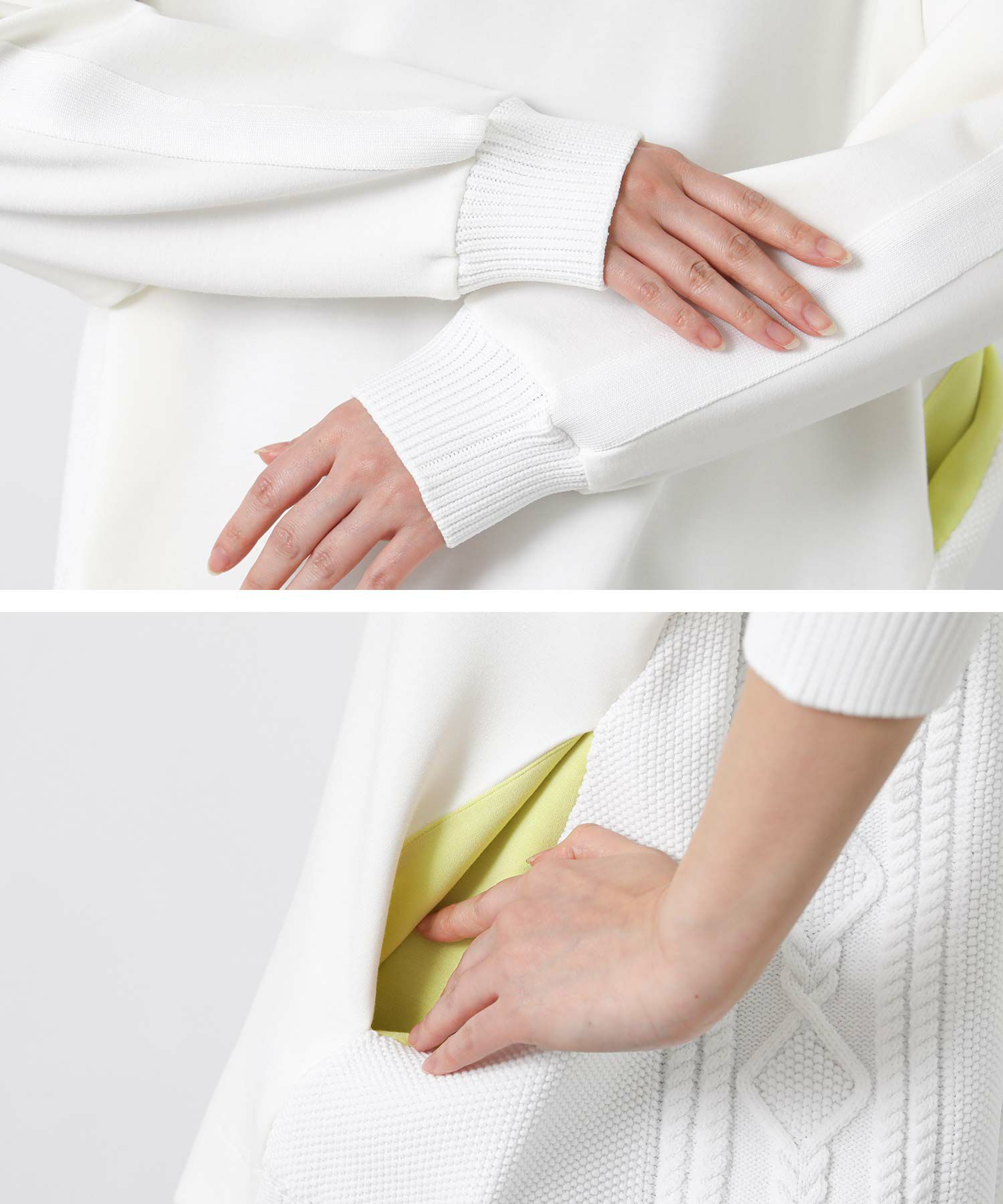 ケーブルニットとカットソーをドッキングしたプルオーバー。