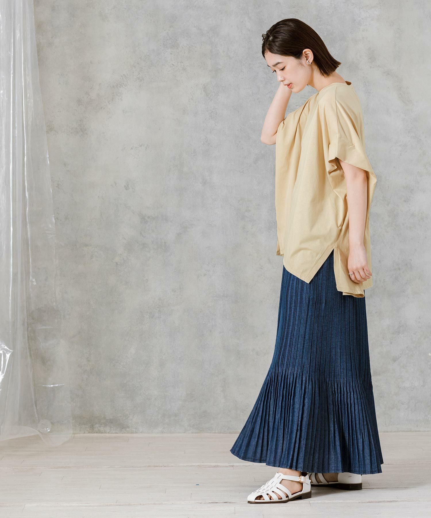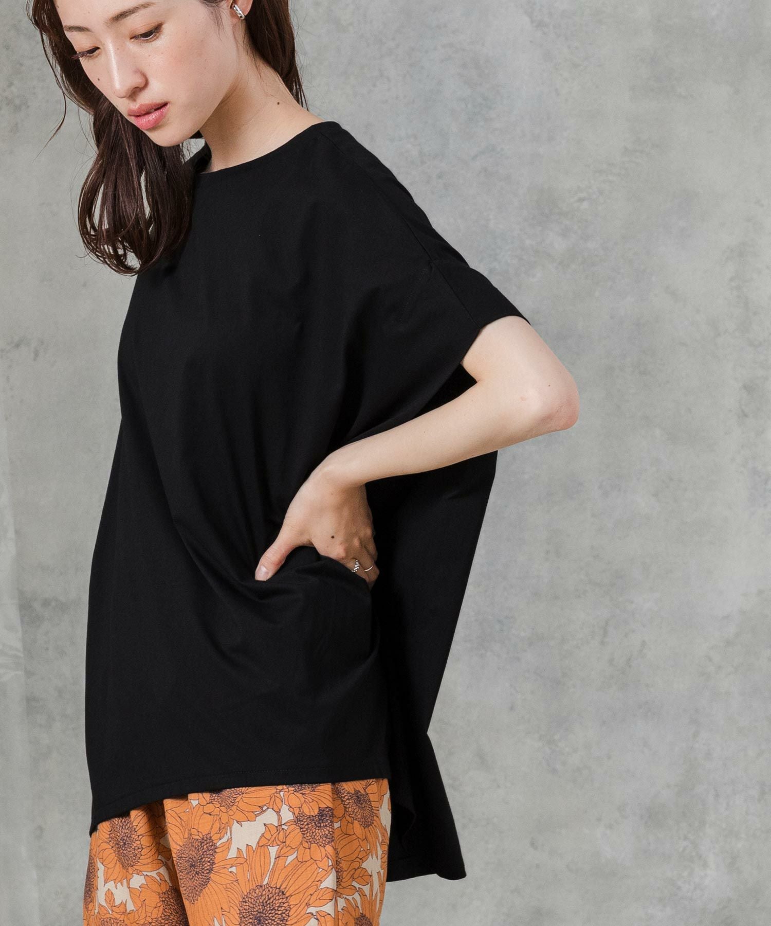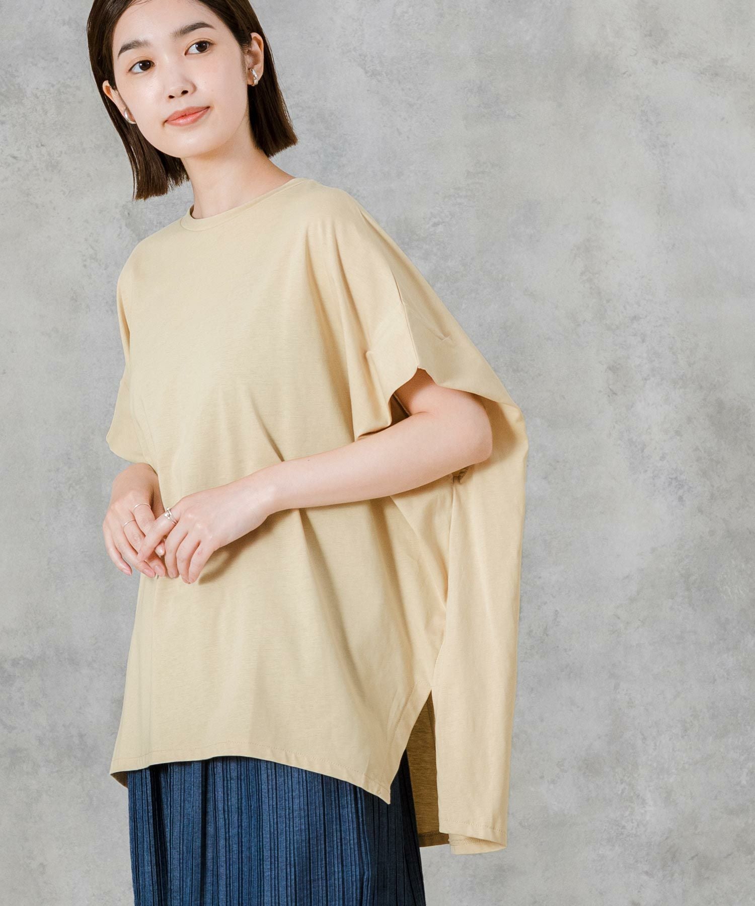 前後差のある裾デザインはスリットを入れることで落ち感が生まれ、すとんとスッキリ着られます。細身のアイテムからワイドシルエットまで、ボトムを選ばず合わせられます。