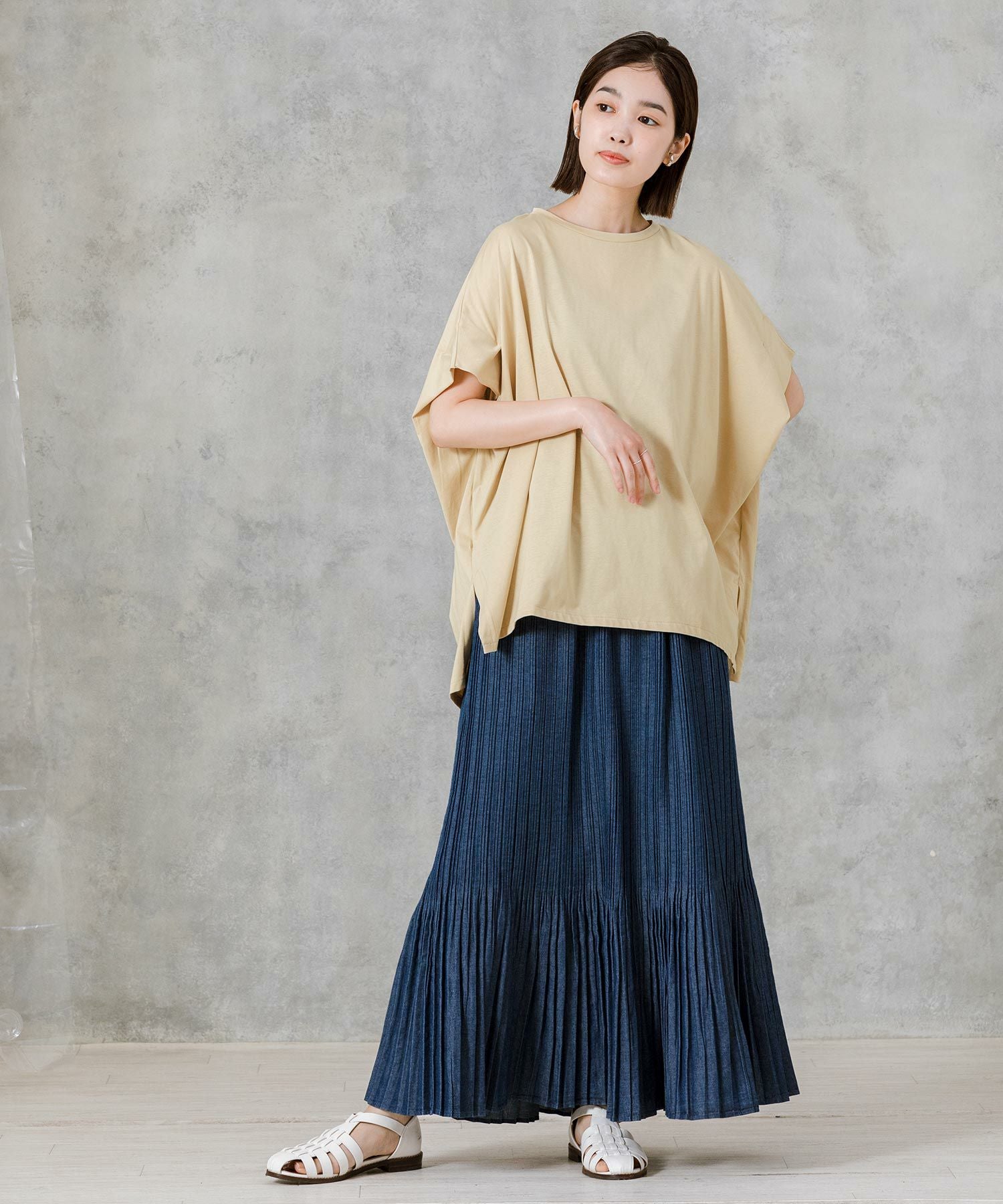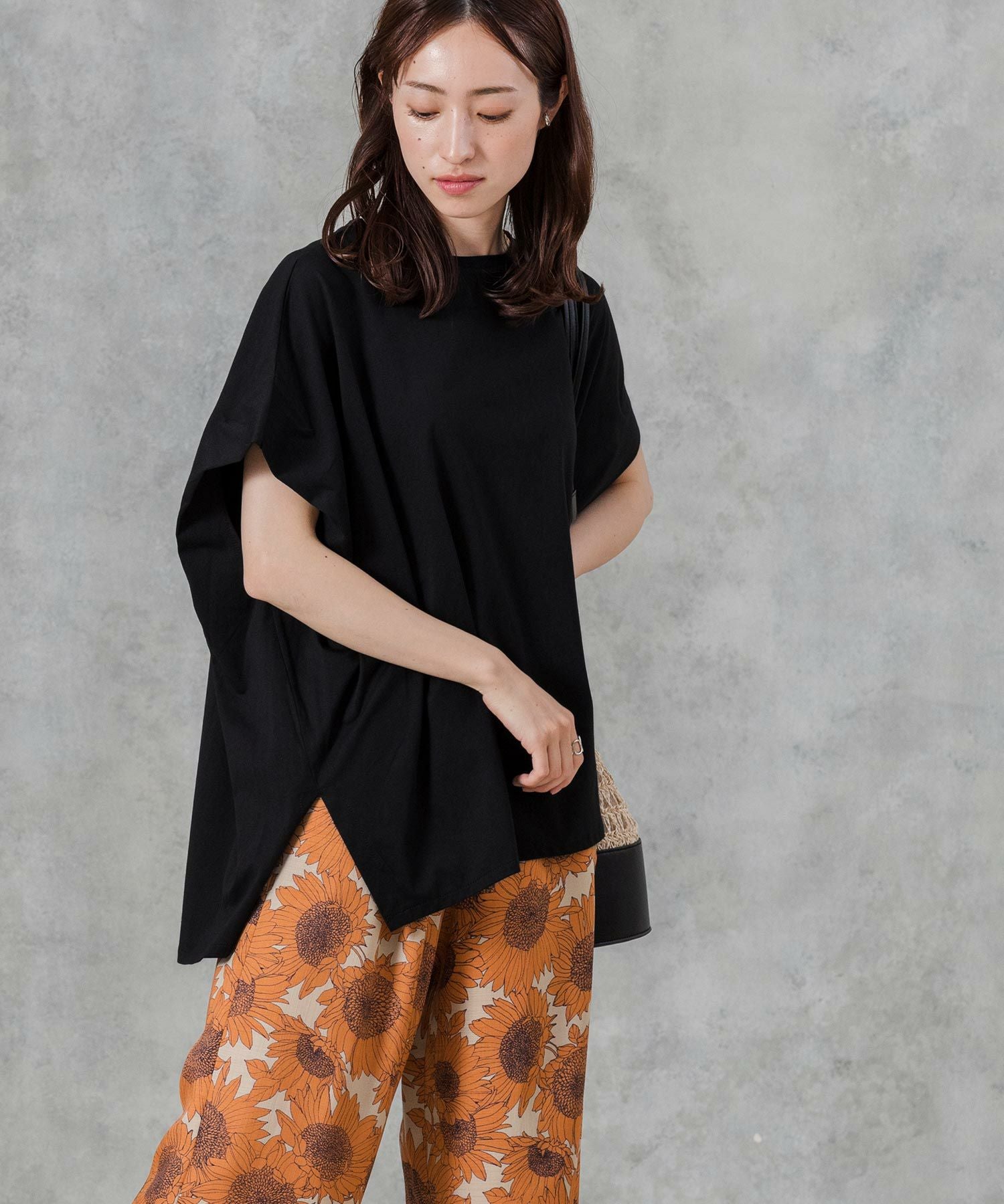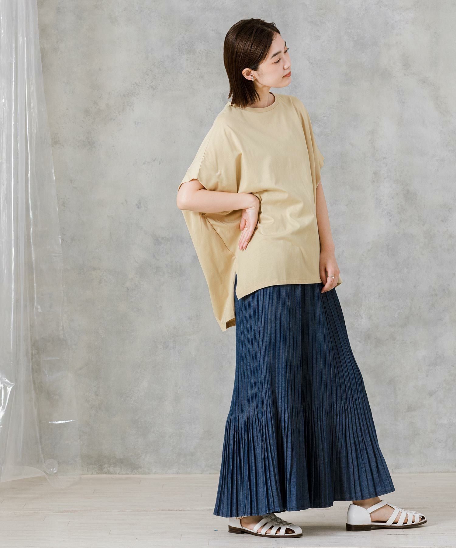 前後差のある裾デザインはスリットを入れることで落ち感が生まれ、すとんとスッキリ着られます。細身のアイテムからワイドシルエットまで、ボトムを選ばず合わせられます。