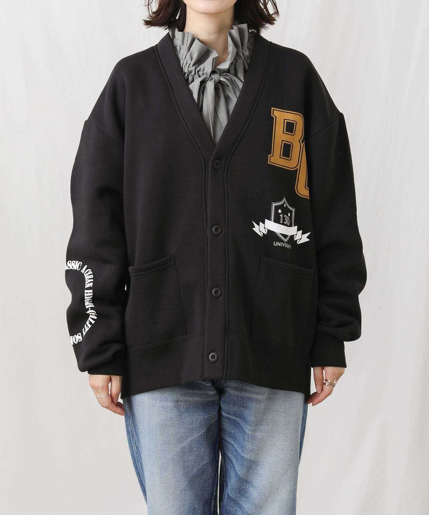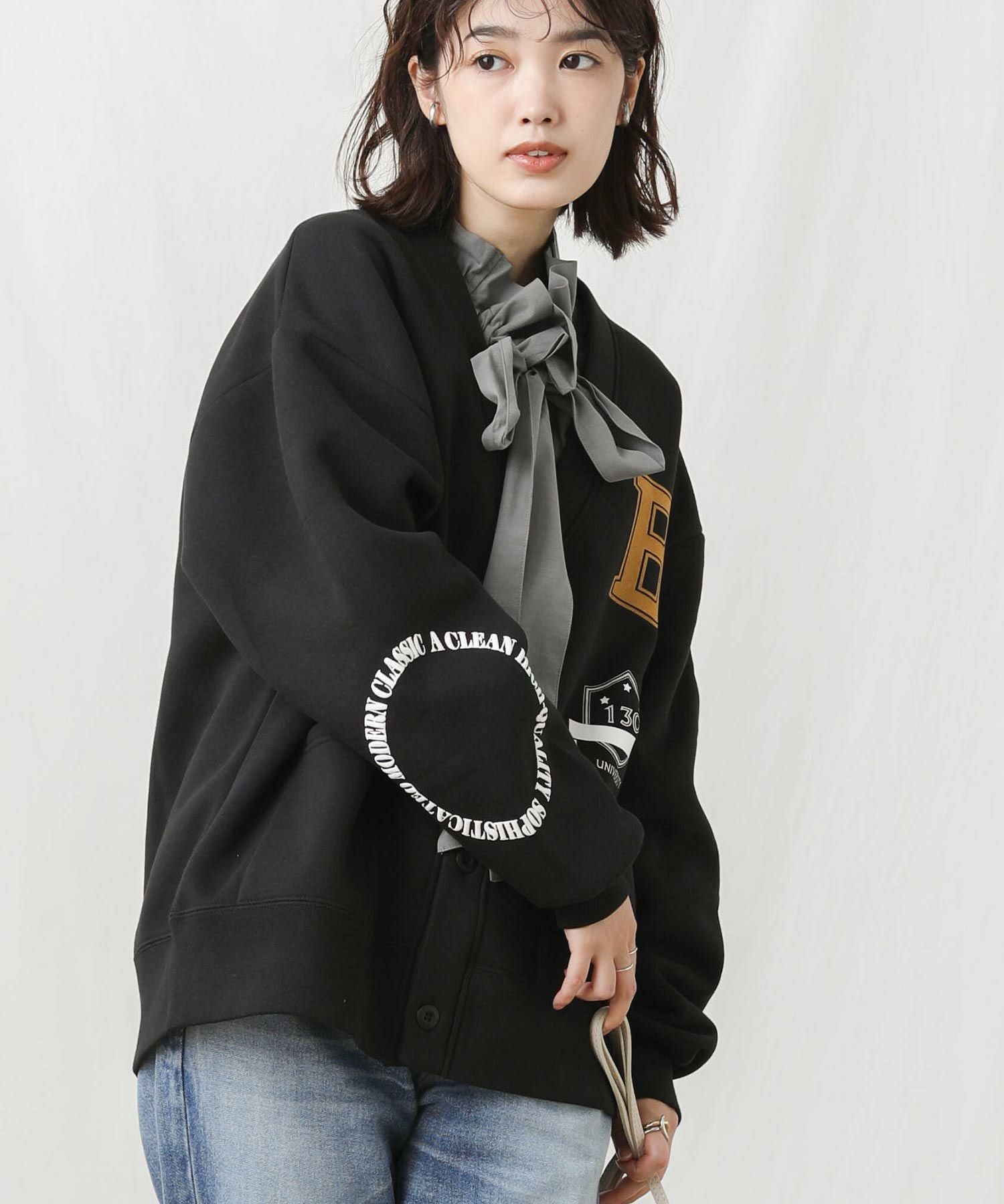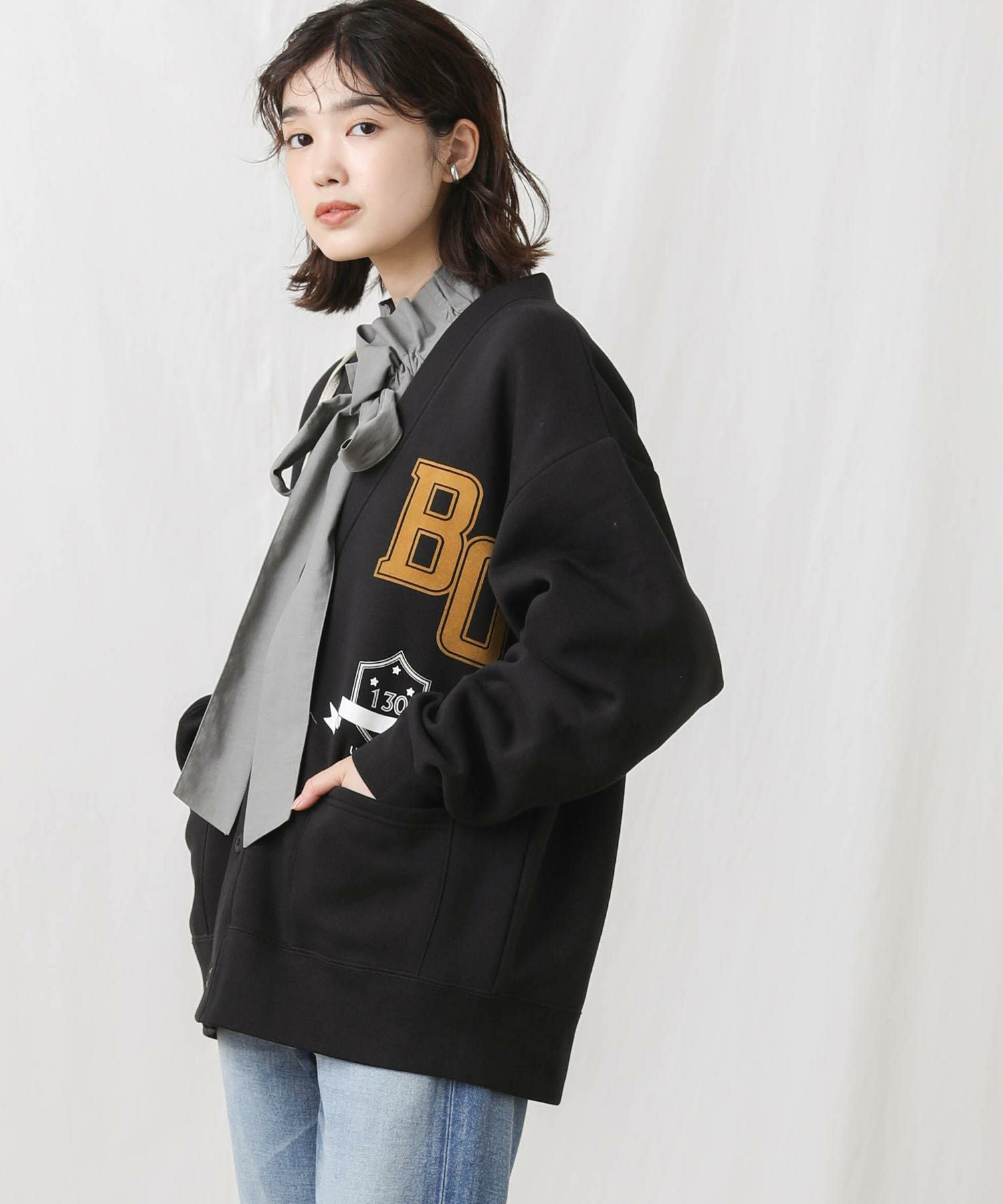 "【BoutiqueOrdinary(ブティークオーディナリー】から、リラックス感のあるサイジングのスウェットカーデに様々なグラフィックを配置したレタードデザインのカーデをセレクト。