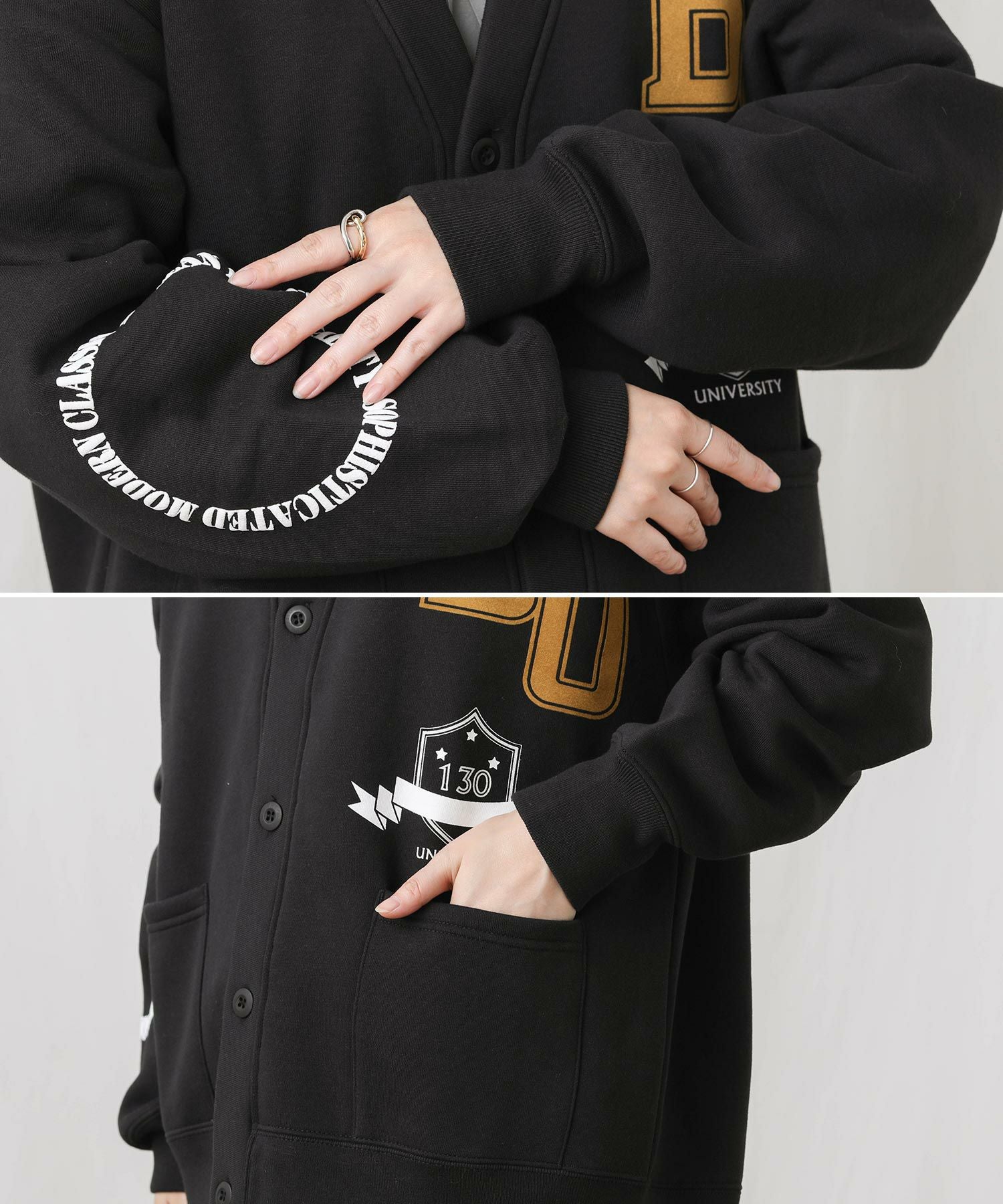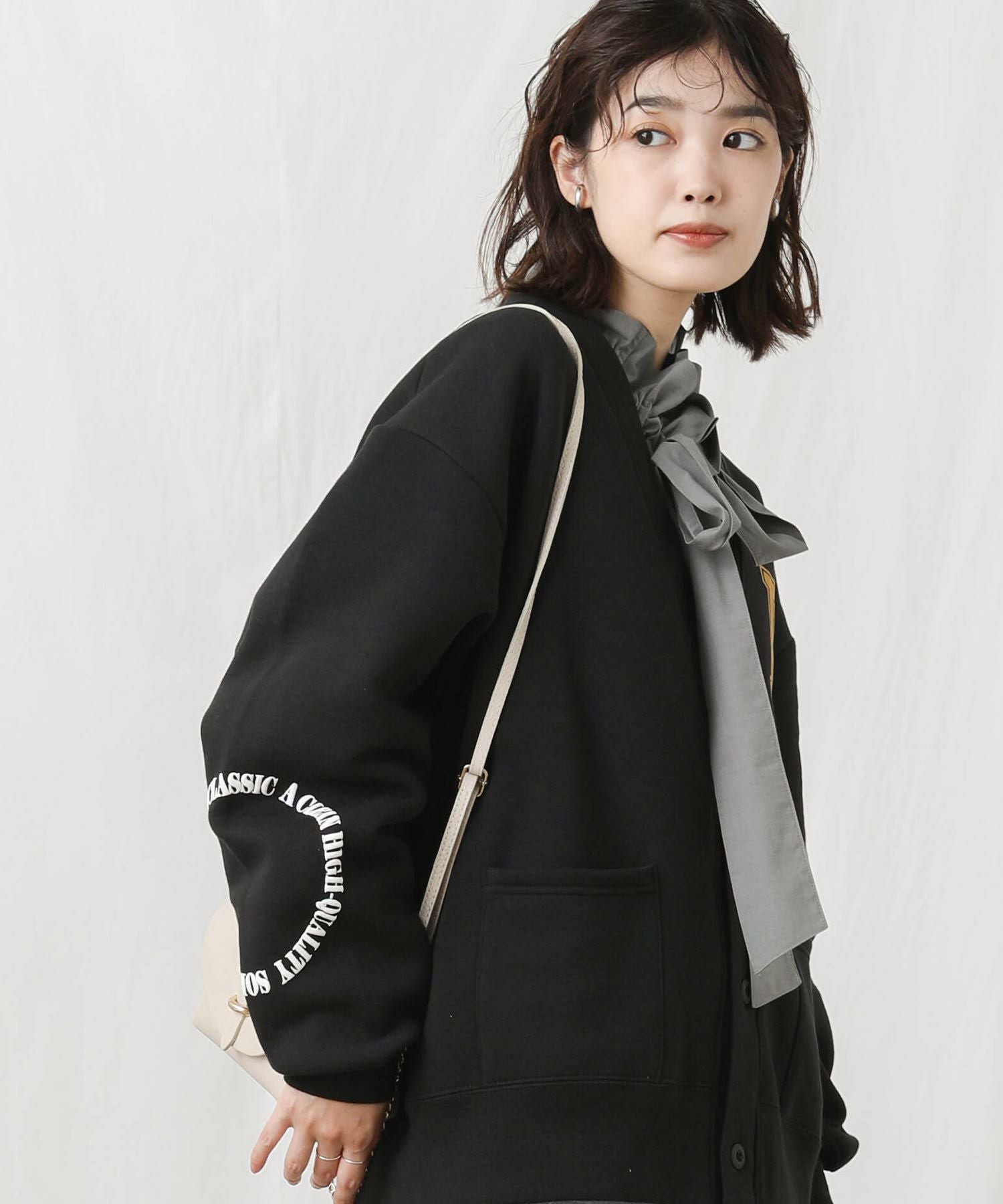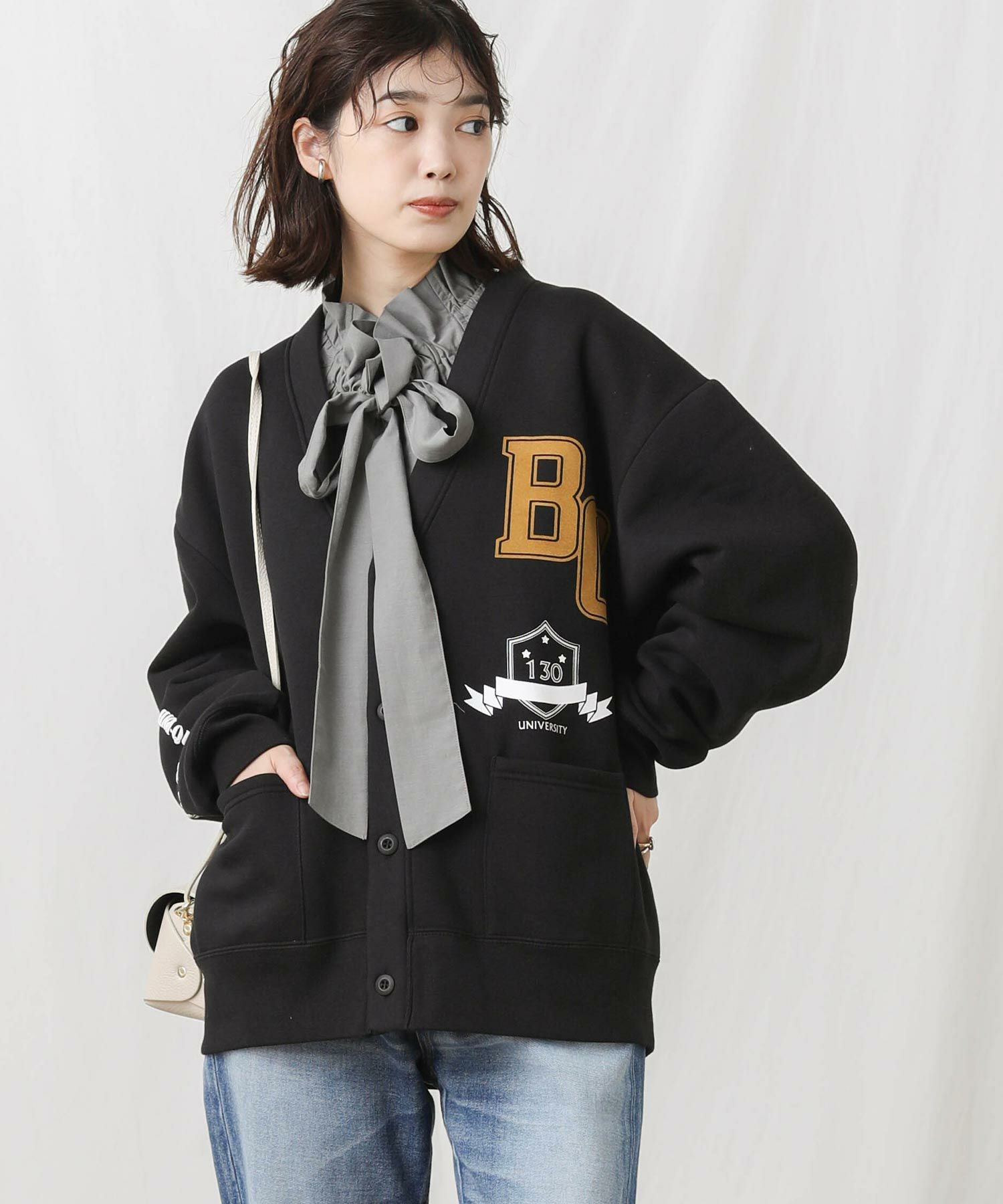 "【BoutiqueOrdinary(ブティークオーディナリー】から、リラックス感のあるサイジングのスウェットカーデに様々なグラフィックを配置したレタードデザインのカーデをセレクト。