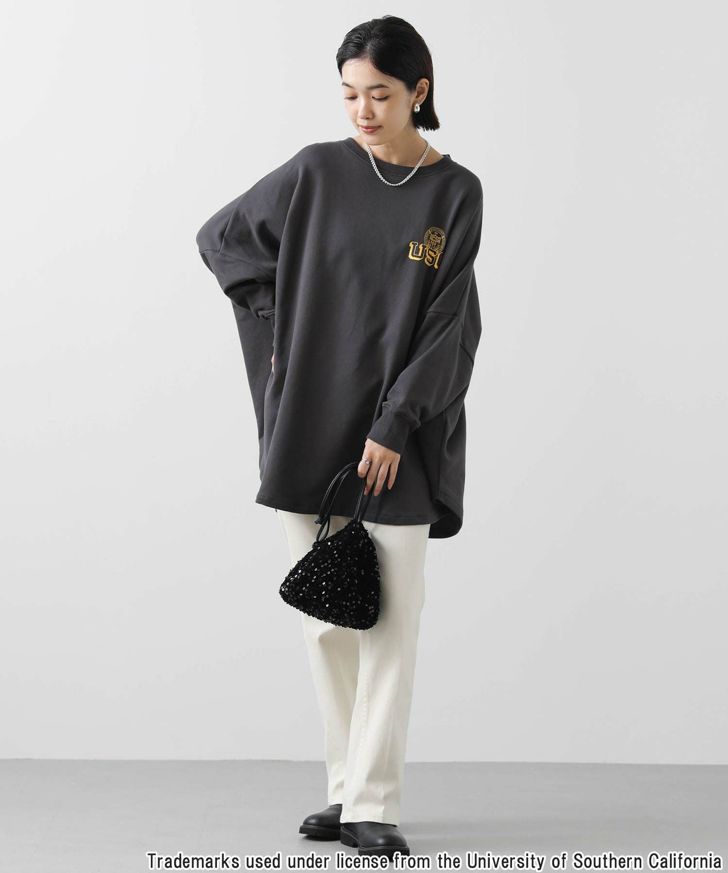 こなれ感のあるゆったりとしたシルエットを活かして、シンプルなスタイリングが