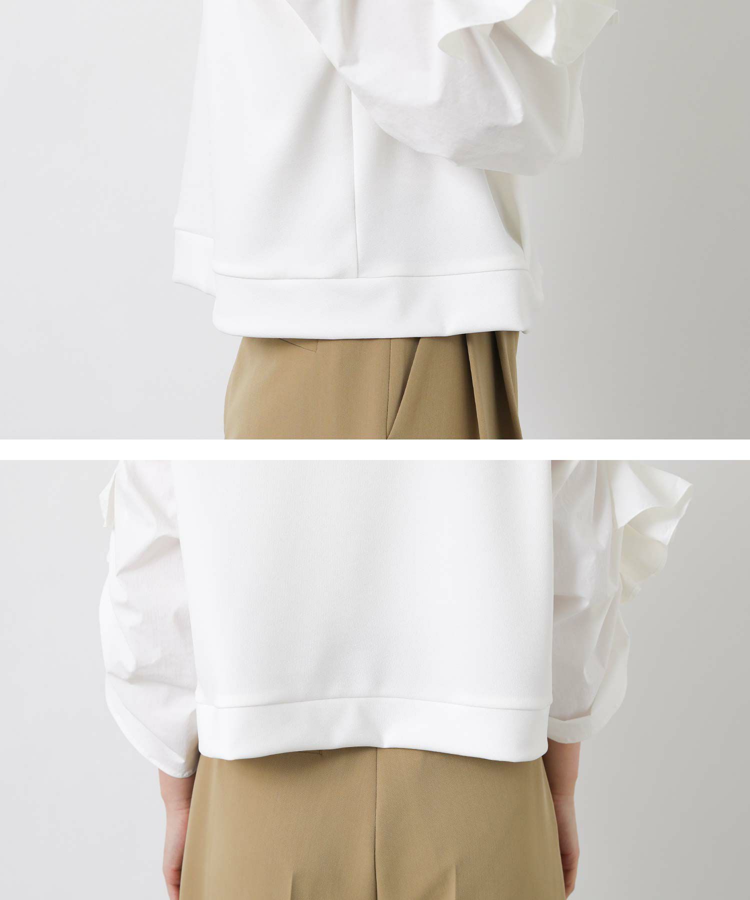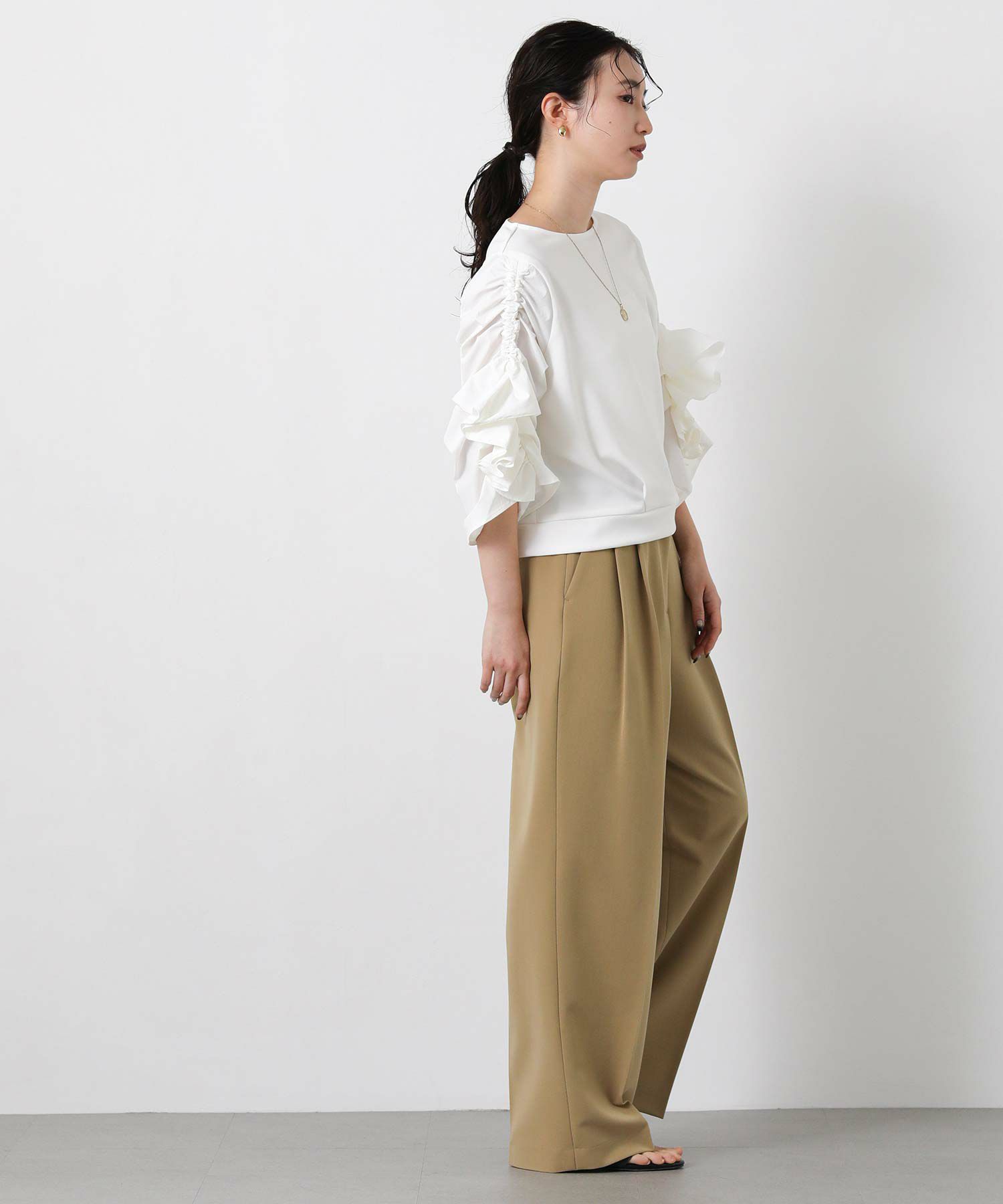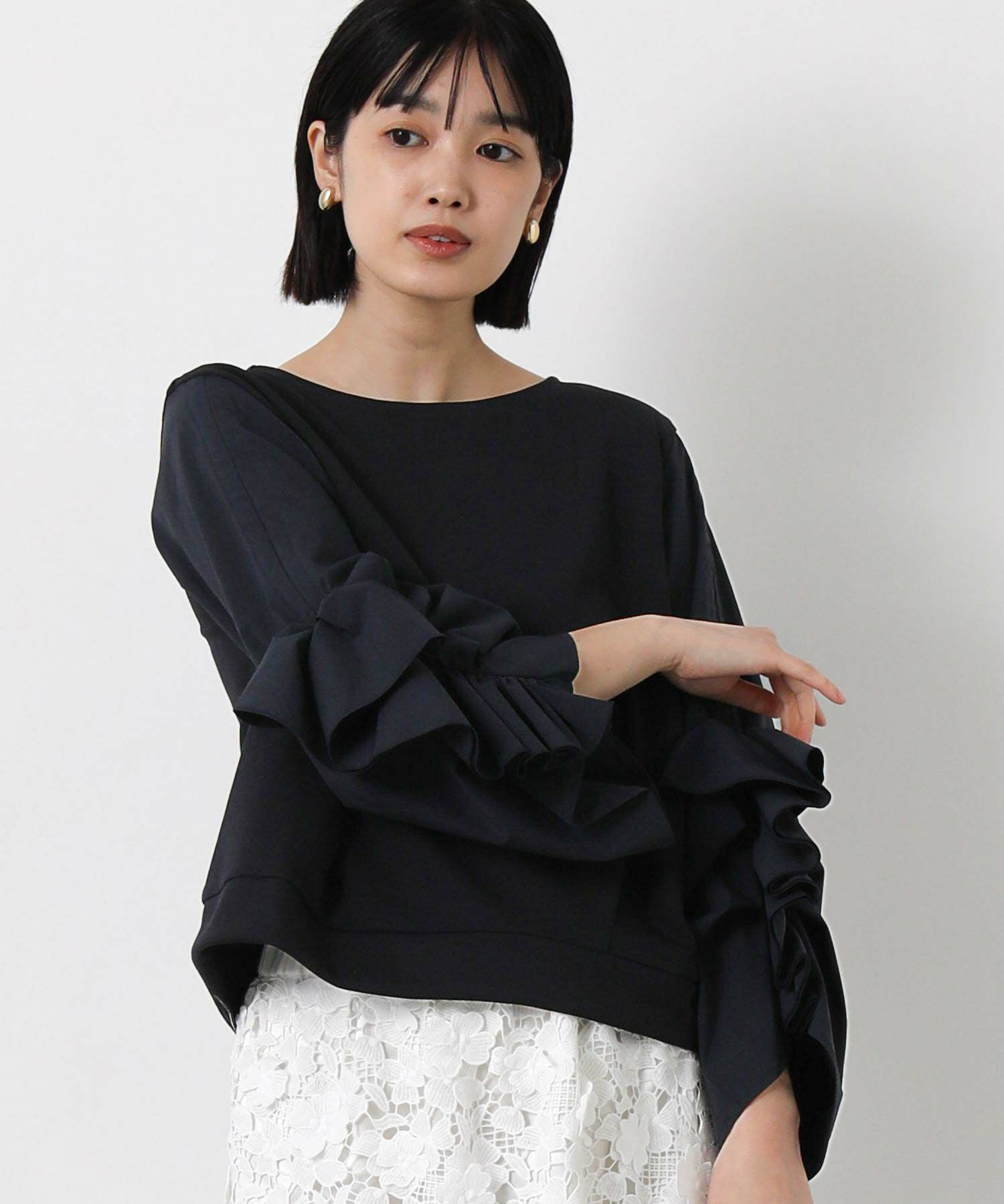 【MARECHALTERRE(マルシャルテル)】から、フェミニンなフリルギャザーが華やかに揺れるボリューム袖が特徴のプルオーバーをセレクト。