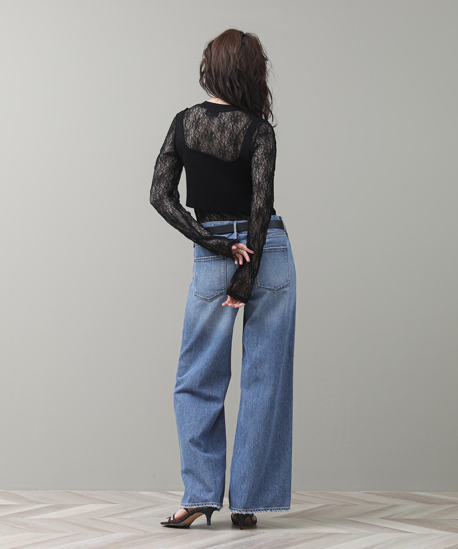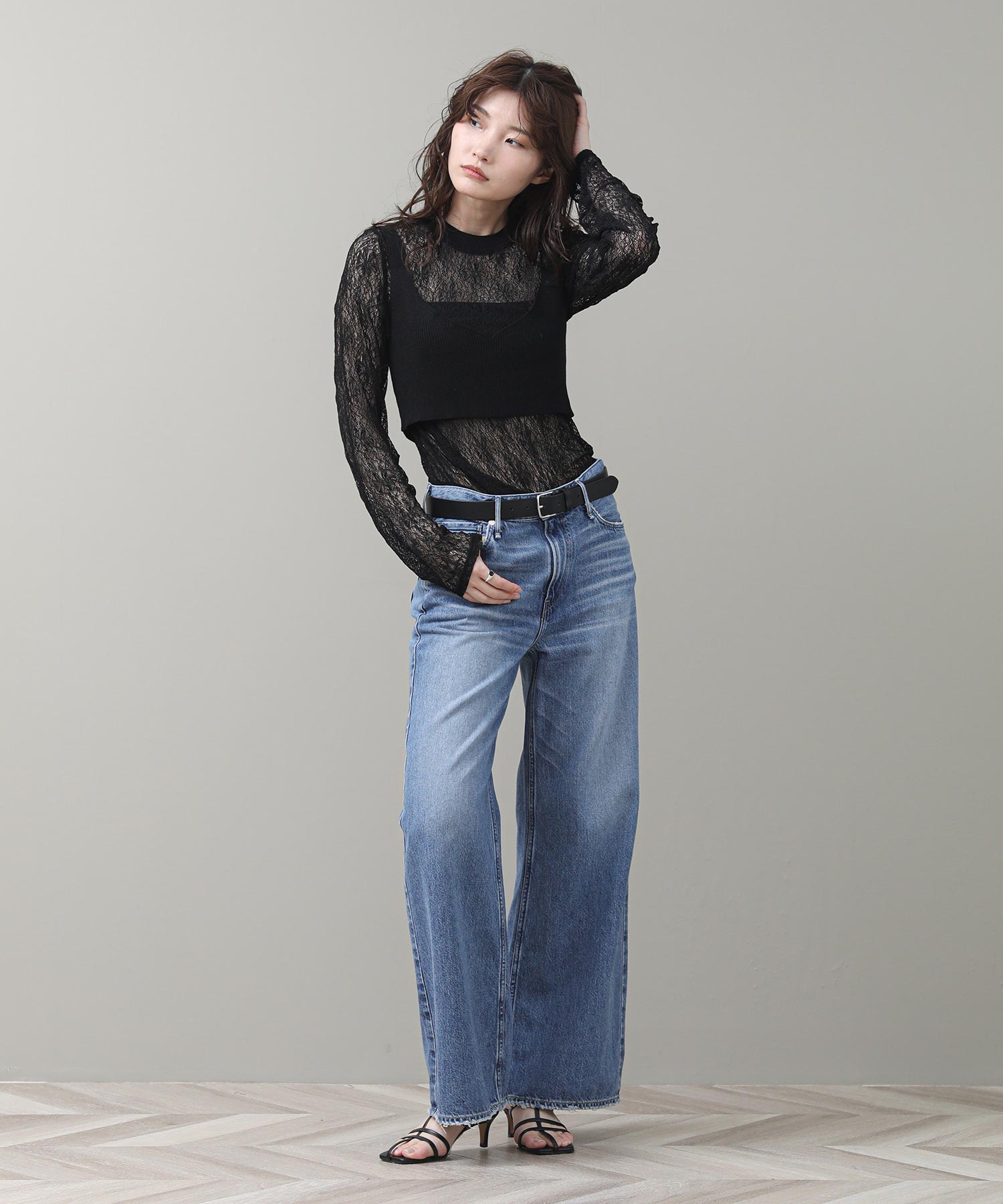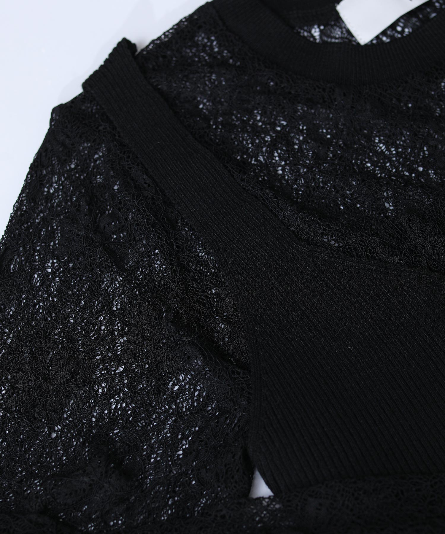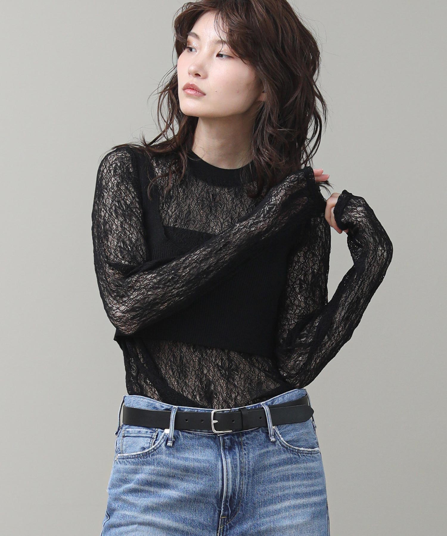 重ねて着用することで、ニットの隙間から覗くレースが奥行きのある立体感とセンシュアルな透け感を演出します。それぞれ単体でも使いやすく、その日の気分やシーンに合わせて幅広い表情を楽しめる、汎用性に優れた一着です。
