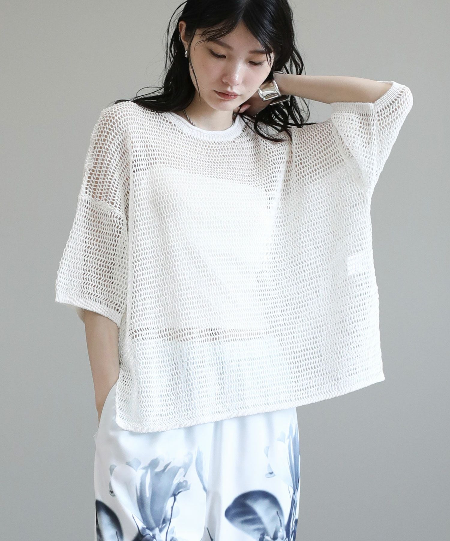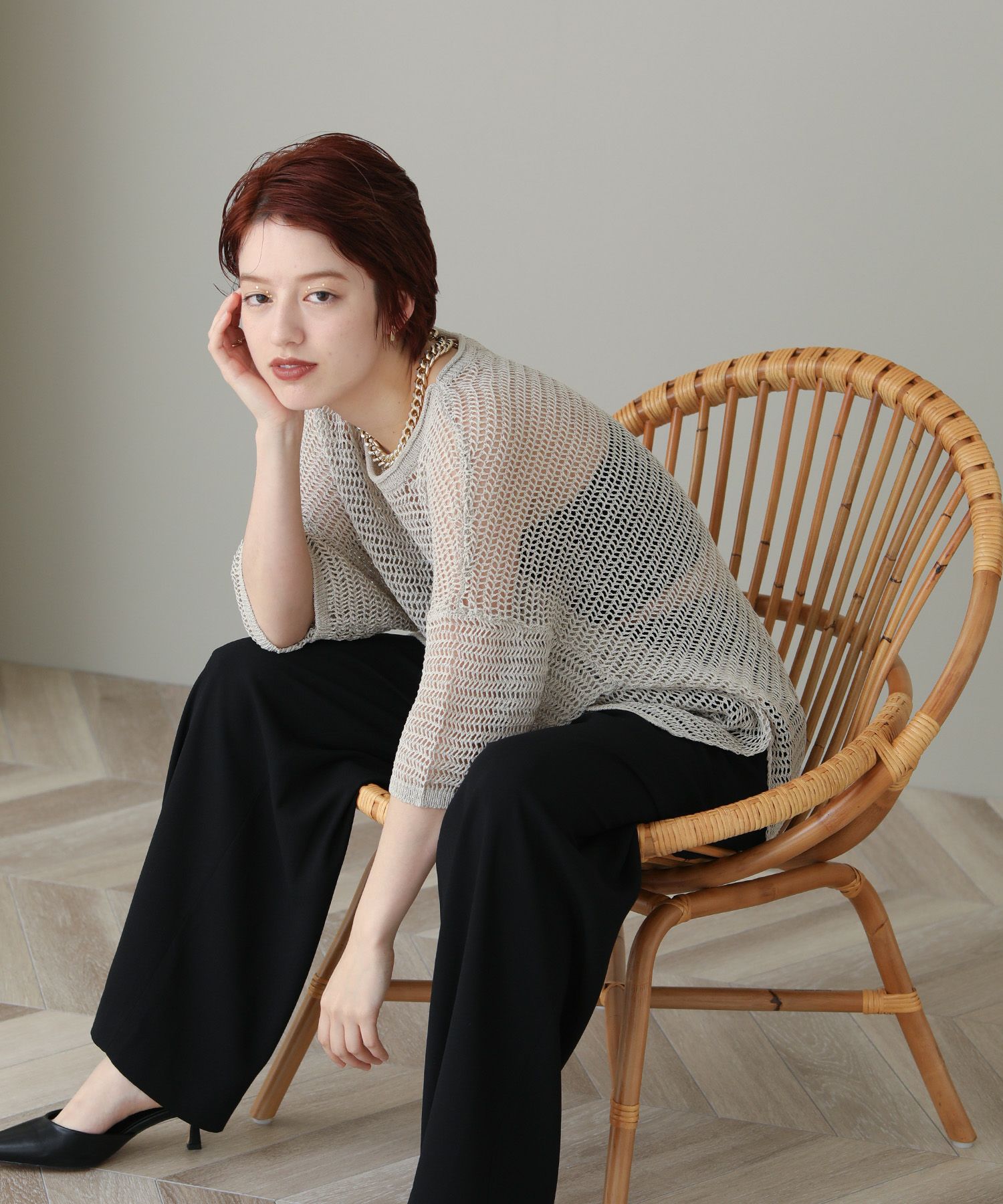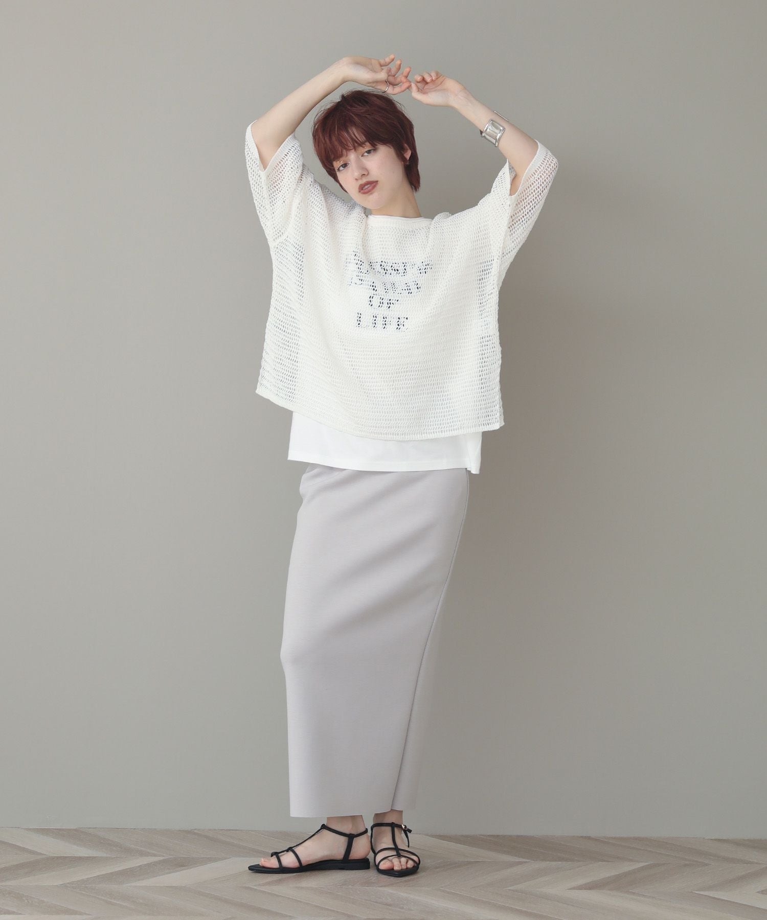大人のヘルシーな肌見せが叶うアイテムです。タンクトップやキャミソールと合わせてるのはもちろん、ロゴTシャツとレイヤードするのもおすすめ。程良いオーバーサイズ感で華奢見え効果も◎