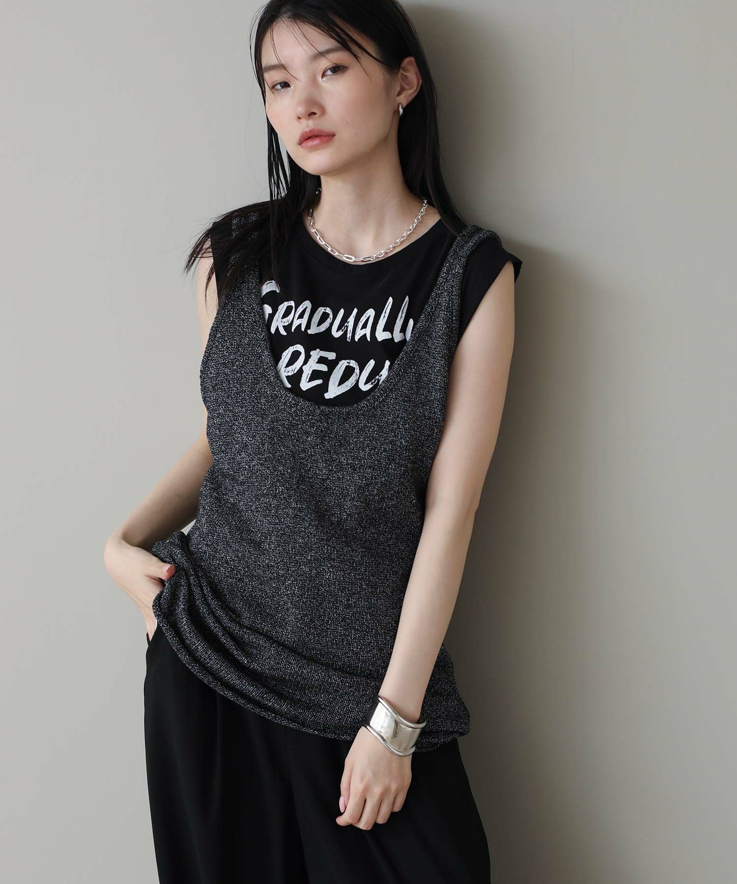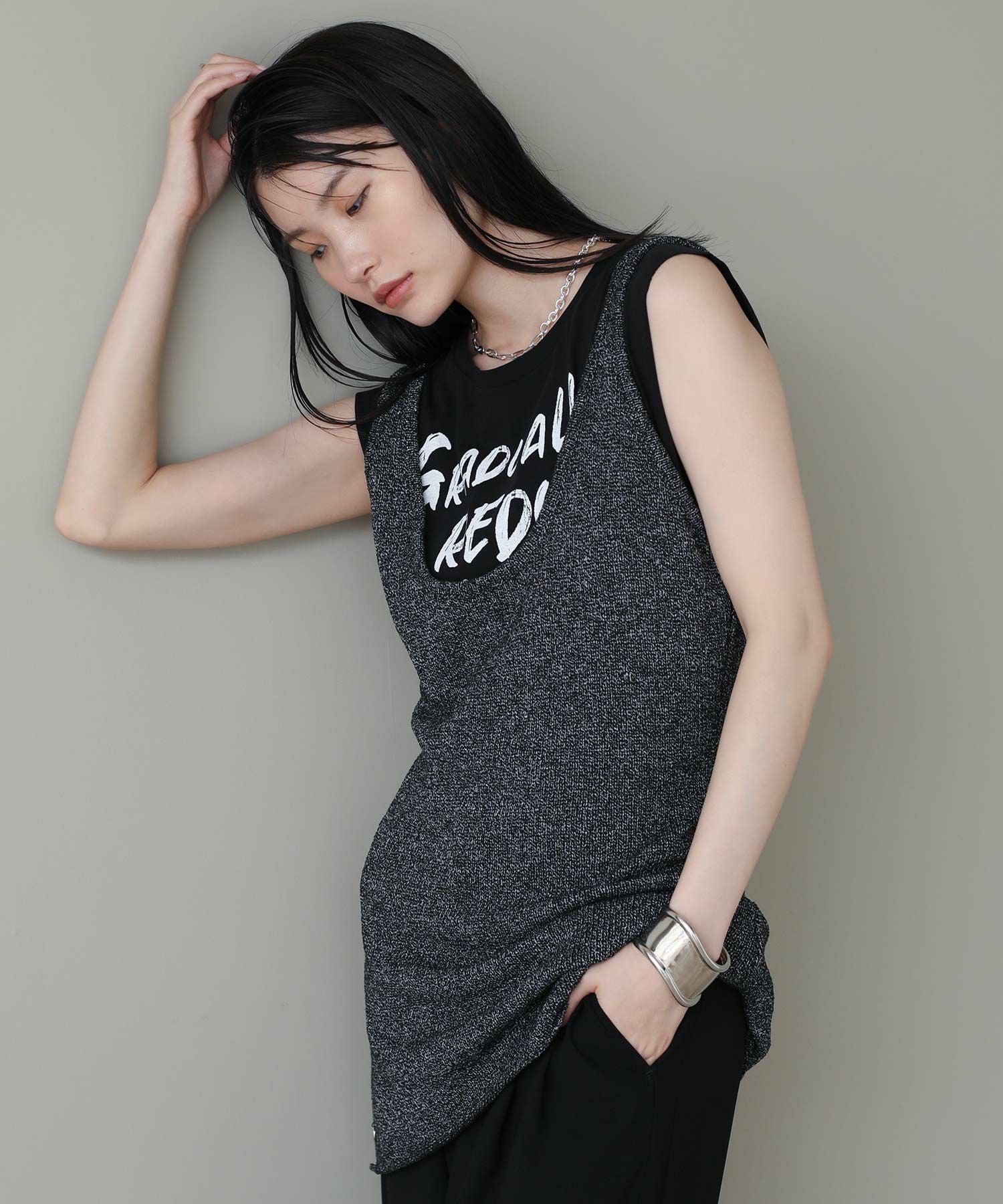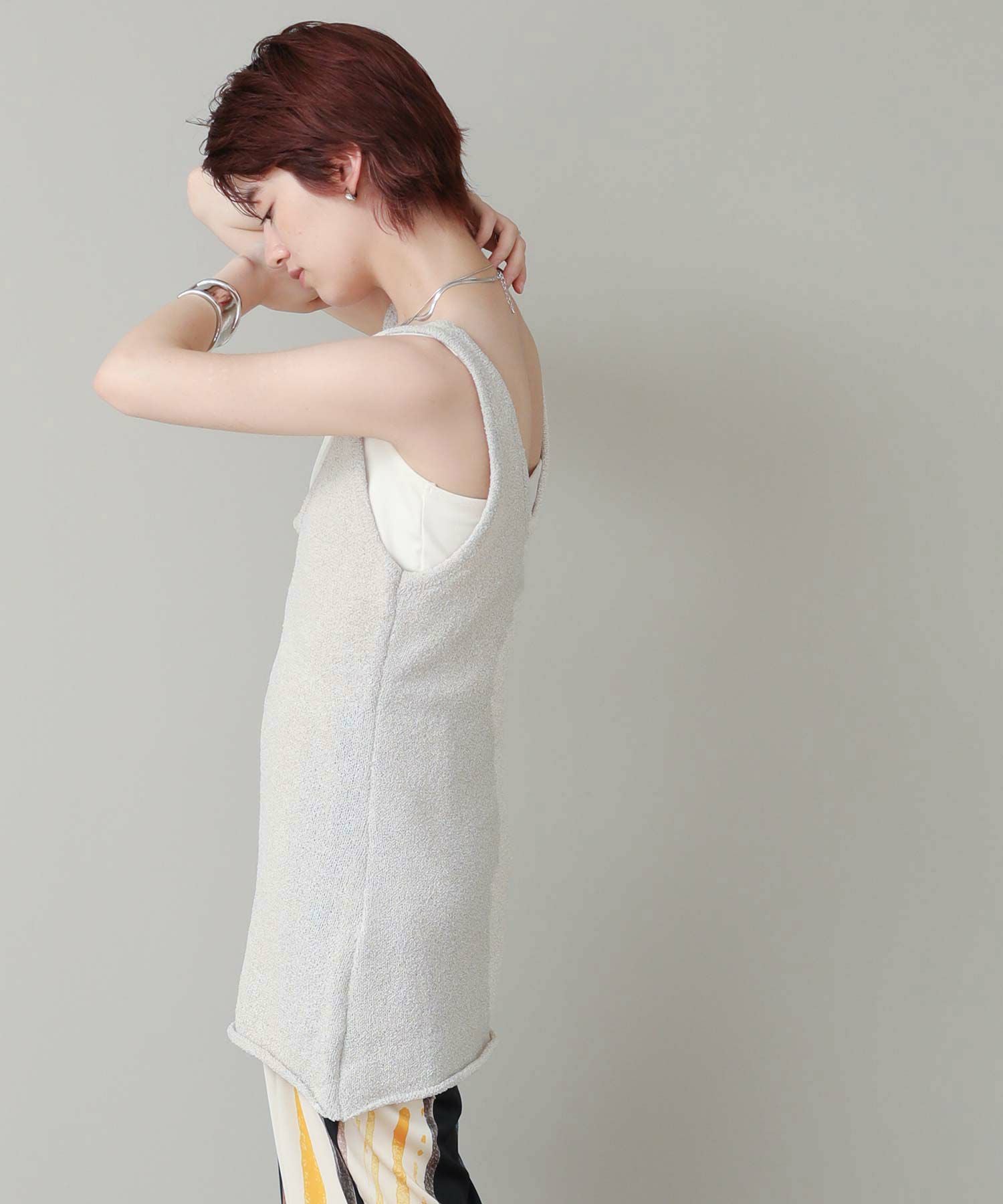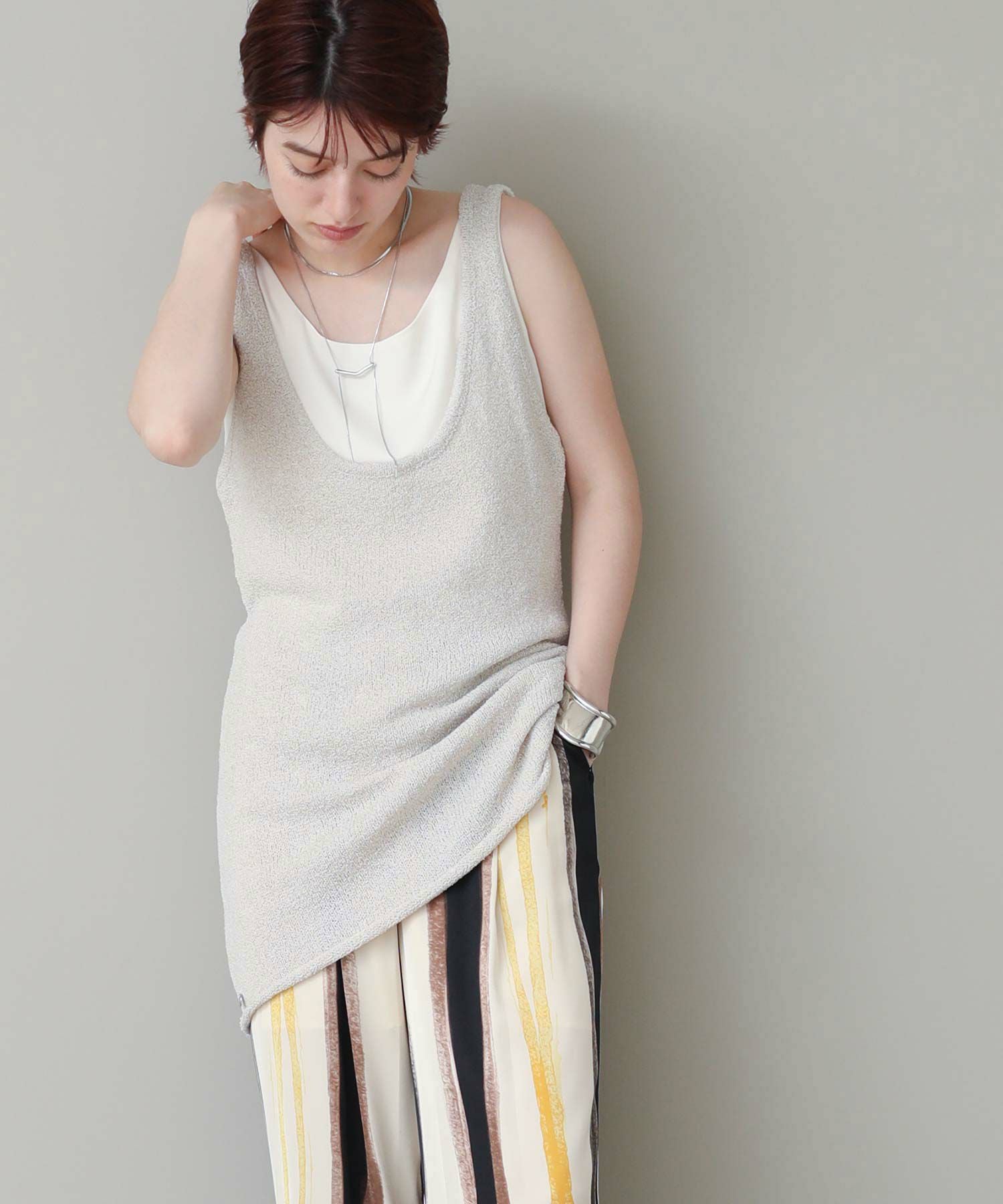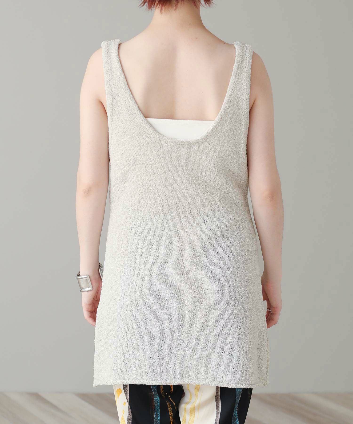 チュニック丈が新鮮なニットタンク。