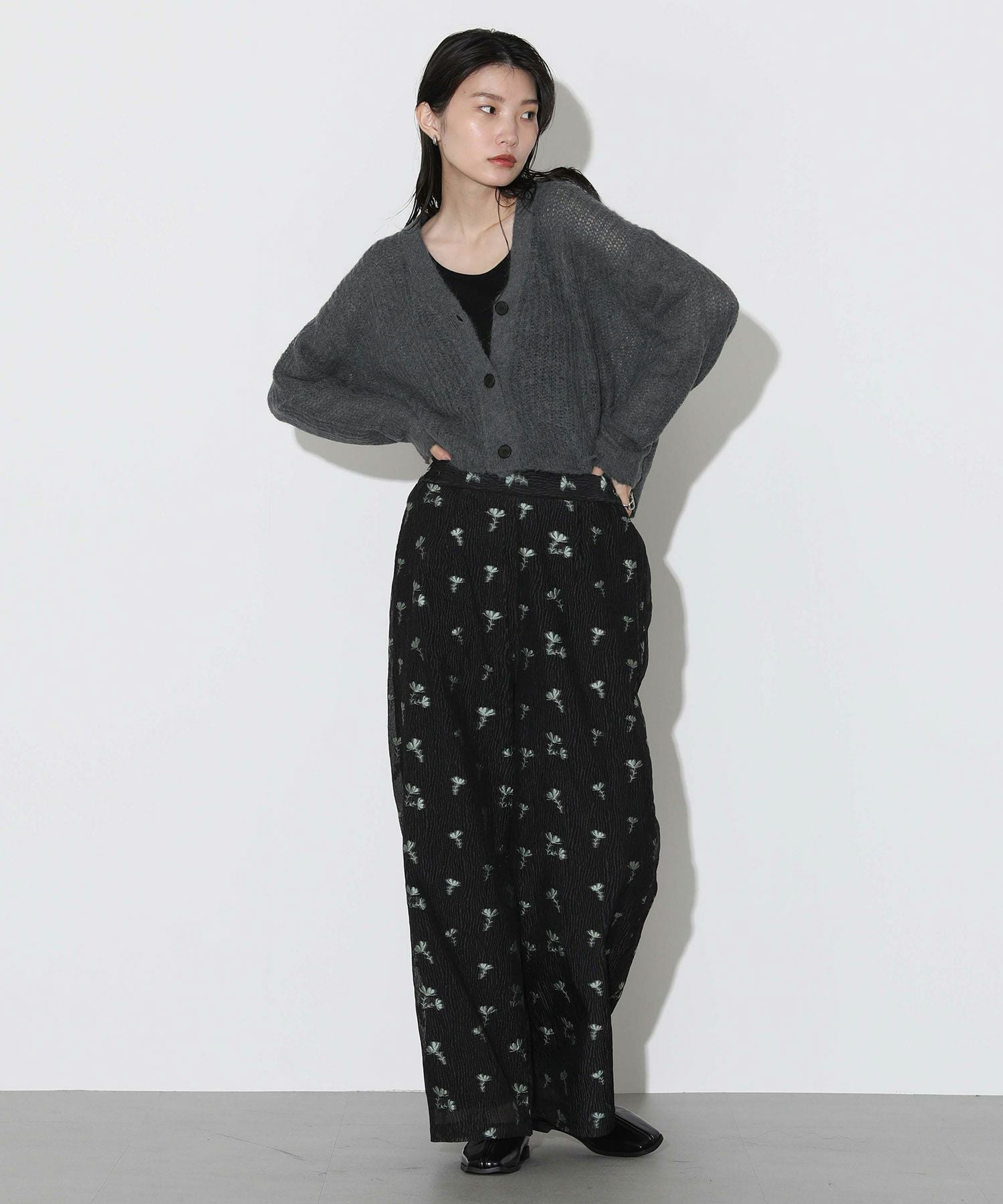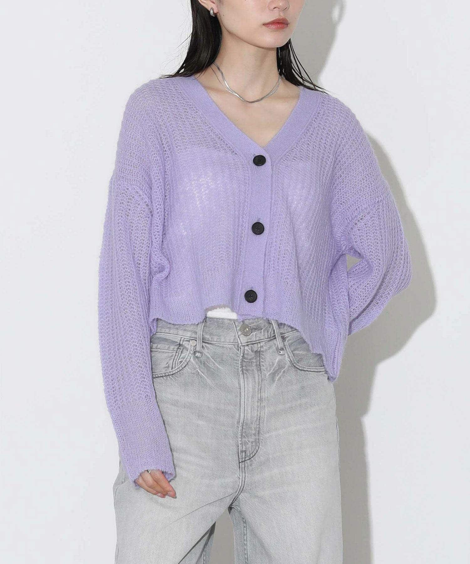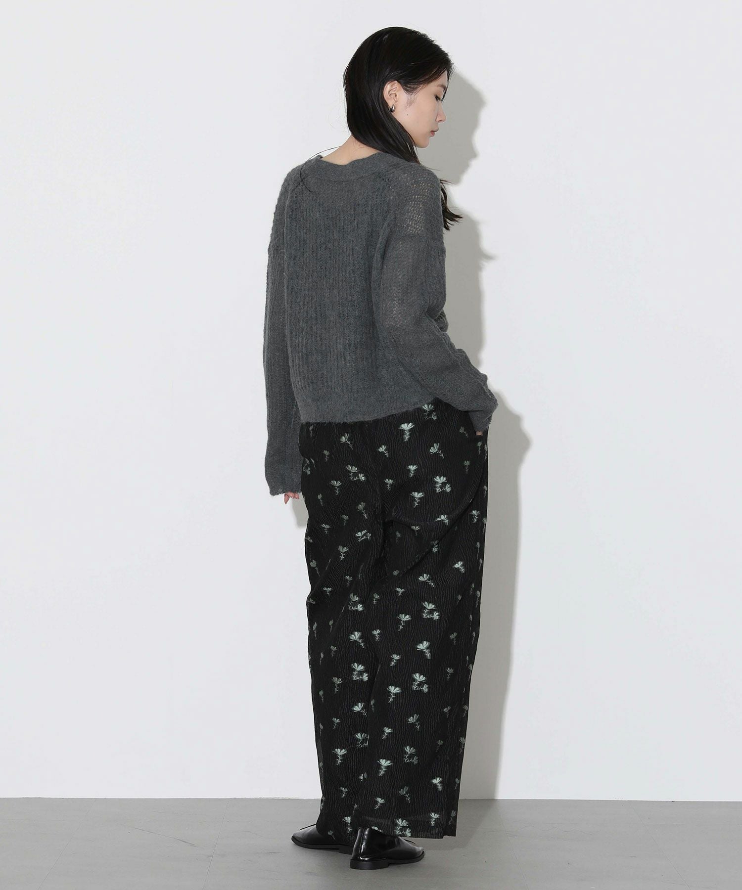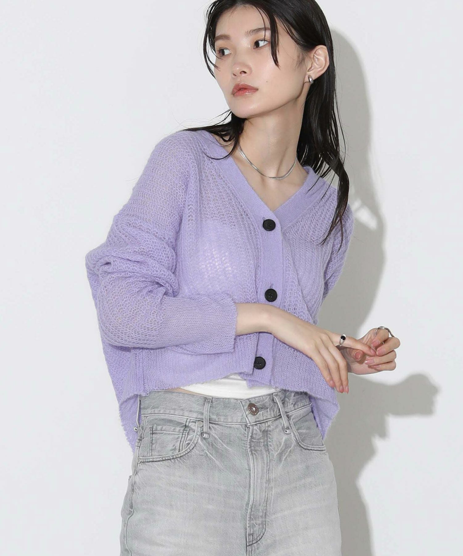希少なスーリーアルパカを使用した贅沢な1枚です。通常のアルパカより光沢感があり洗練された女性らしさを演出します。度甘で編立たシアー感が優しい表情。気温が高い時期はタンクトップをインナーにして透け感を楽しむのもおすすめ。季節が進めば長袖やタートルネックでレイヤードスタイルに。長く愛用できるアイテムです。