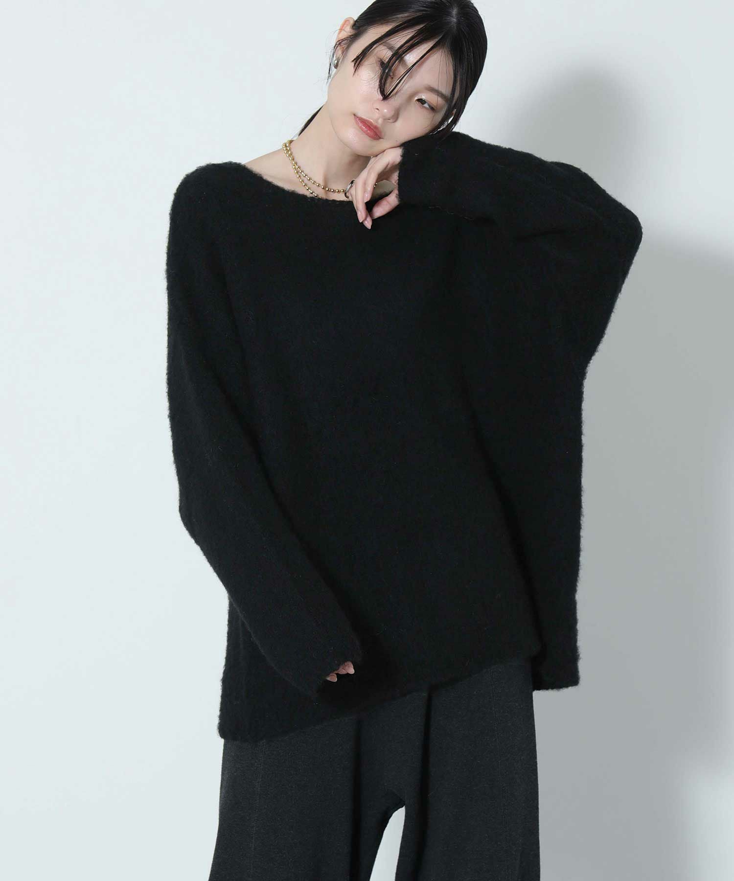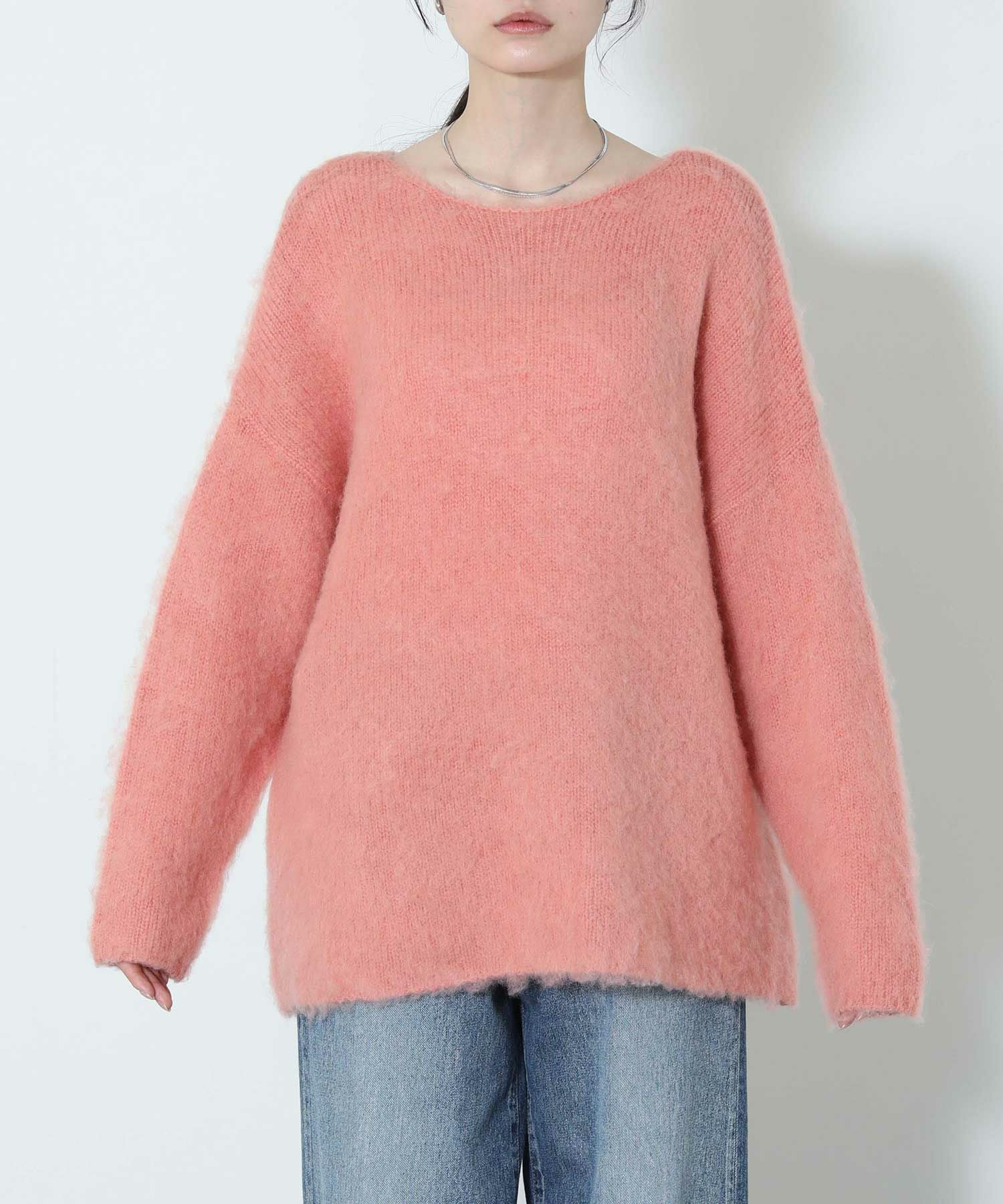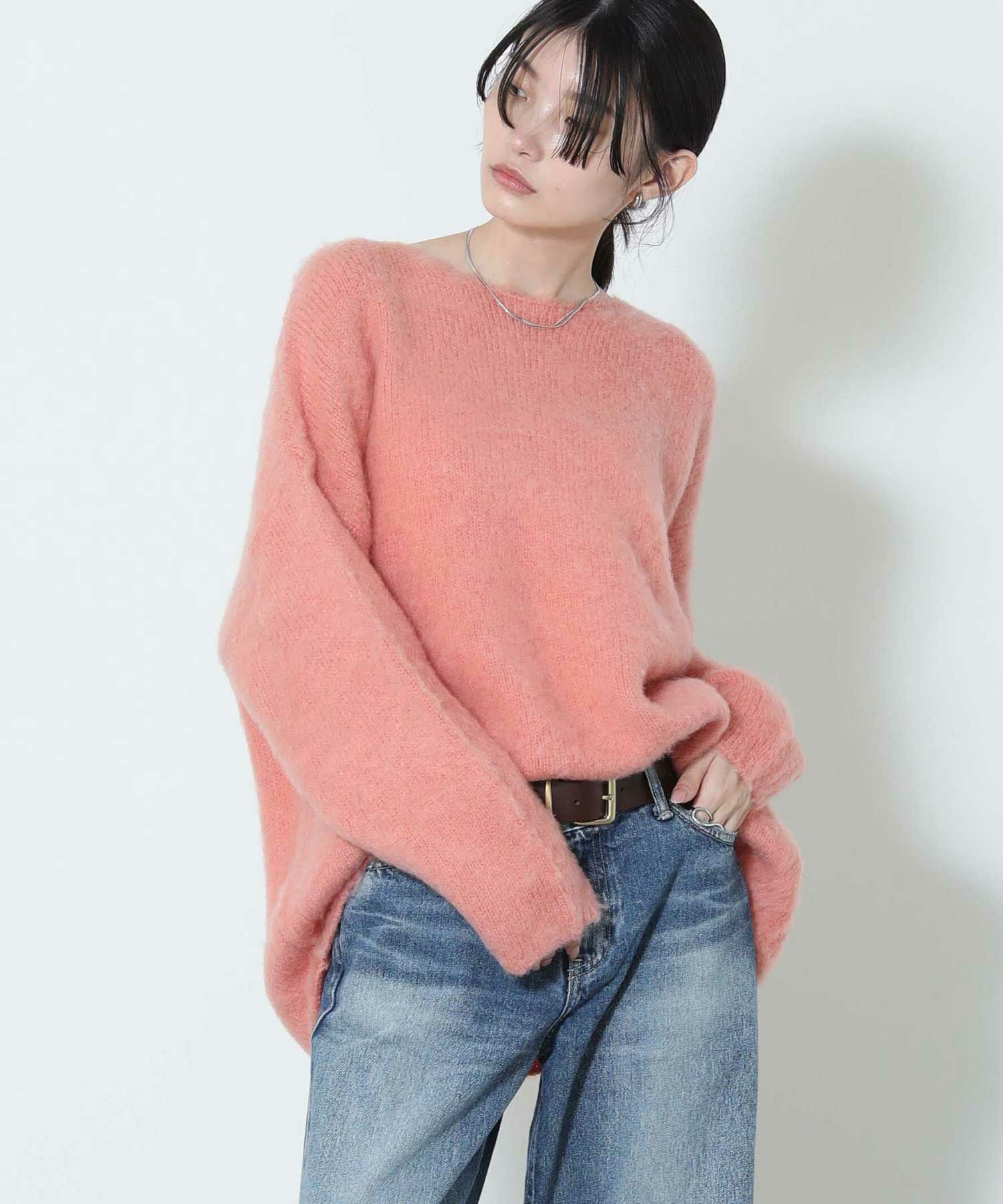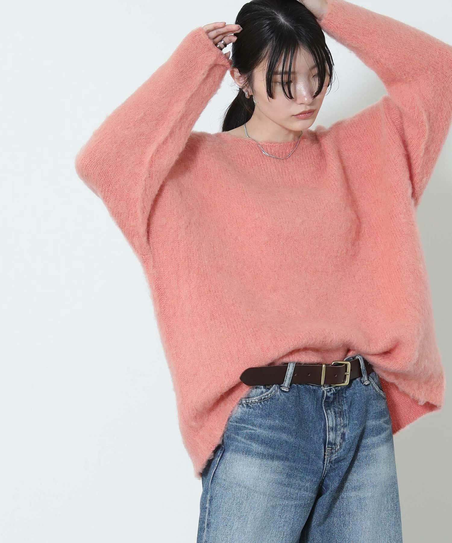 オーバーなサイジングとモヘヤの風合いが今年らしいニットプルオーバー。