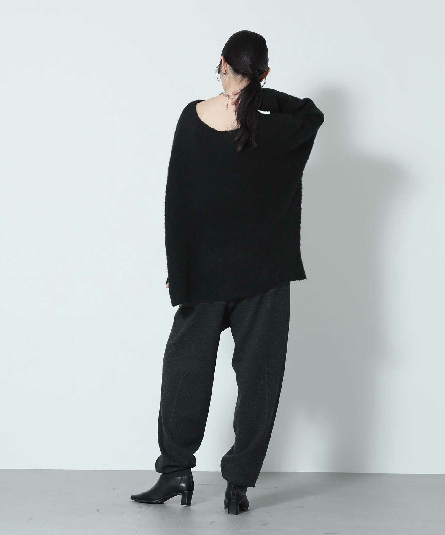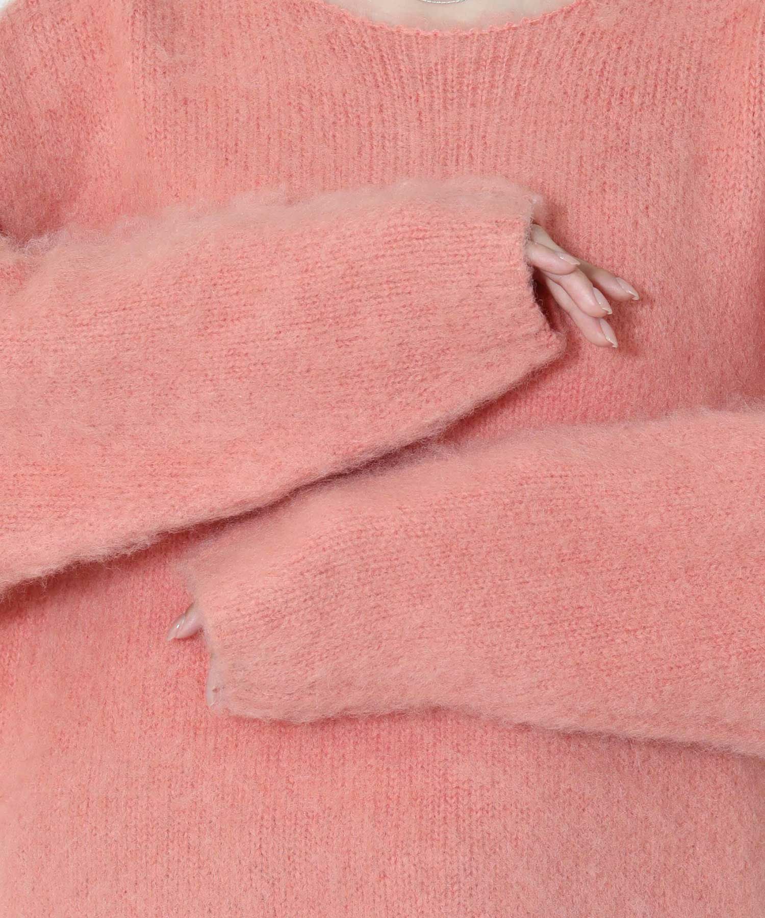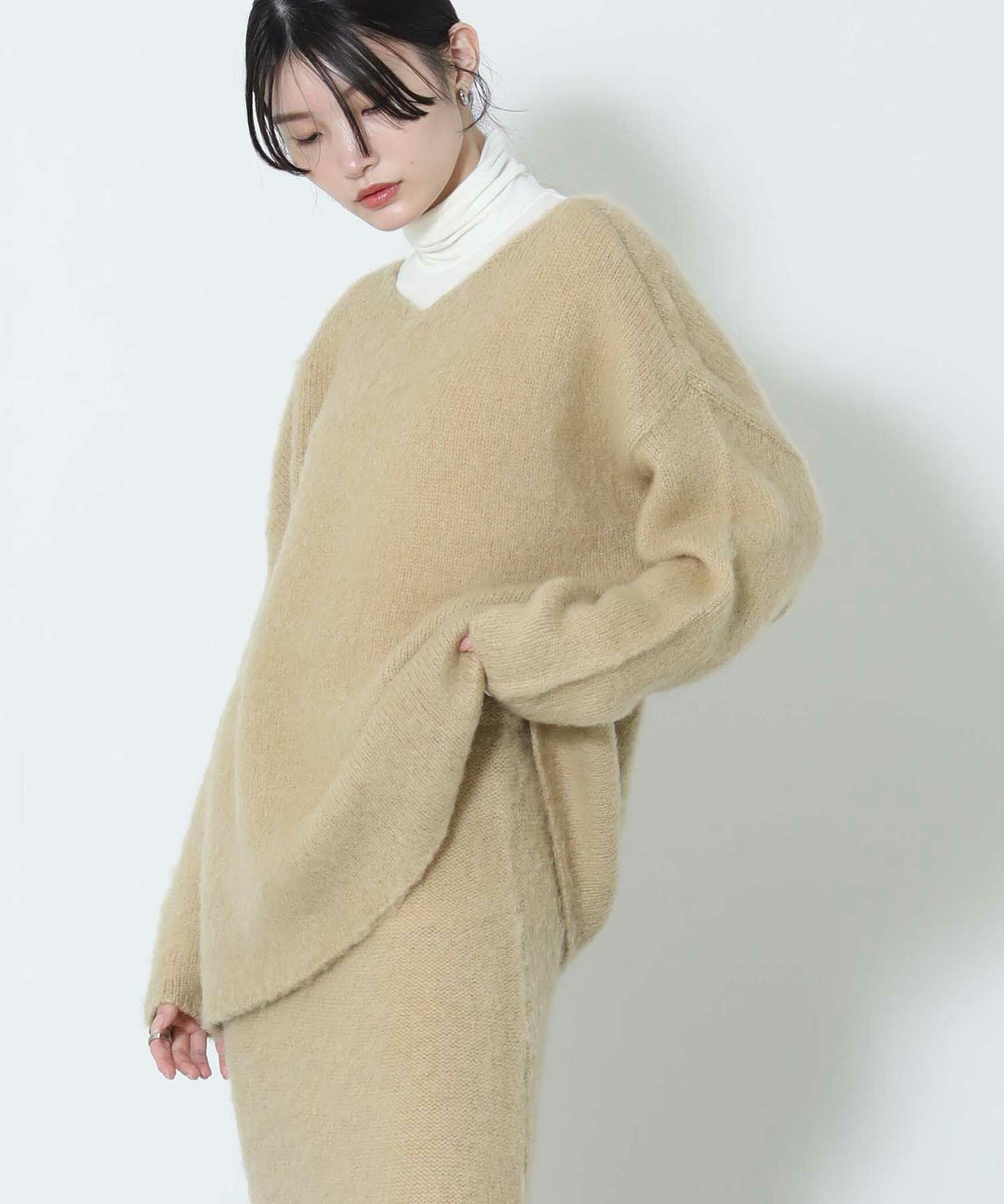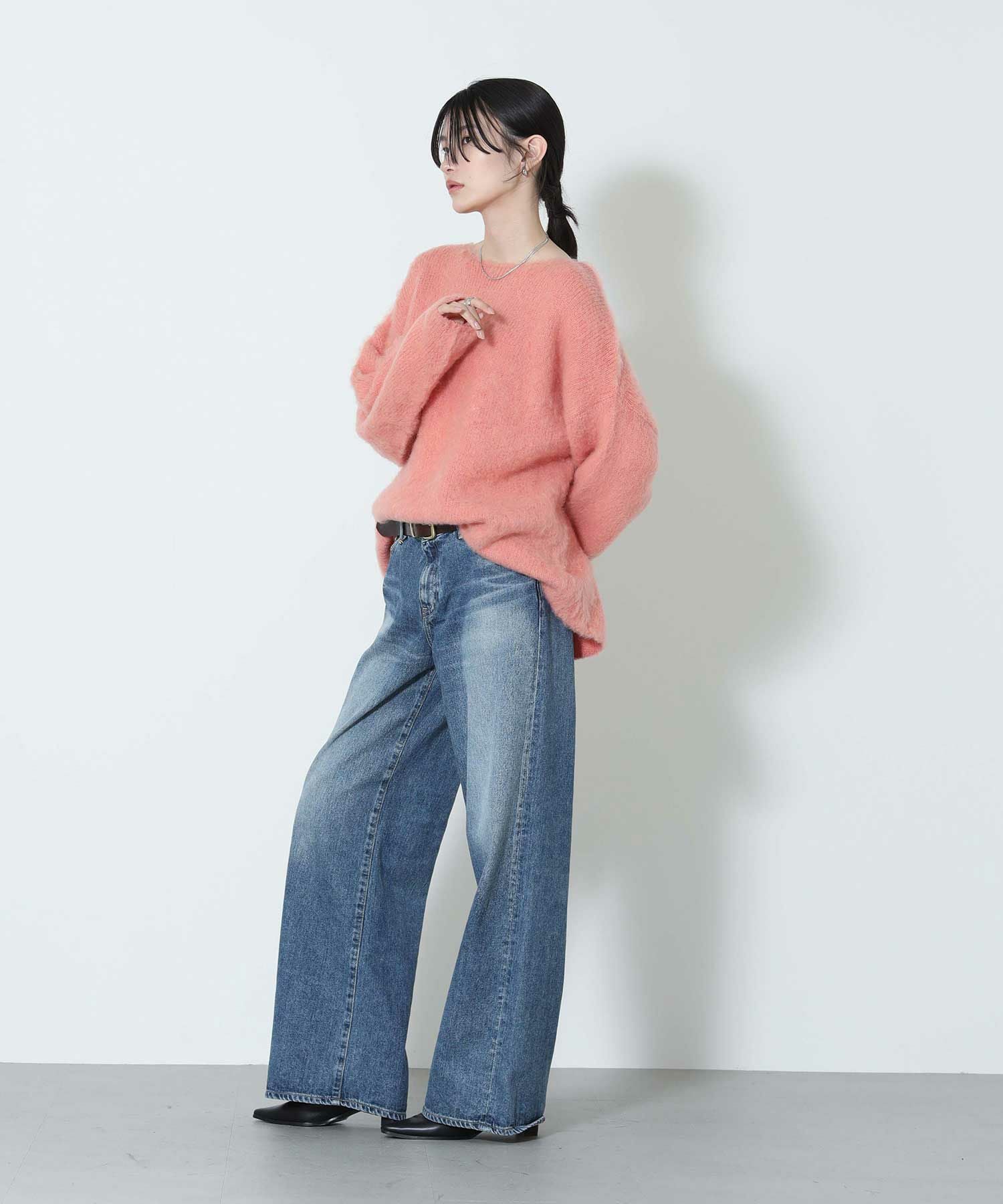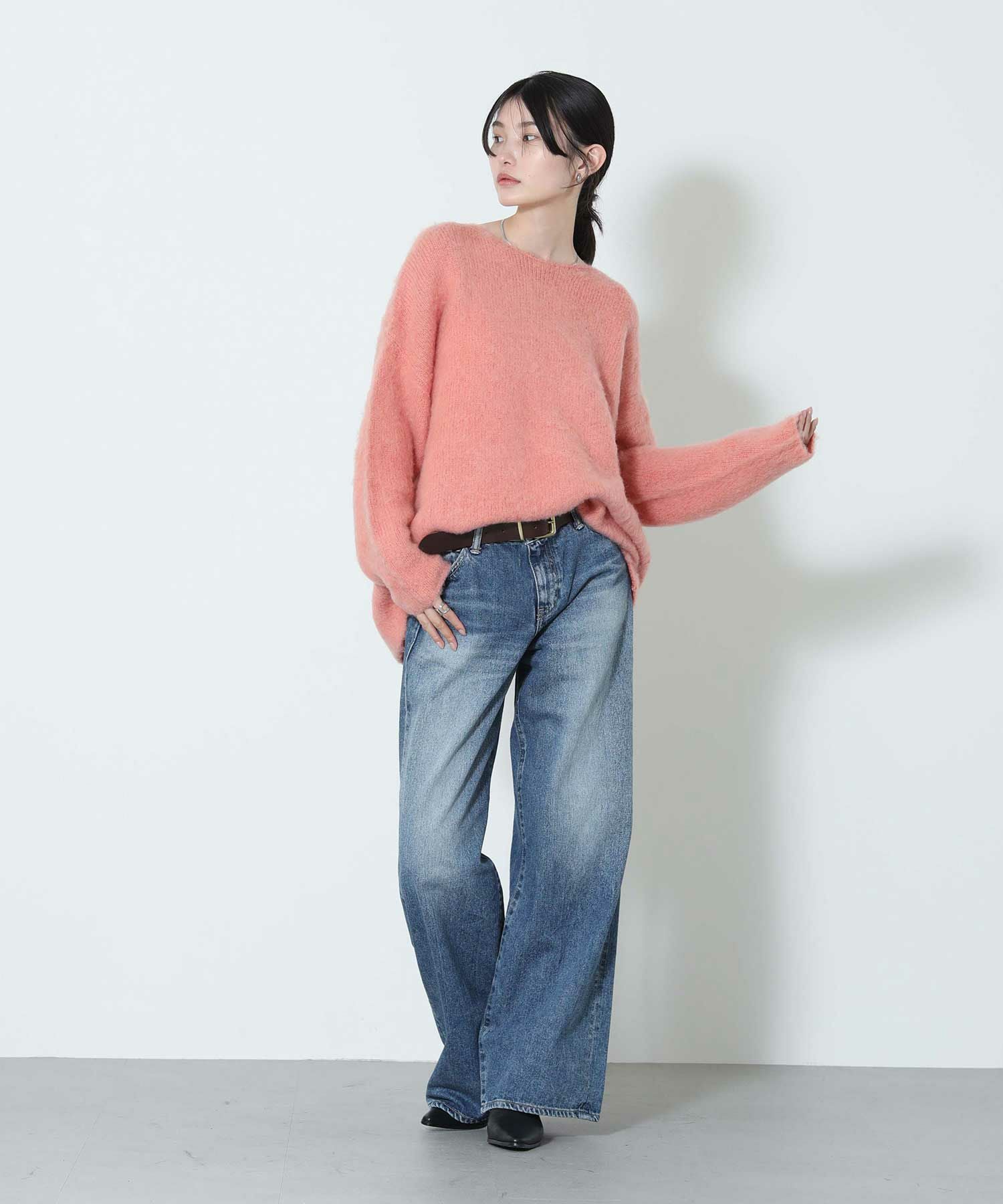 オーバーなサイジングとモヘヤの風合いが今年らしいニットプルオーバー。