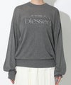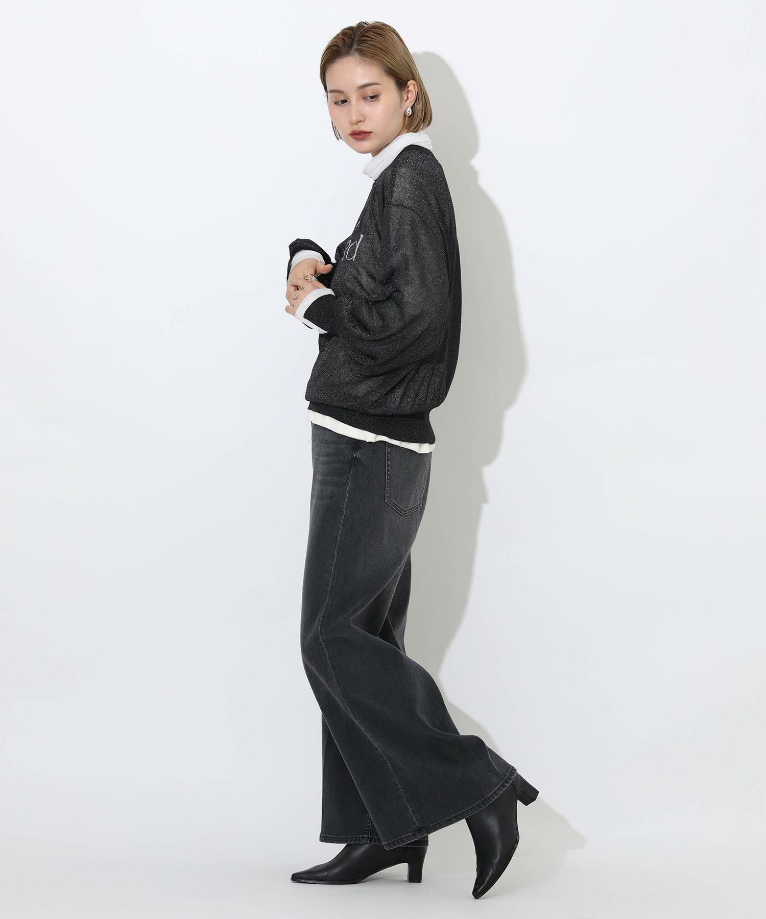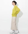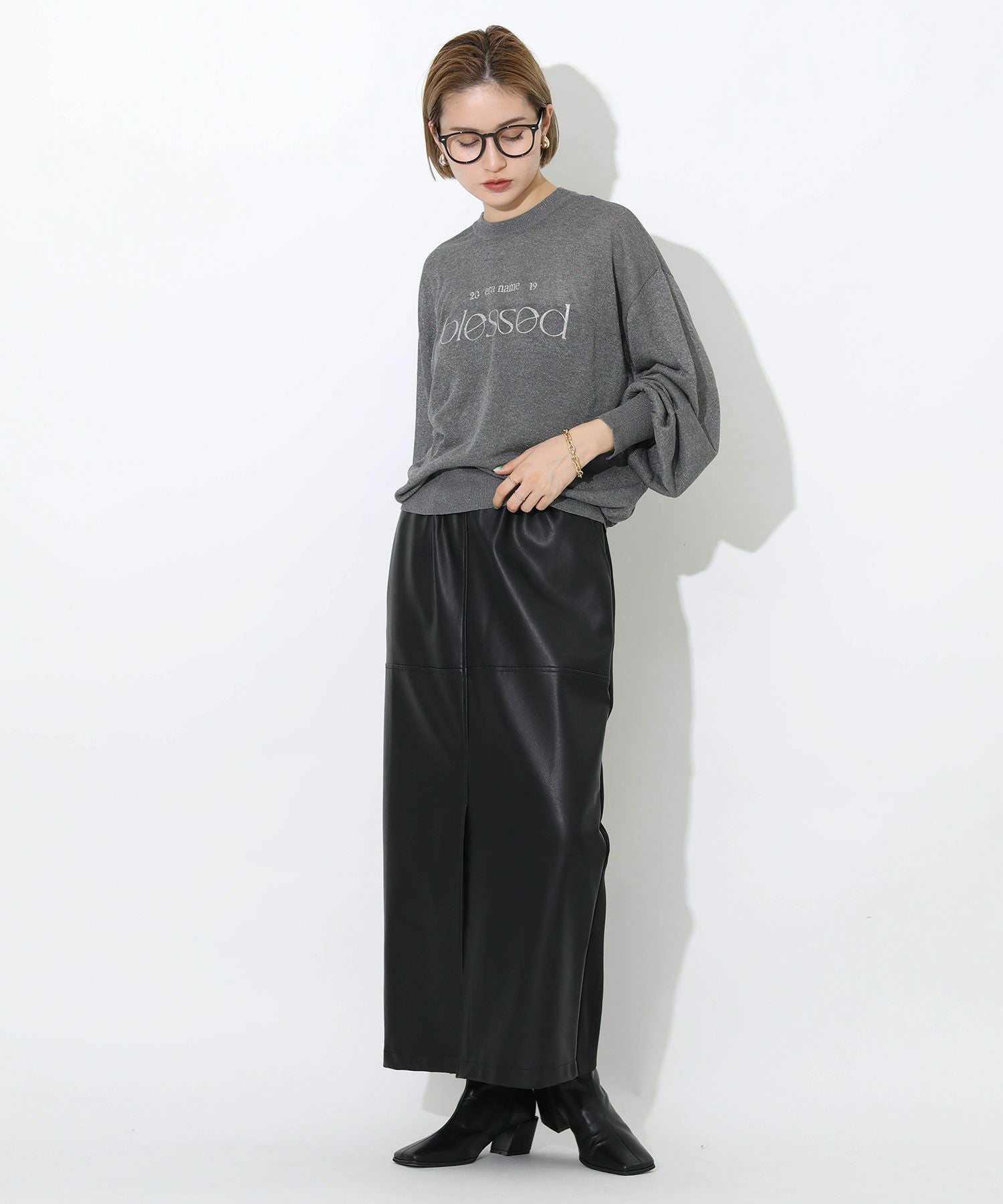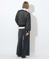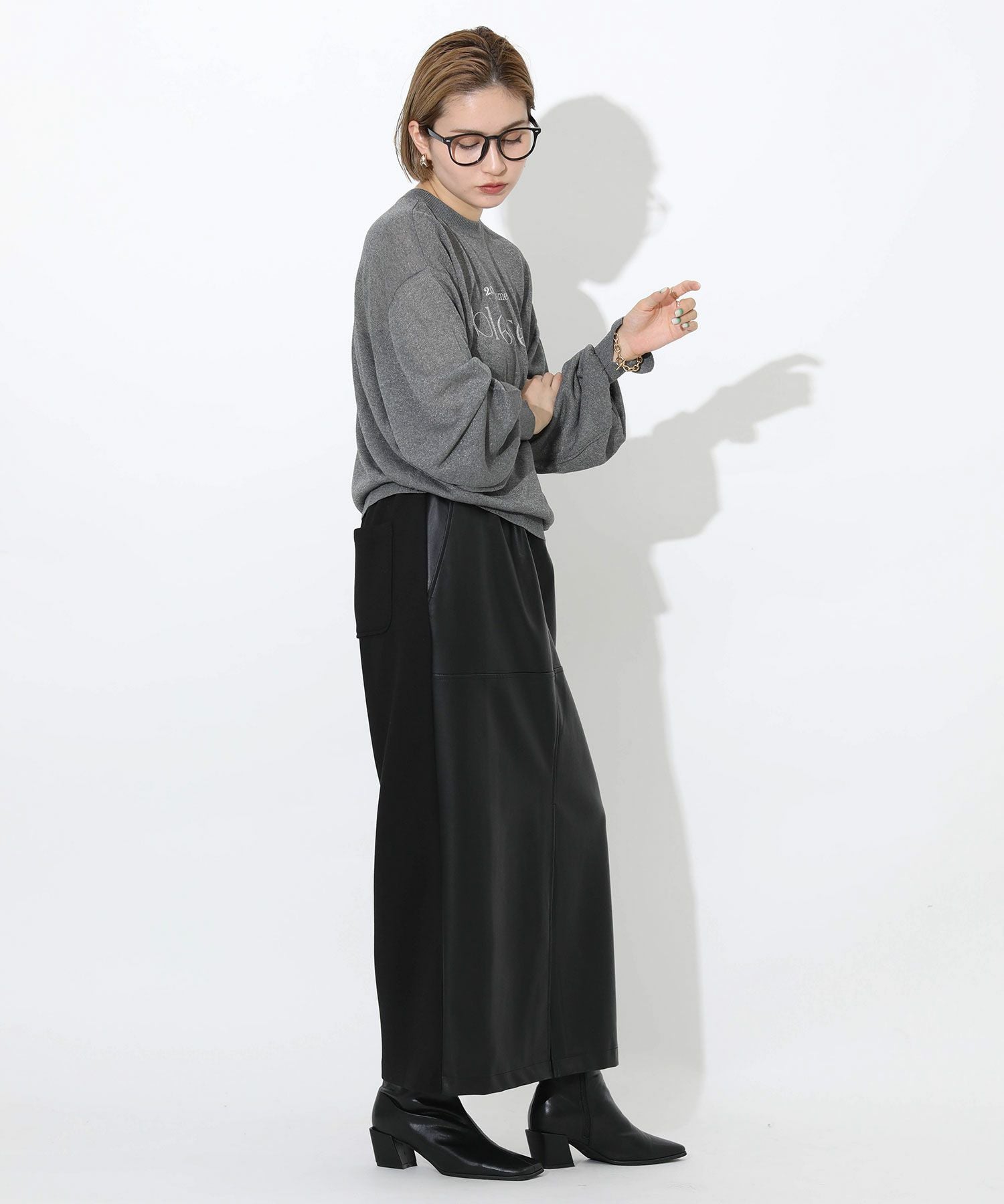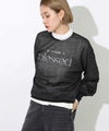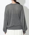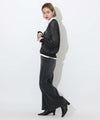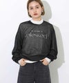 袖のボリューム感がトレンドライクなデザイン。袖口と裾のリブを幅広にすることでメリハリのあるシルエットに。袖口のスリットがさりげないポイント。前後2wayで着られて、シルバーの箔プリントが目を惹きます。