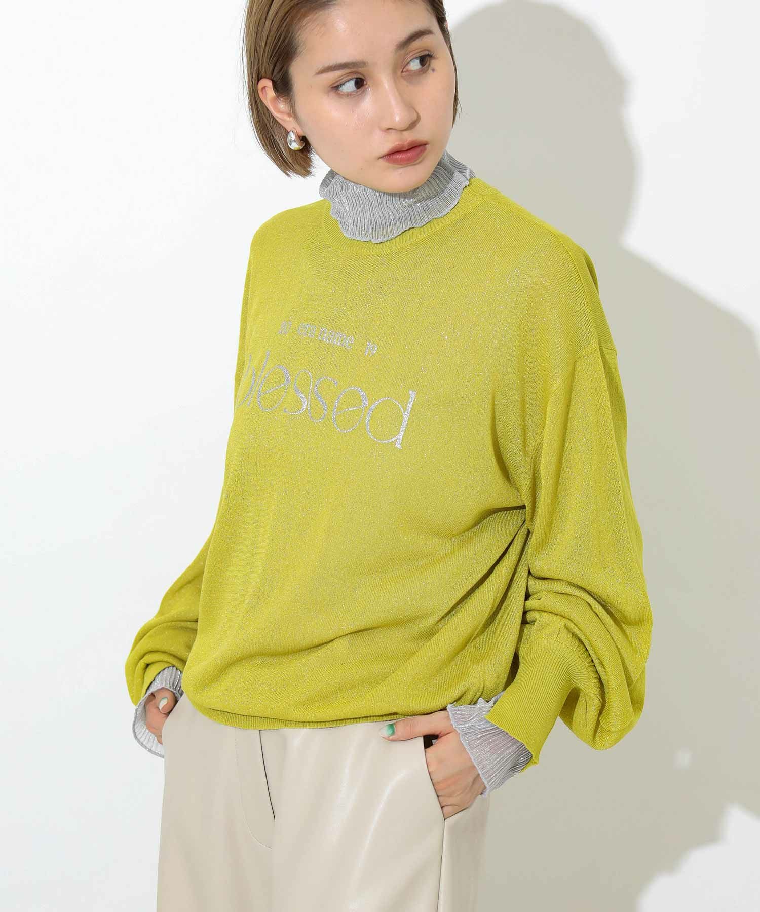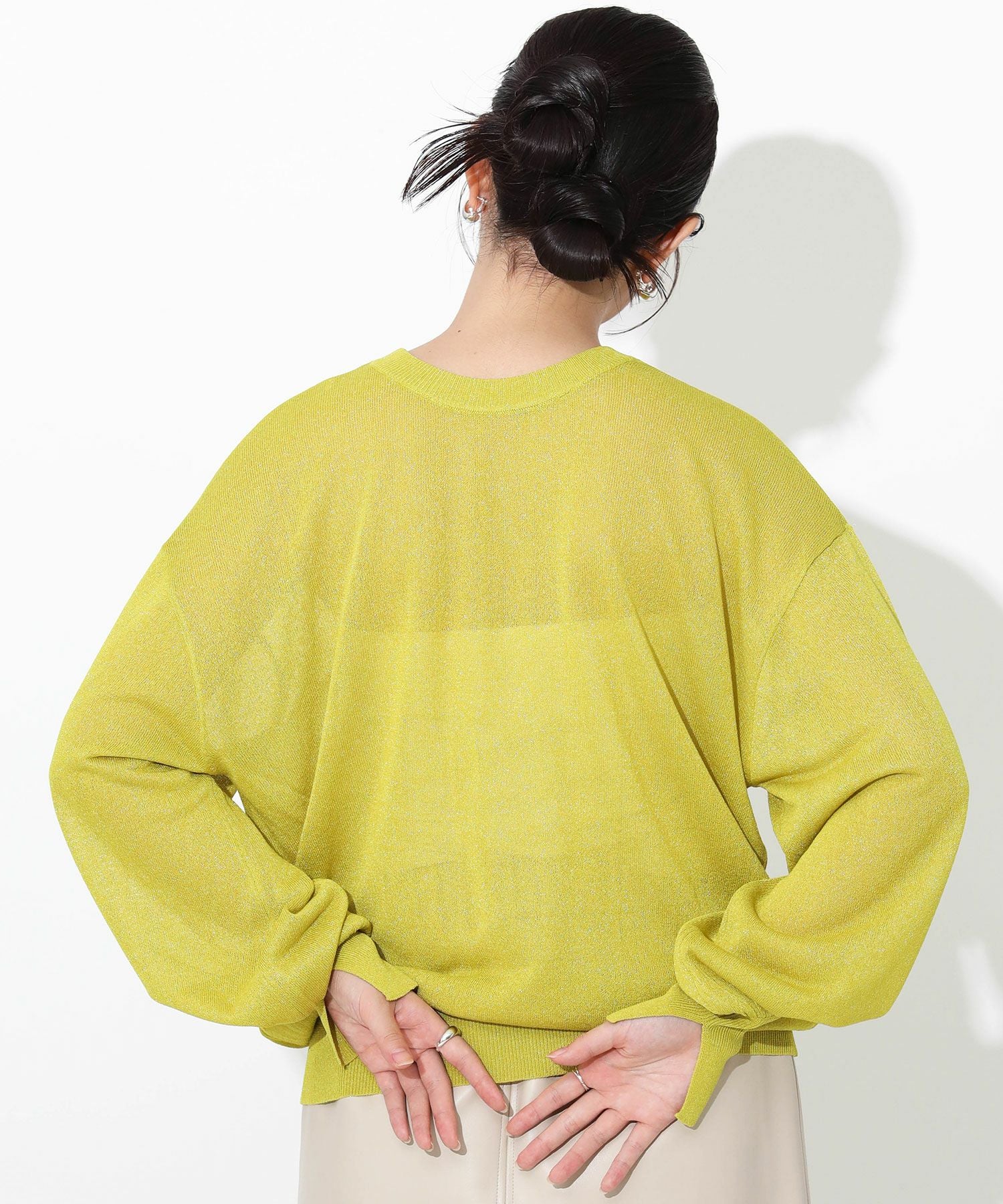 細いラメ糸を編み込んだシアー感が女性らしいニットプルオーバー。