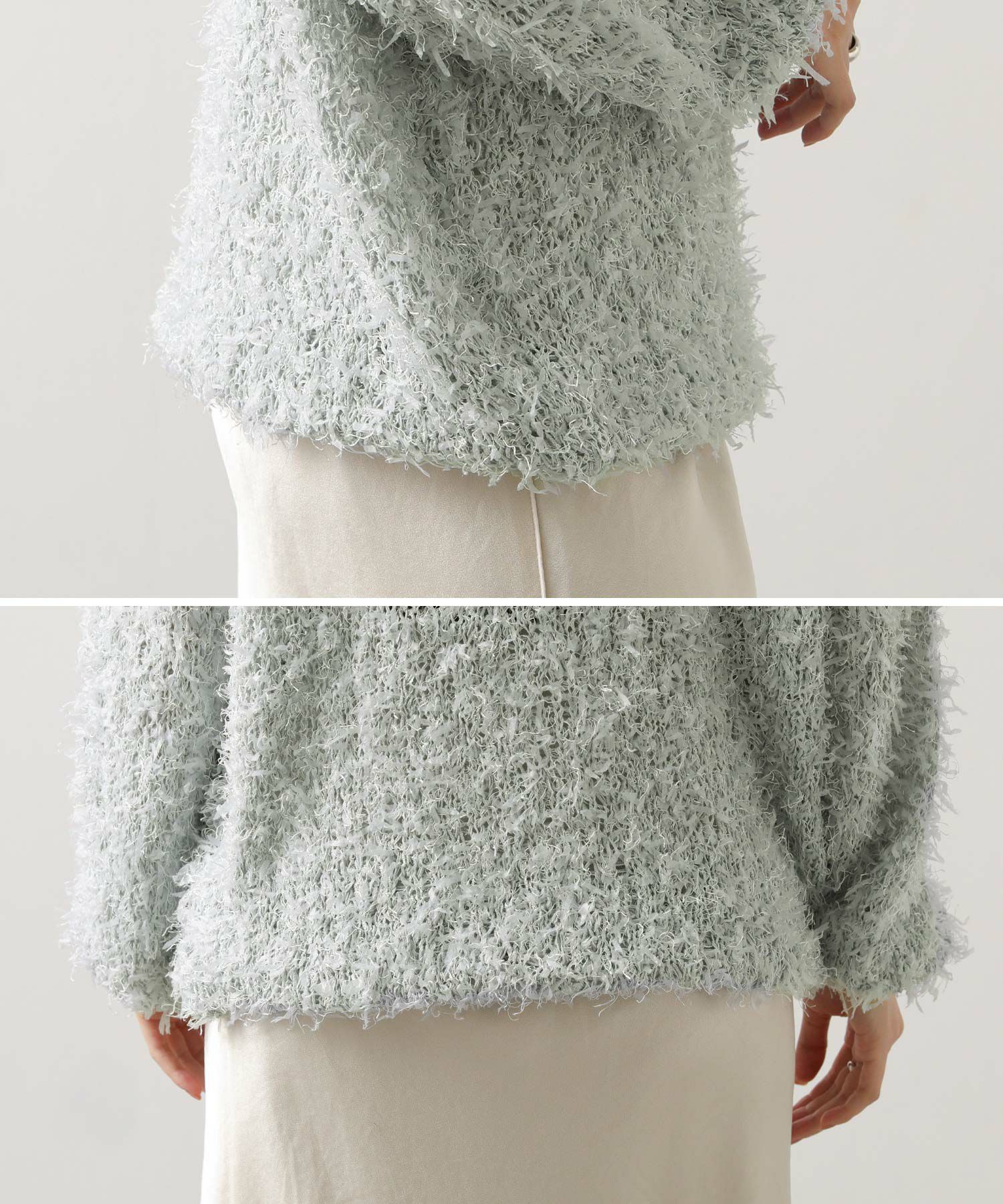 リボンヤーンを使用した、表情豊かな風合いが魅力のボートネックニット。