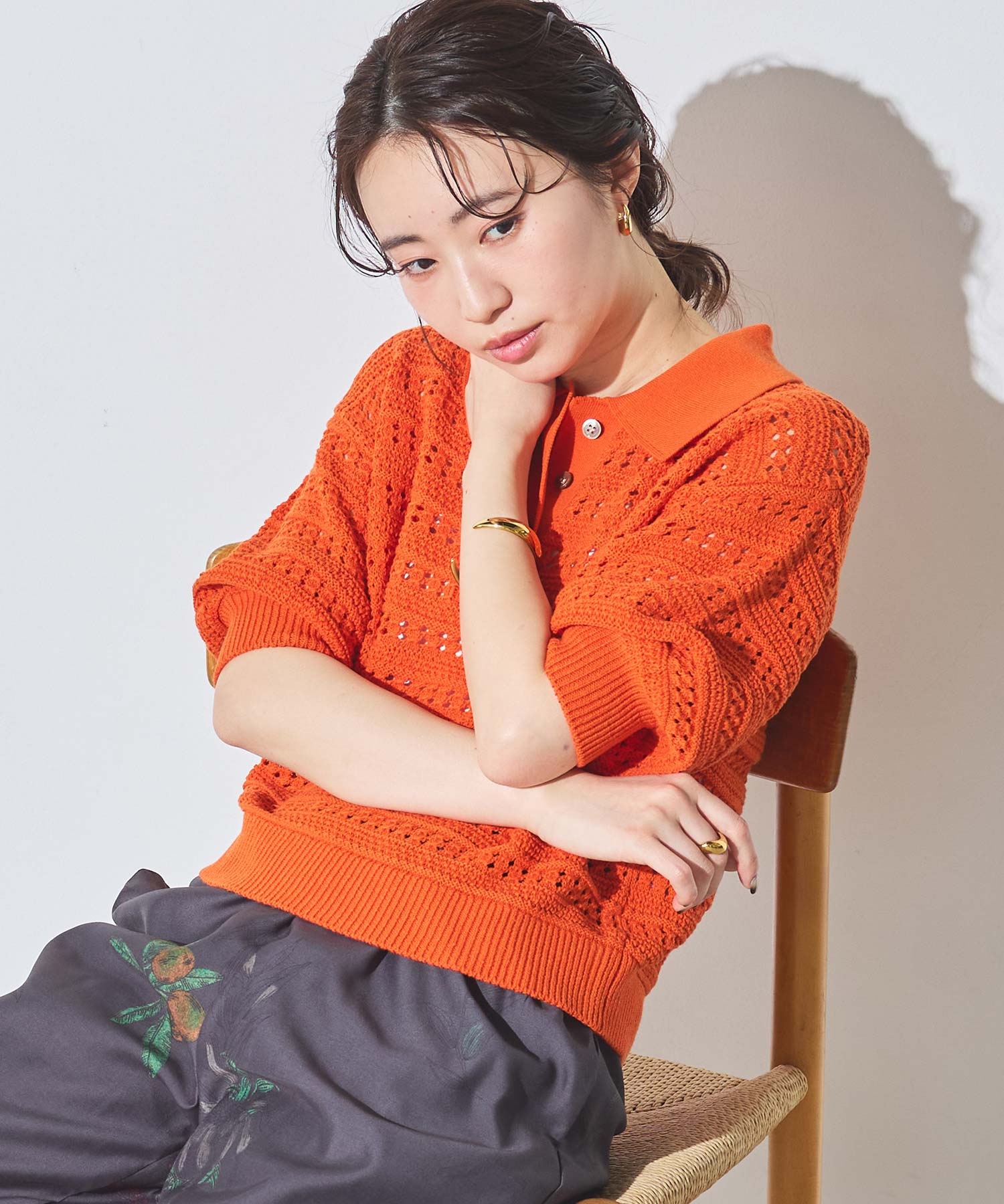 【EMMACULATE(エマキュレイト)】から、透かし編みの襟付きニットプルオーバーをカラー別注。