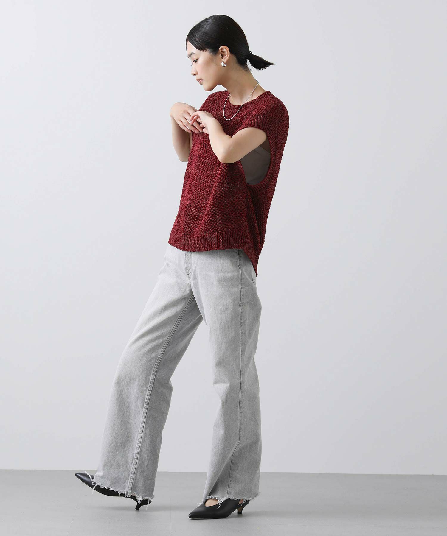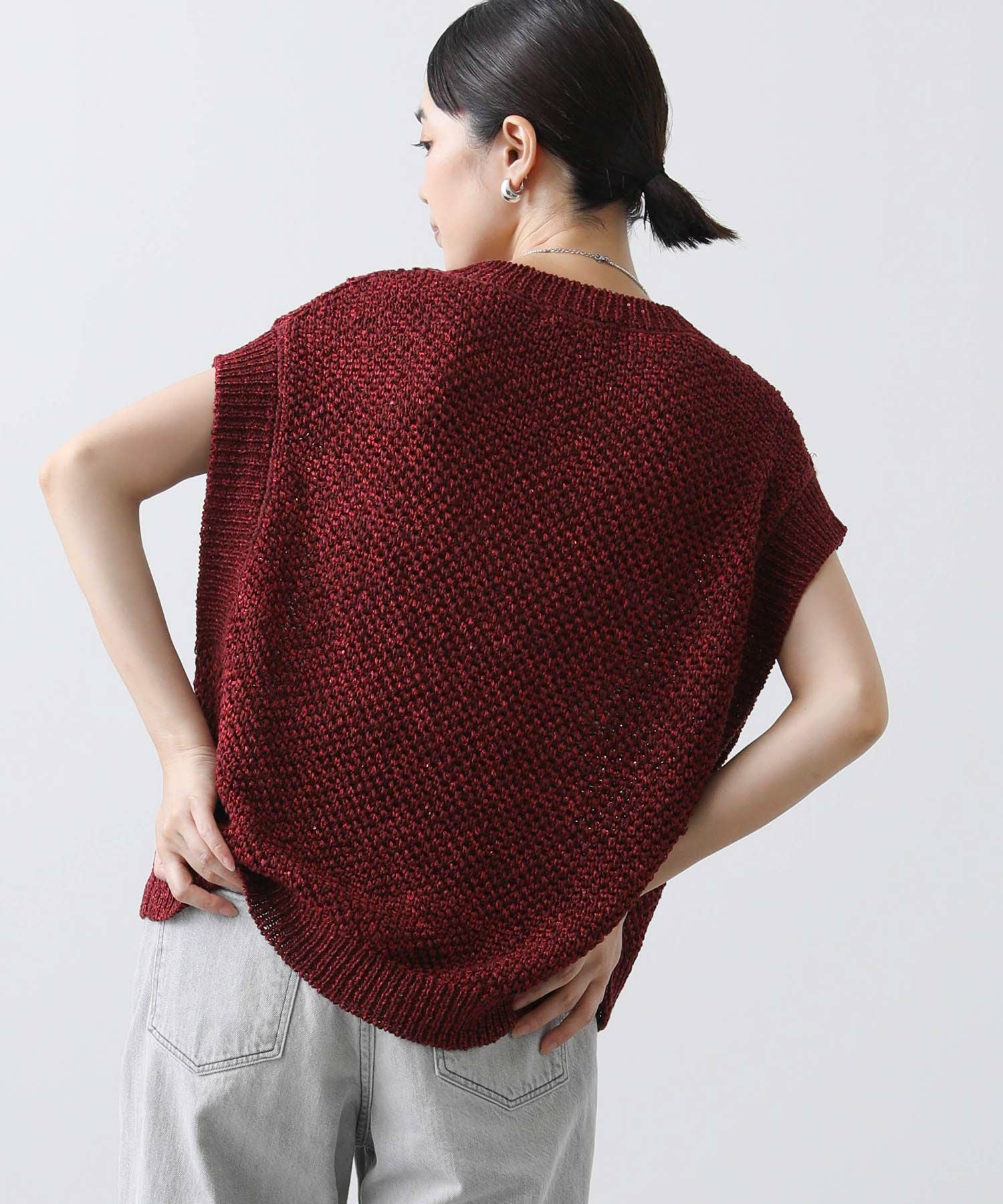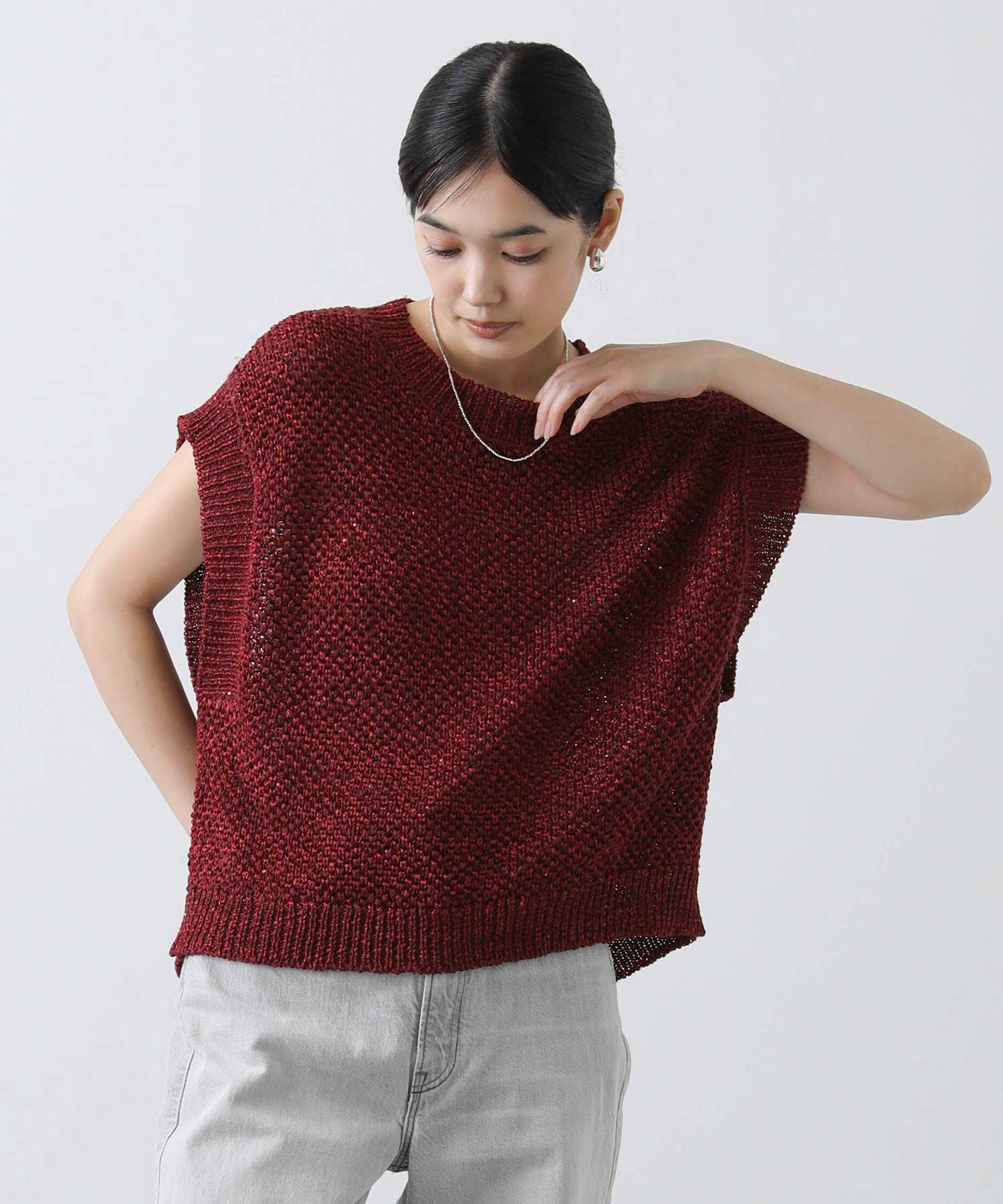 ざっくりとしたメッシュ編みで暑い時季は一枚着として、