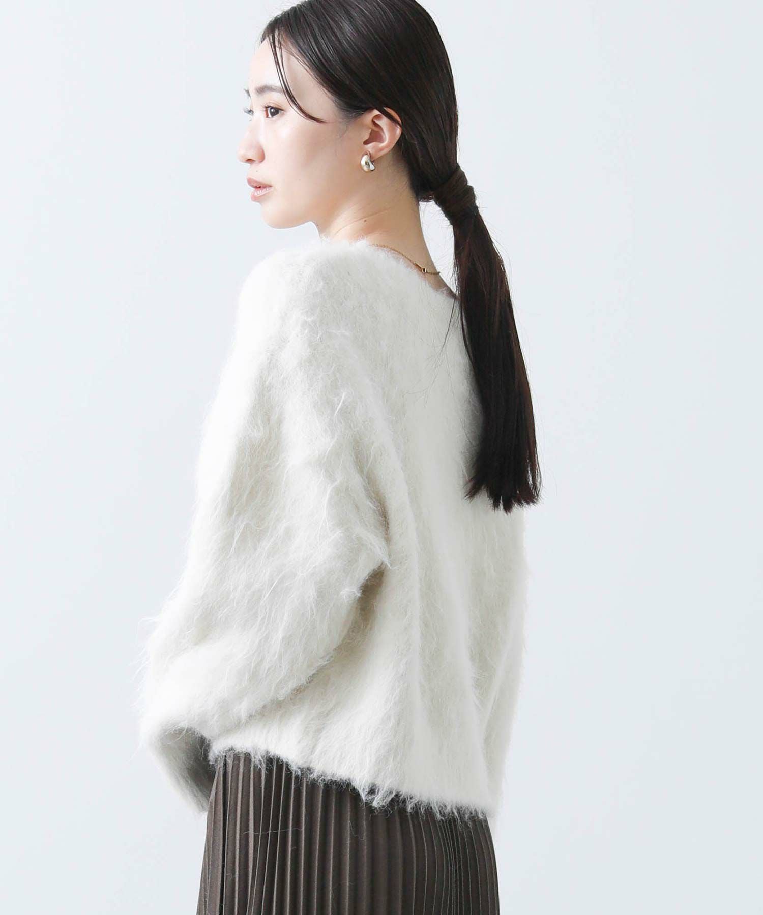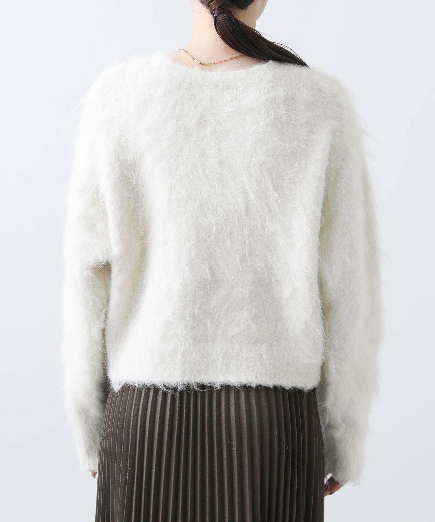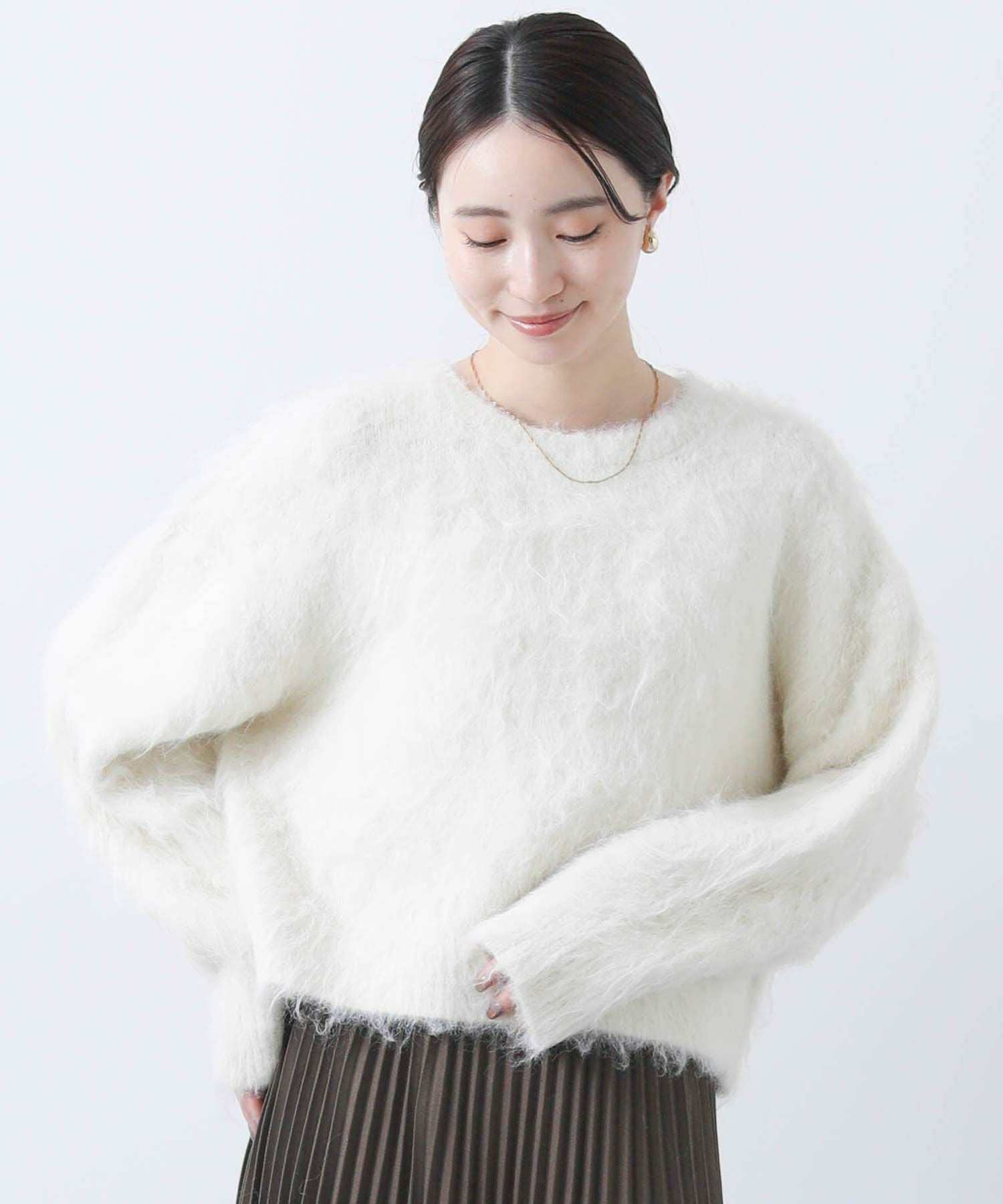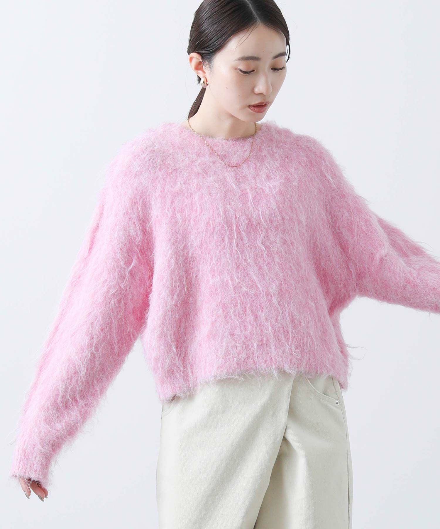 毛足の長いふわふわのシャギーが今年らしい、シンプルながら主役級のニットプルオーバー。