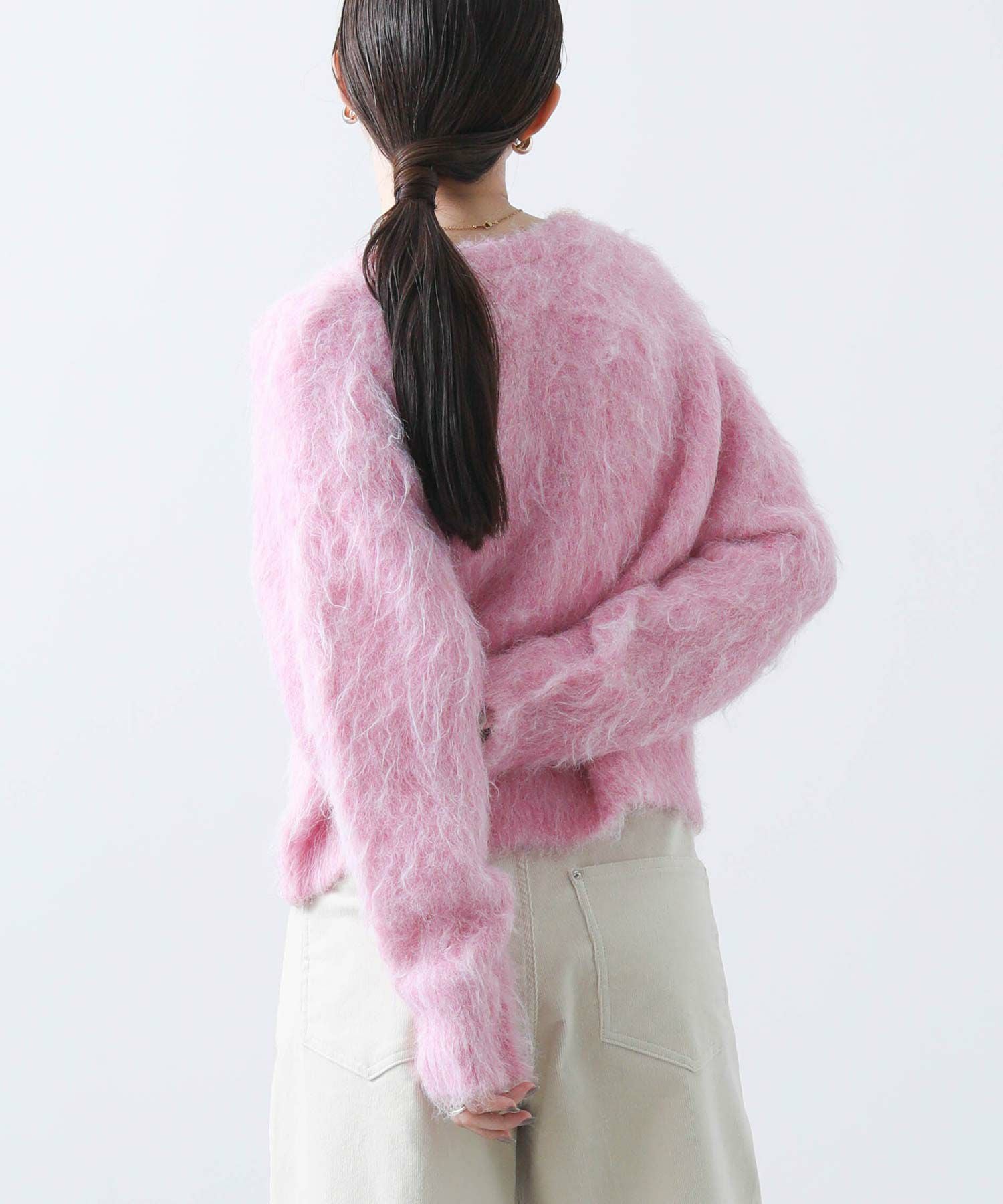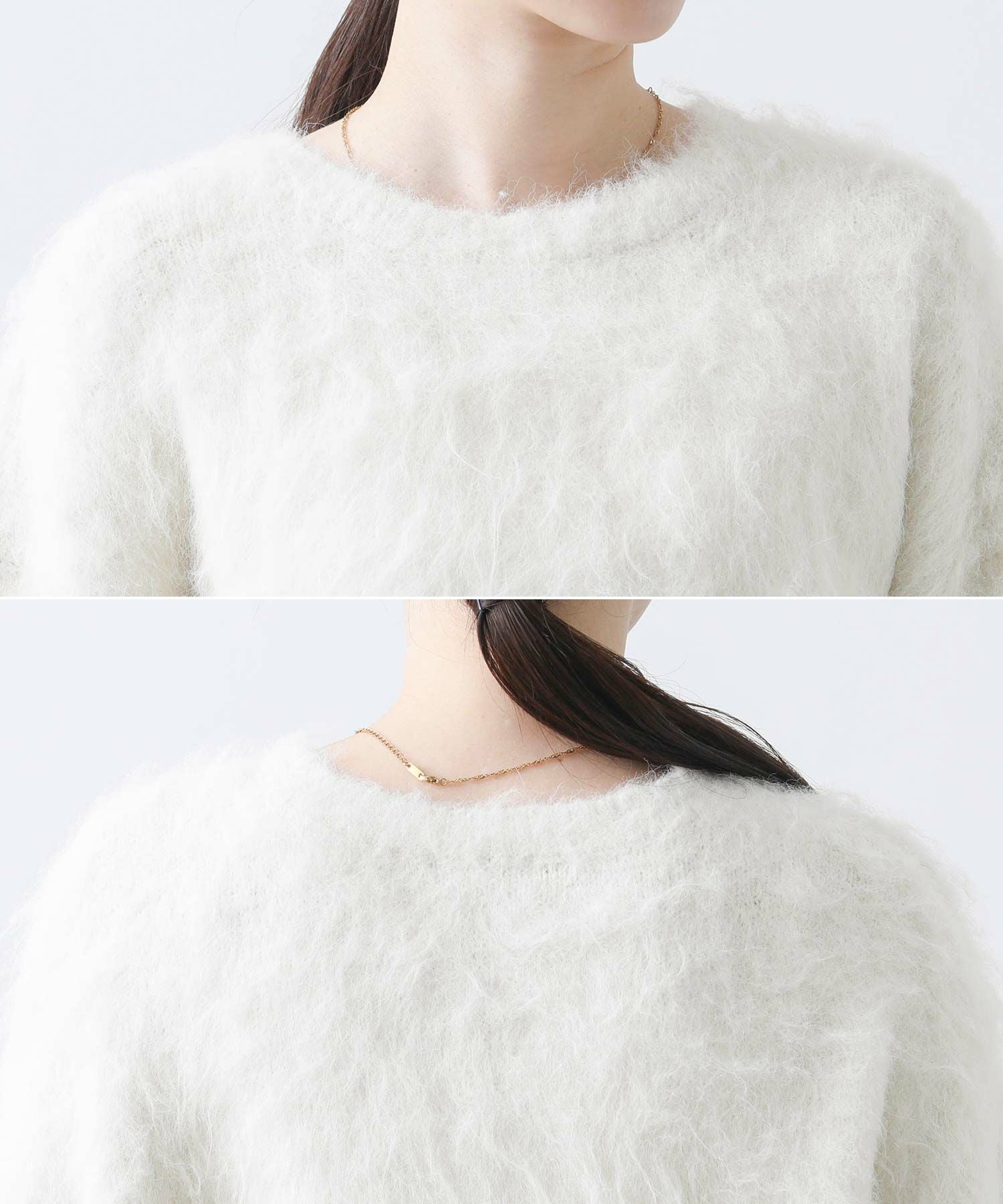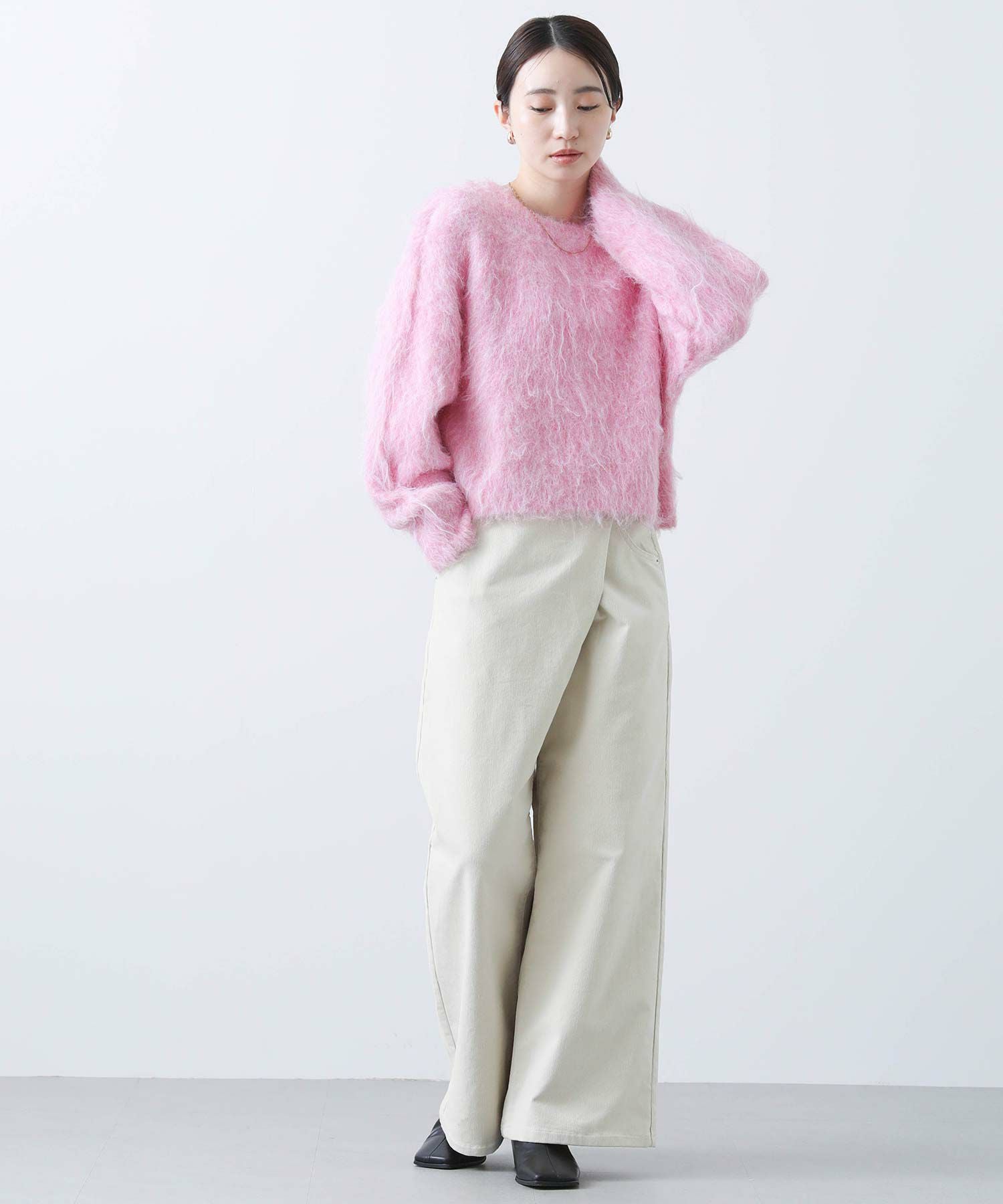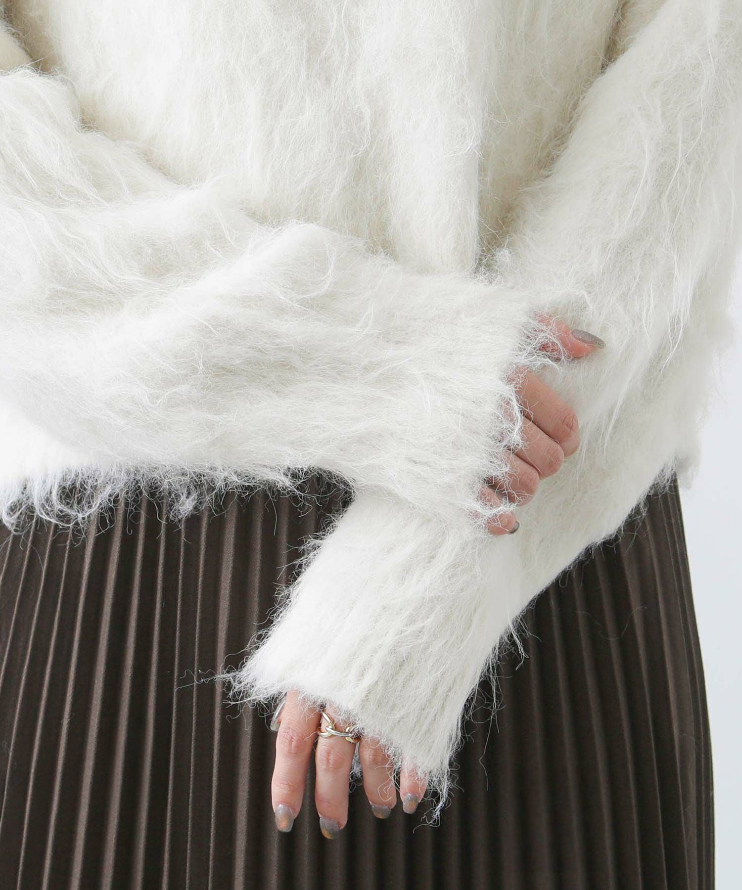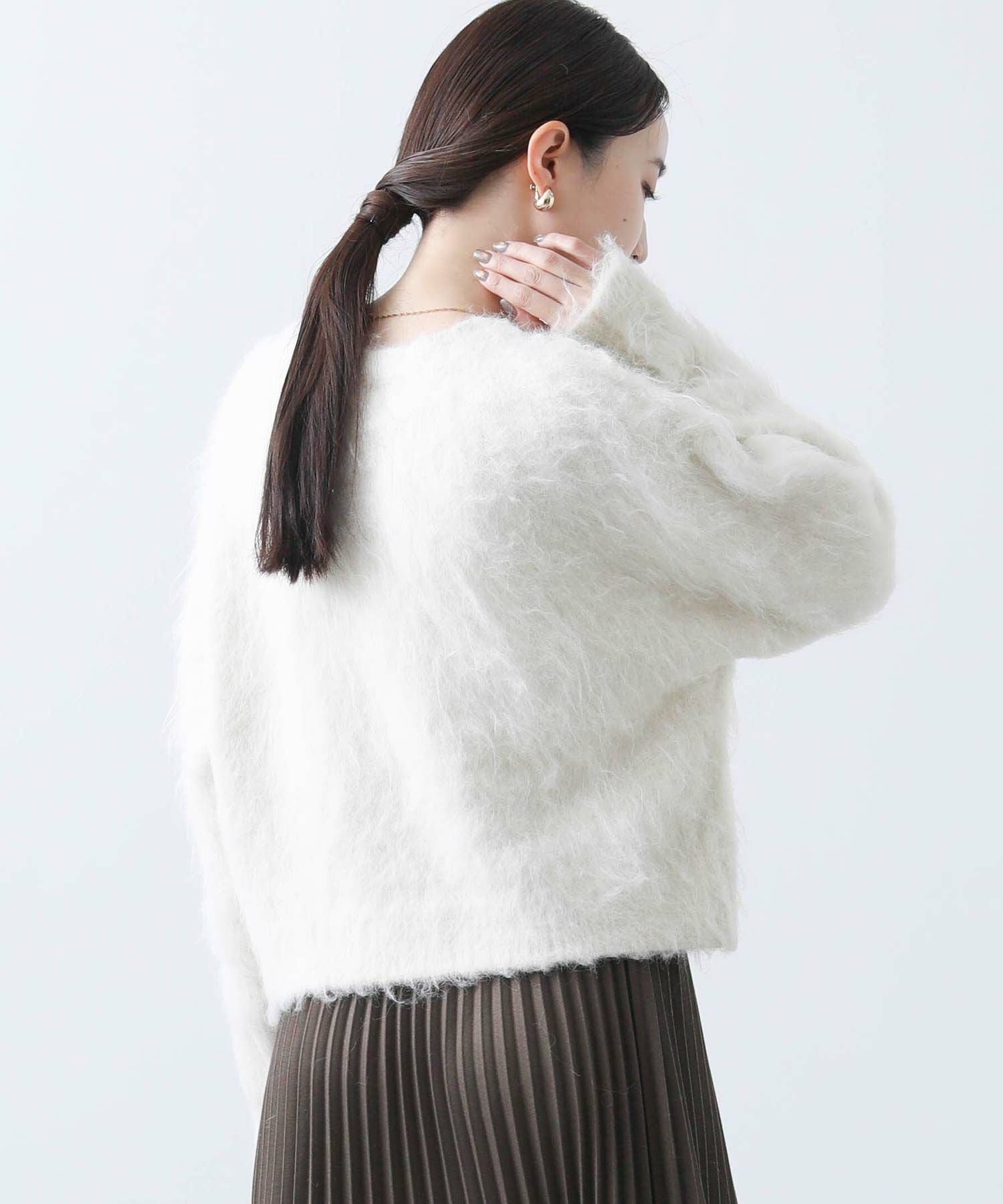 毛足の長いふわふわのシャギーが今年らしい、シンプルながら主役級のニットプルオーバー。