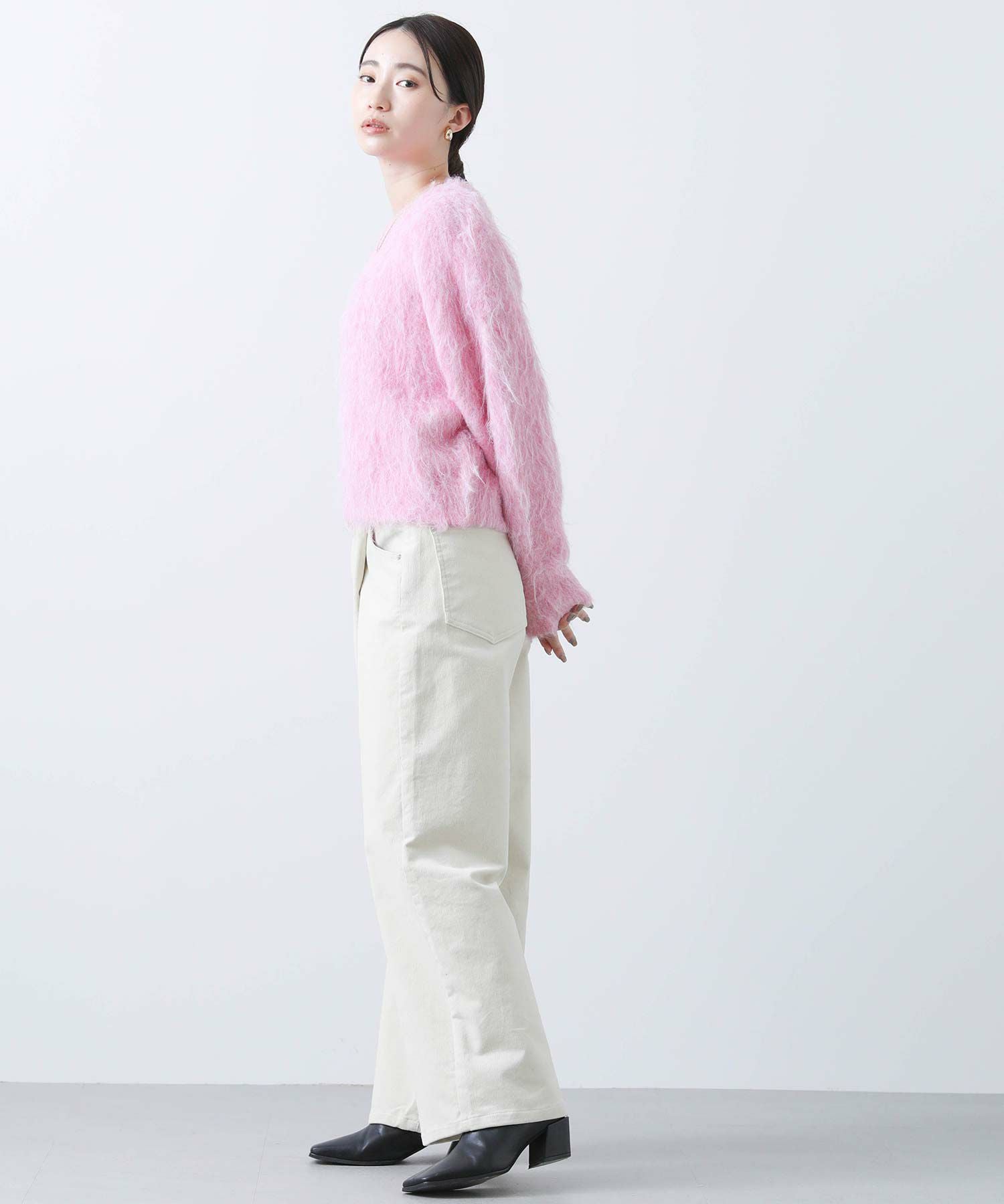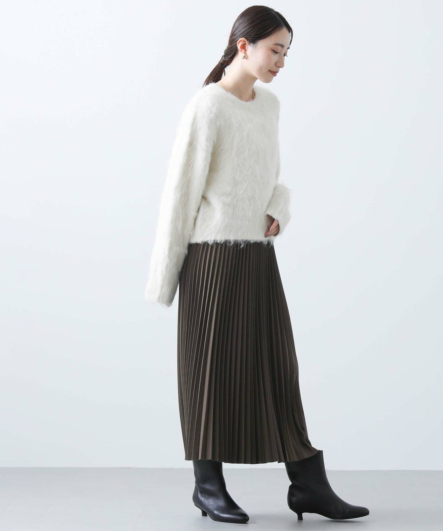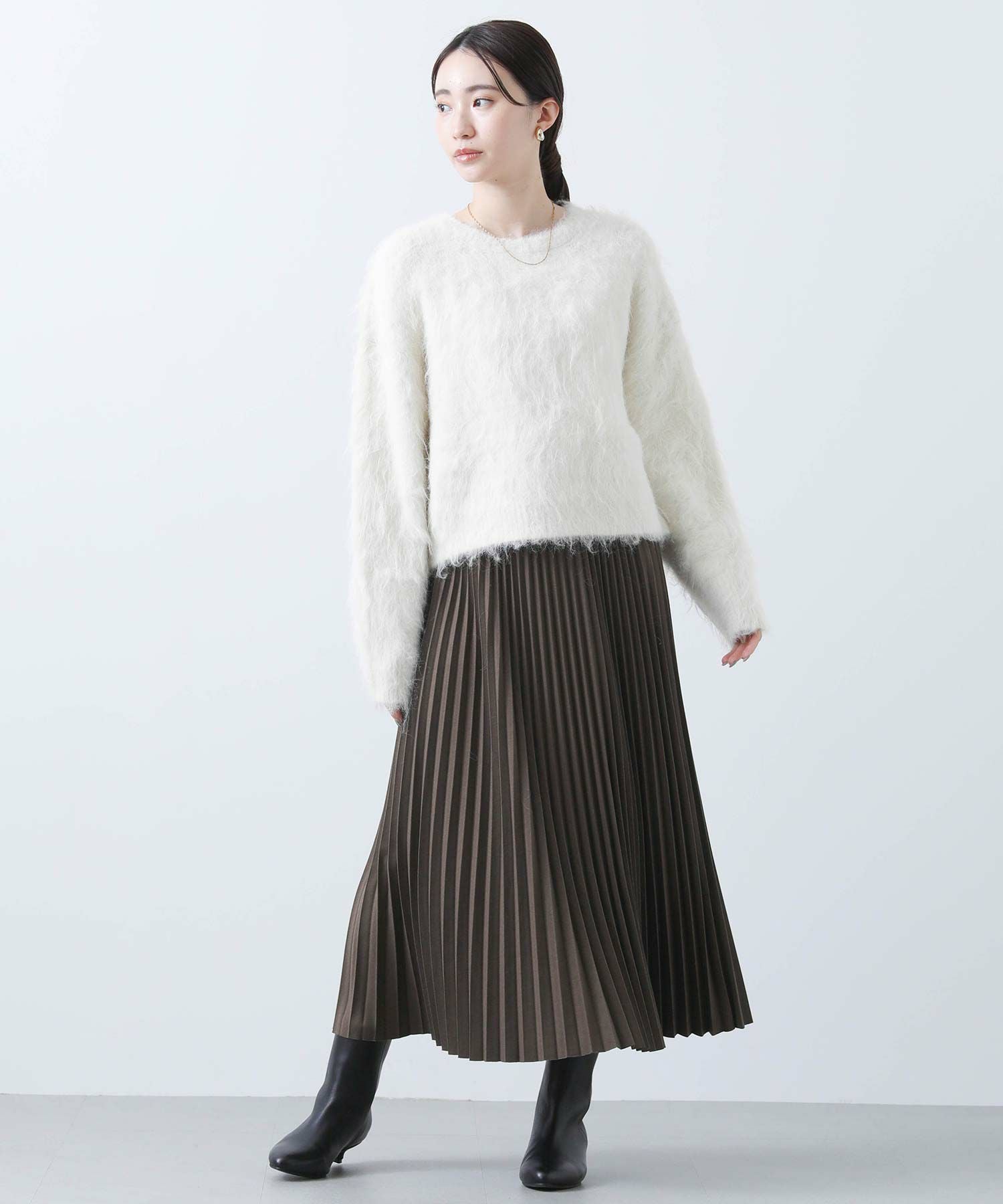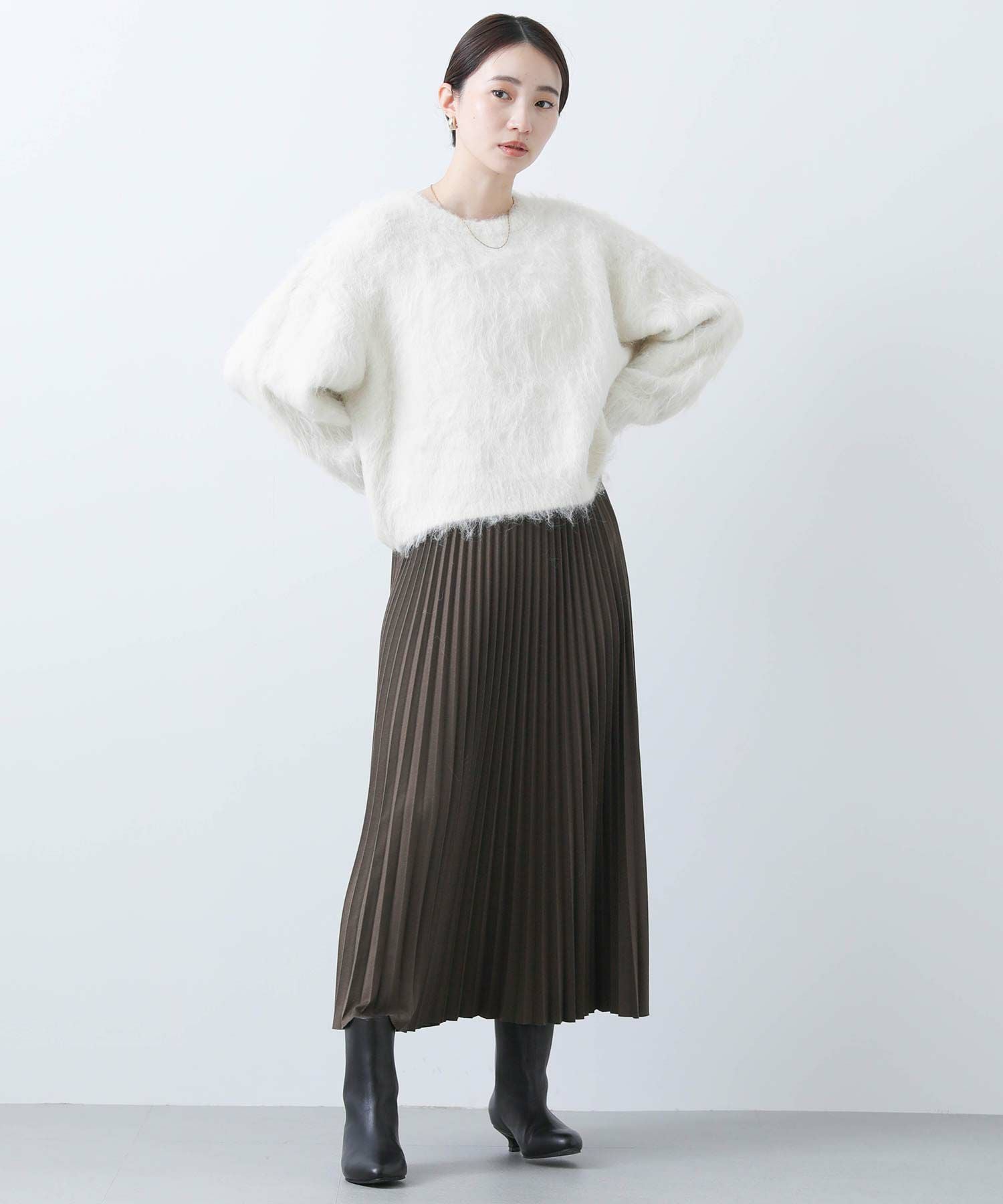 毛足の長いふわふわのシャギーが今年らしい、シンプルながら主役級のニットプルオーバー。