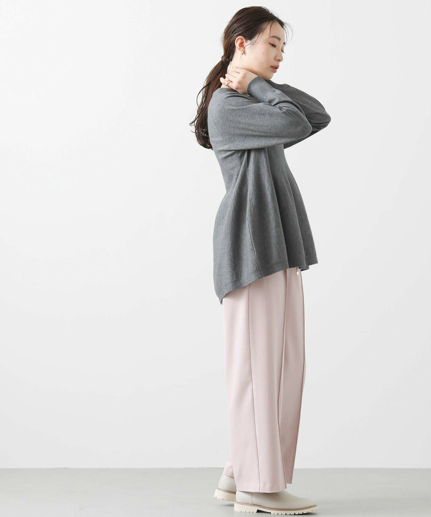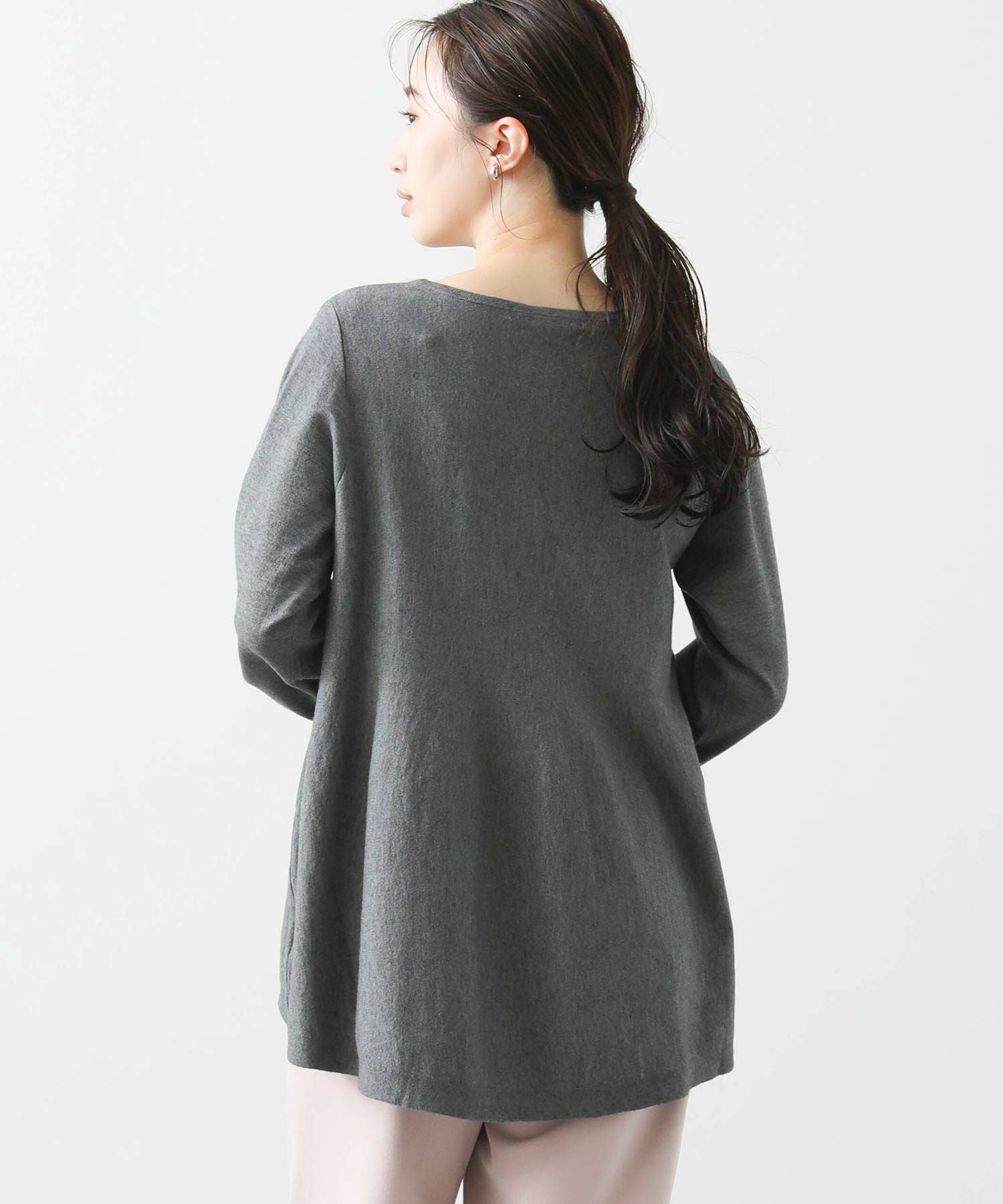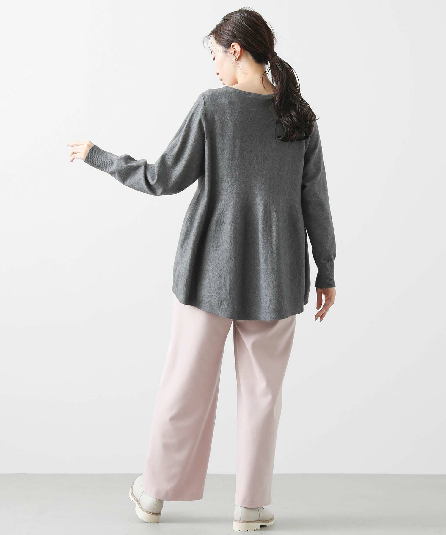 程よい厚みの生地感なので、アウターのインに着ていただきやすいフェミニンな1枚です。