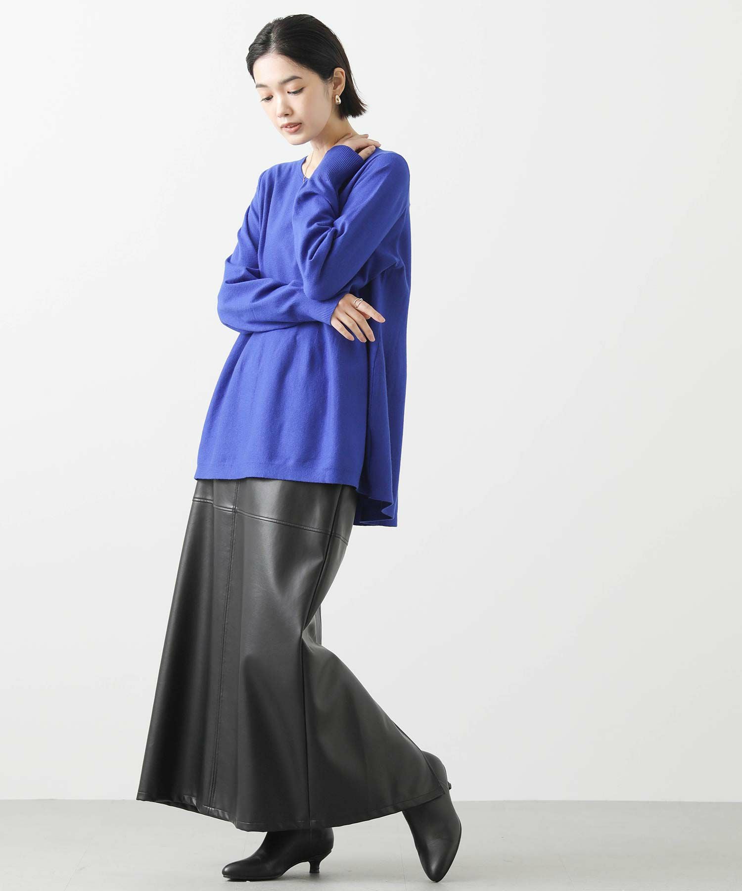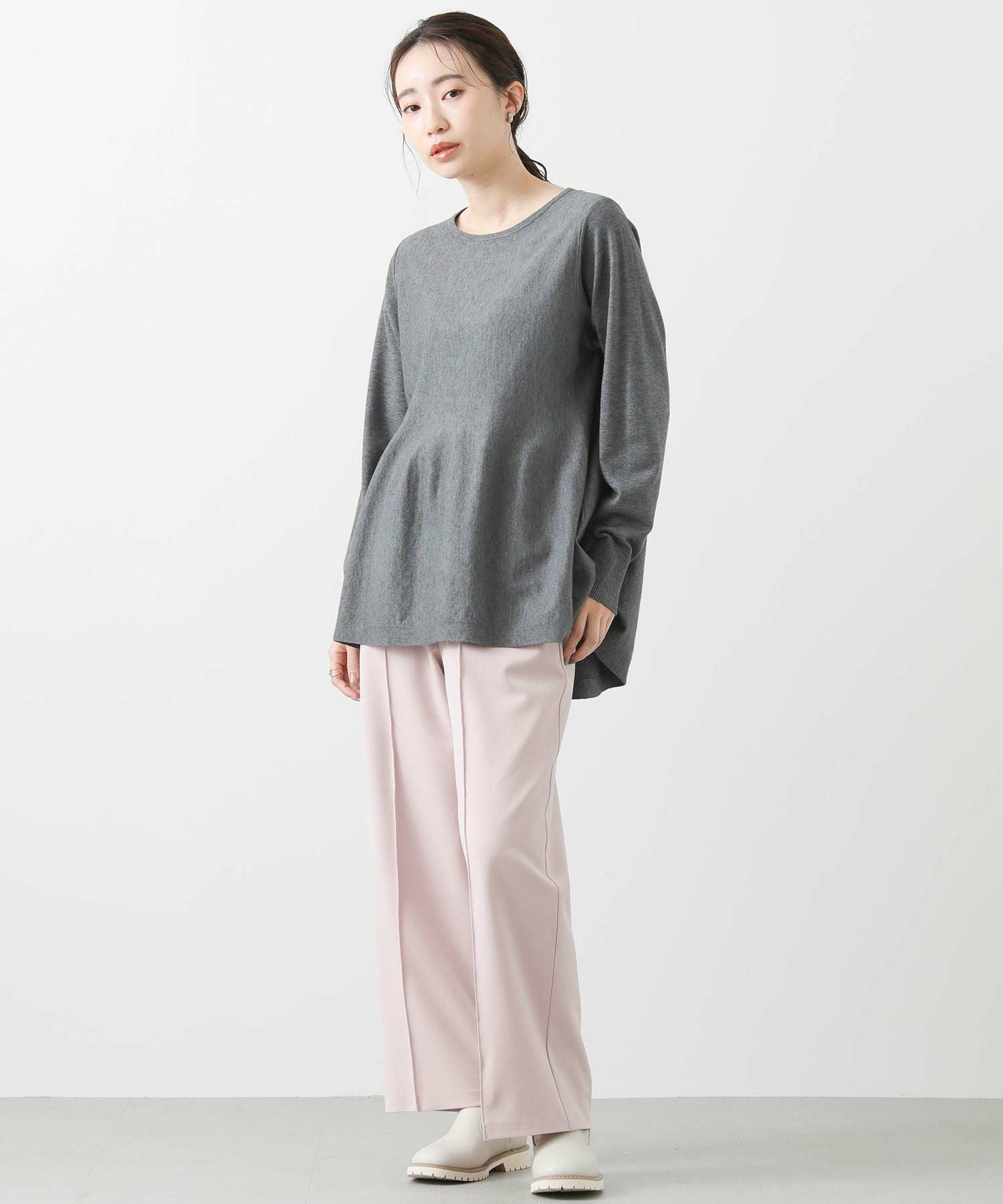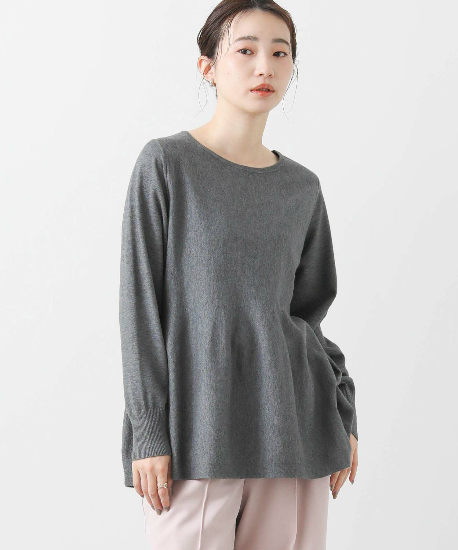 程よい厚みの生地感なので、アウターのインに着ていただきやすいフェミニンな1枚です。