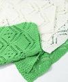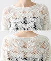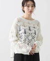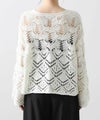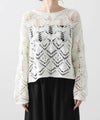 表情の出るコードヤーンを使用して、2種類の異なる透かし柄を組み合わせたニットプルオーバー。