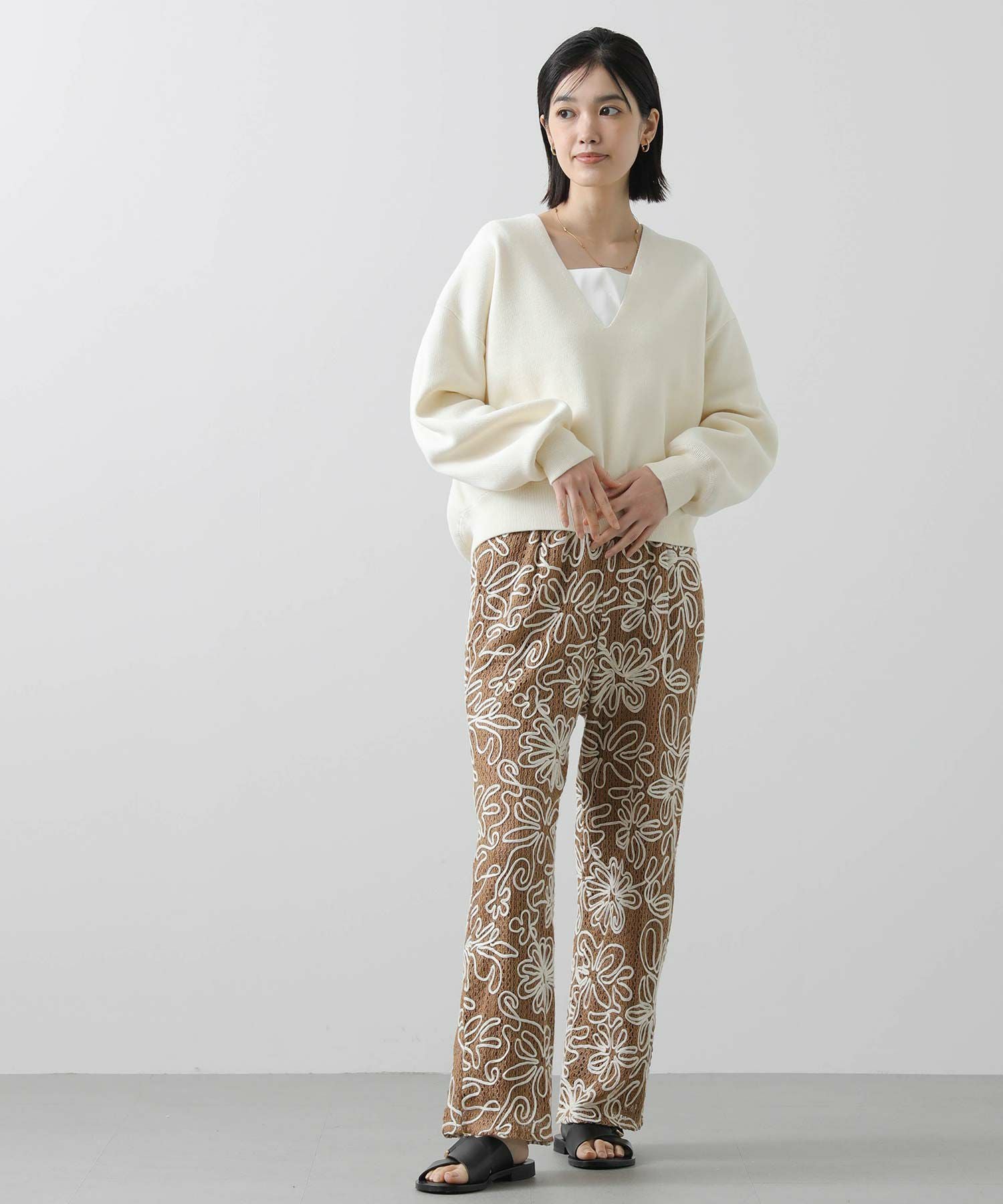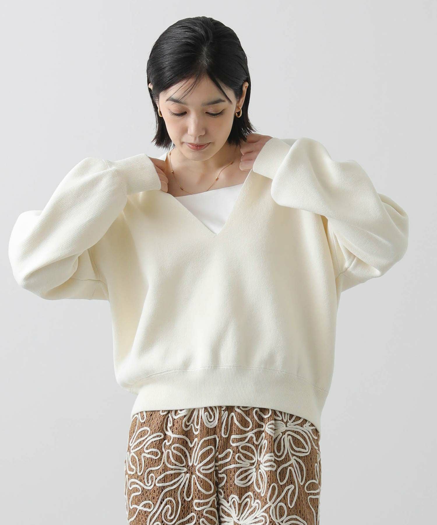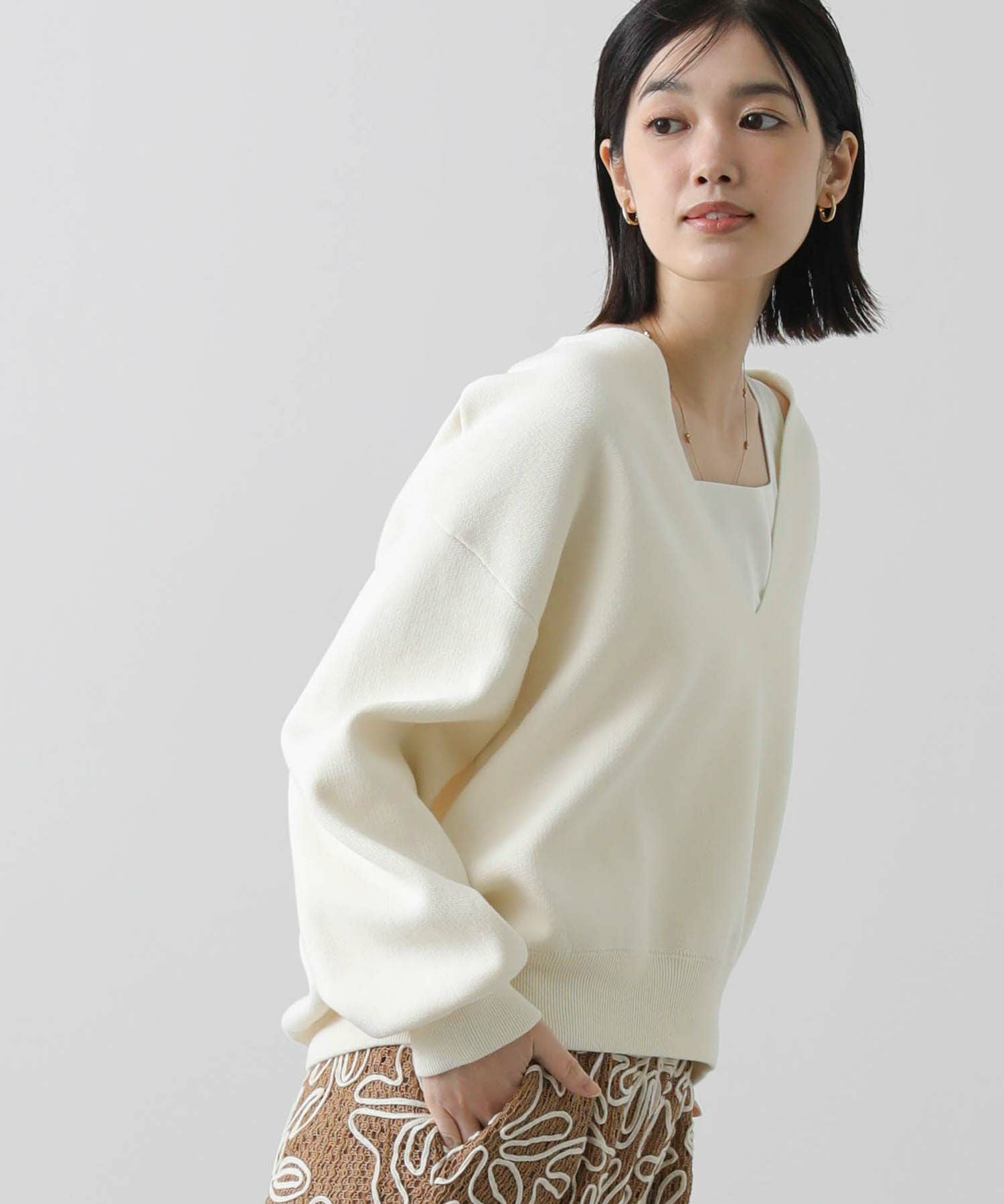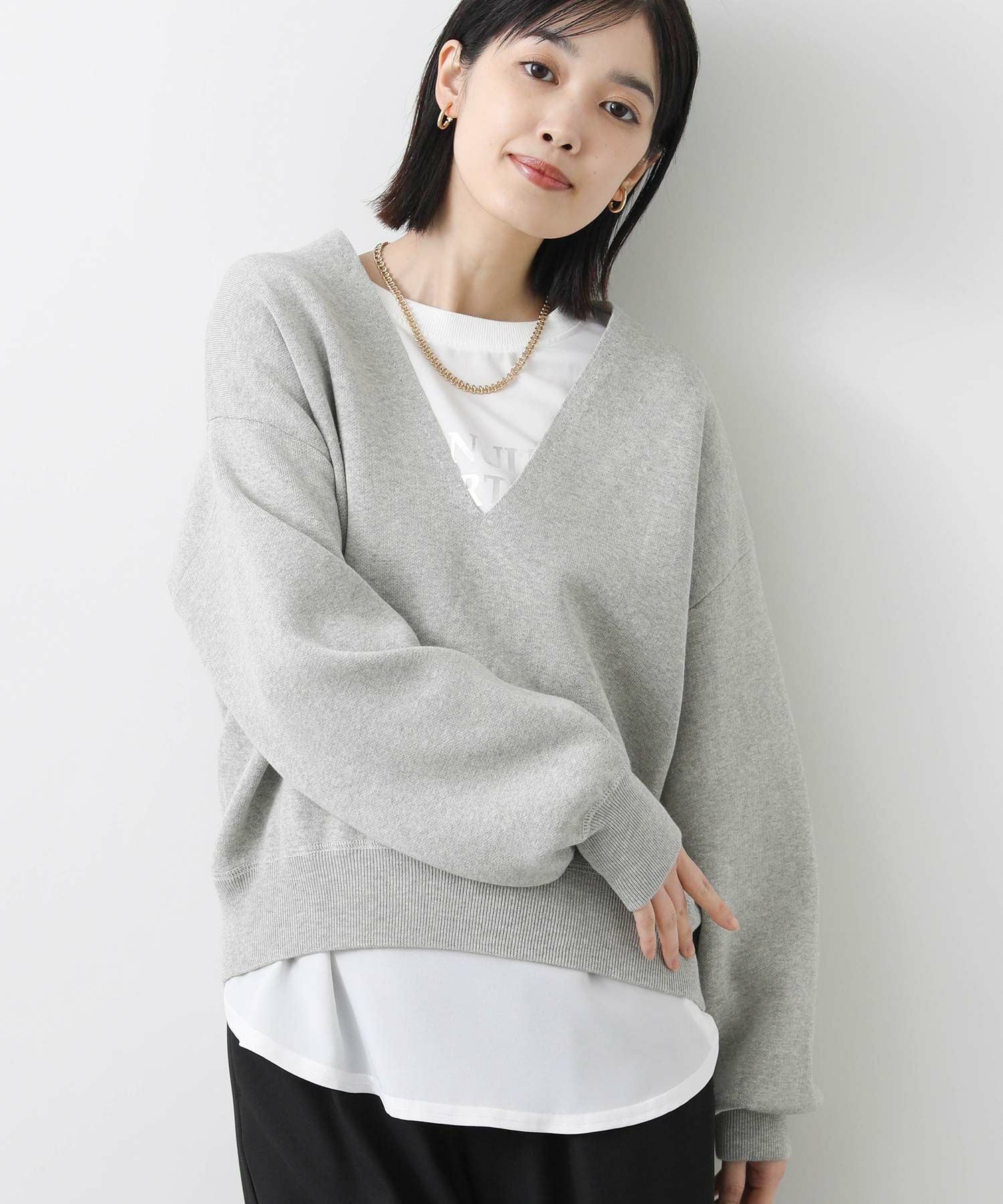シャープなラインの深いVネックで、小顔&着やせ見えが叶うニットが登場!