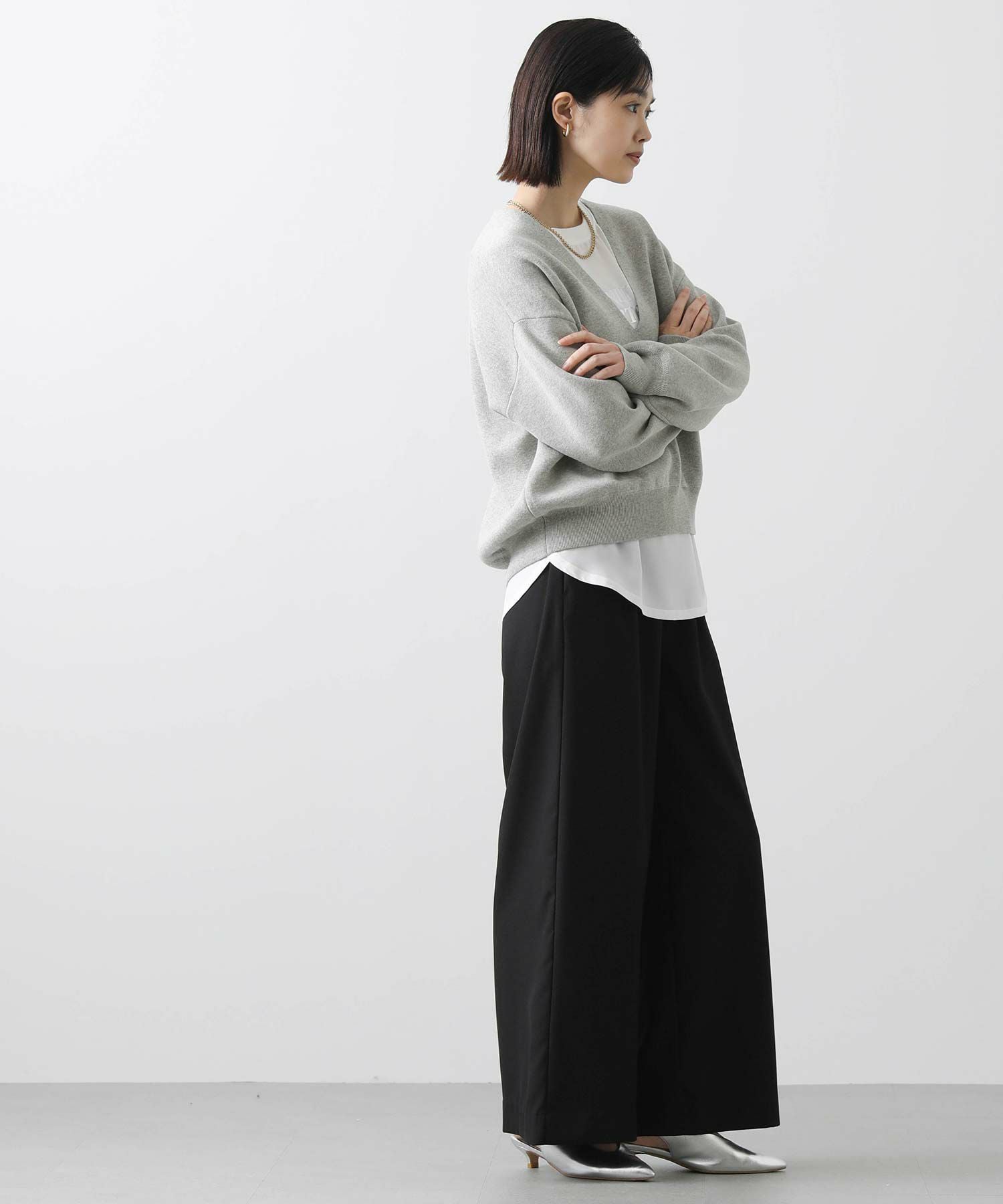 レイヤード次第でキレイめにも、カジュアルにも着まわせる優秀アイテム。タイトスカートやトロミパンツなど、上品なアイテムと合わせたスタイルも素敵です。