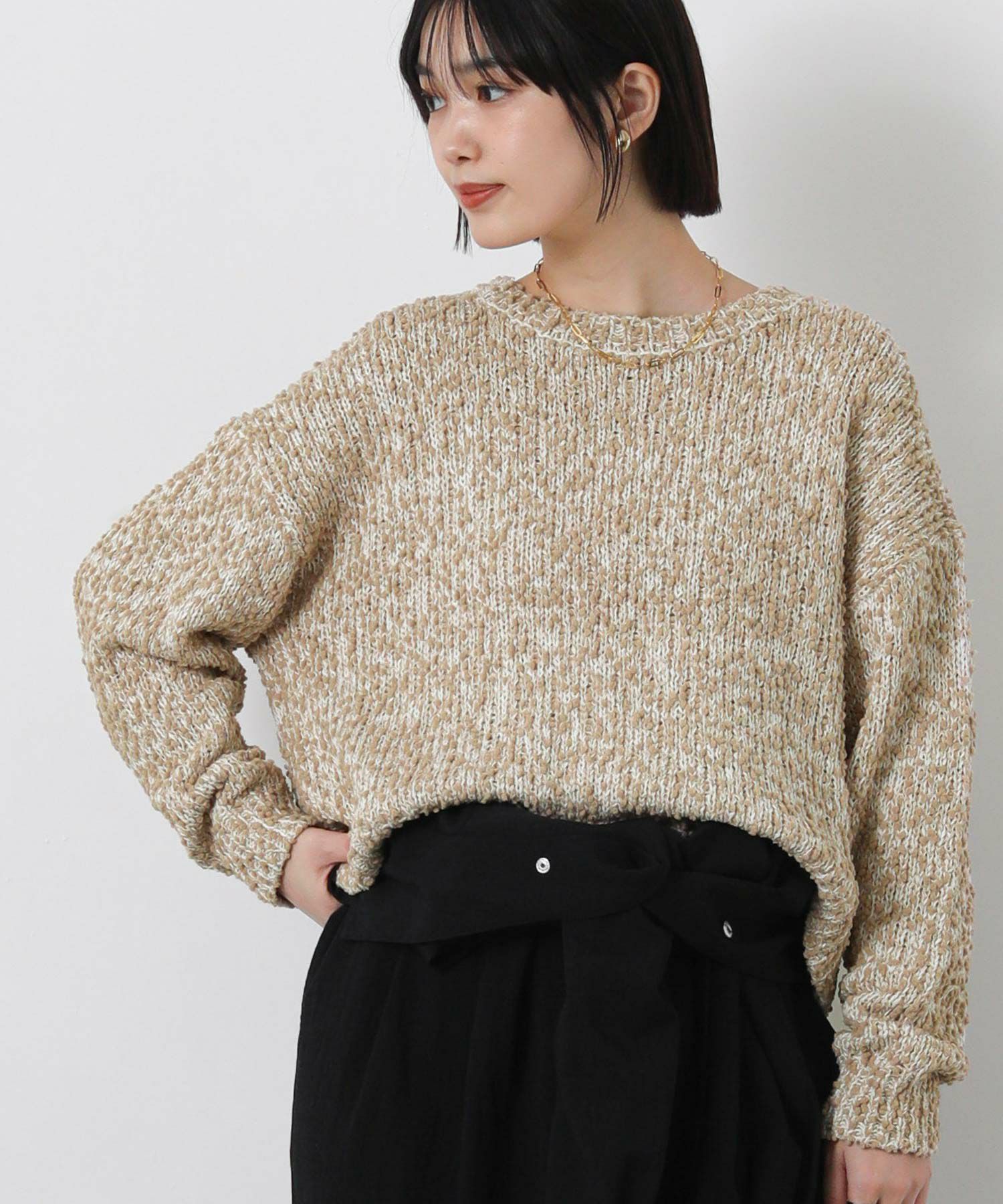 柔らかい素材感で肌あたりがよく、ミックス調の見た目がキャッチーで今年らしい1枚。