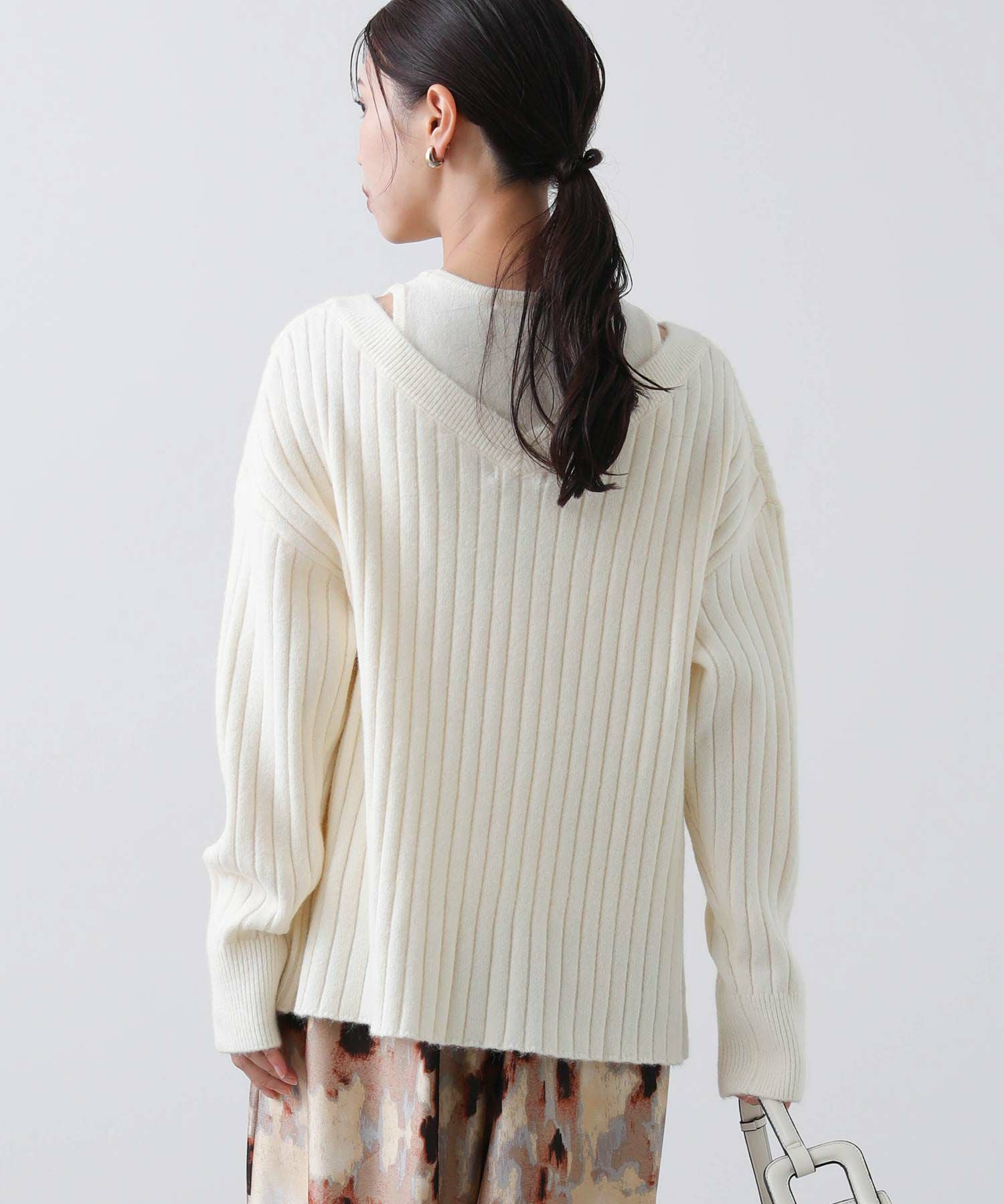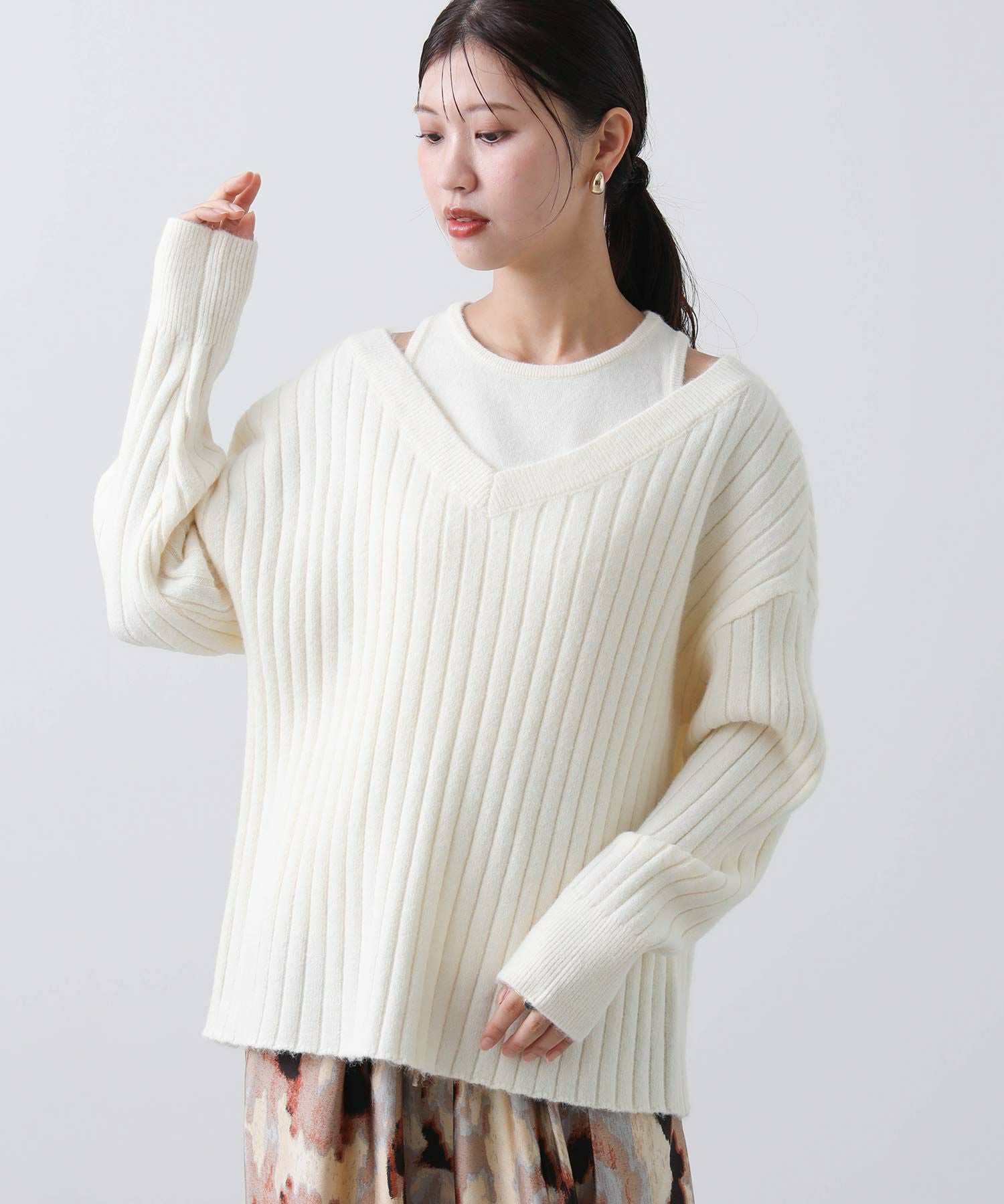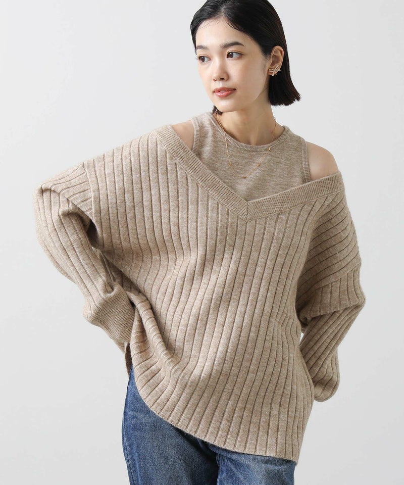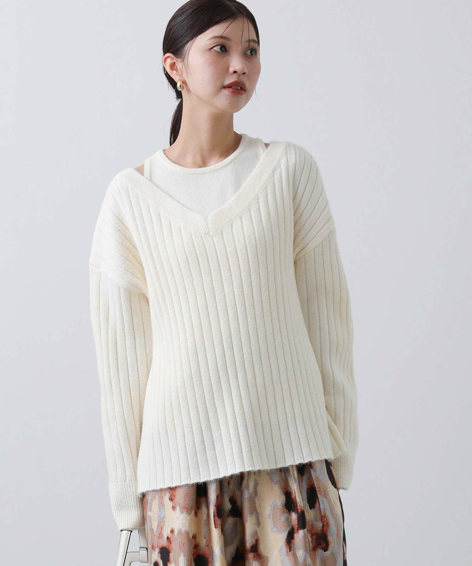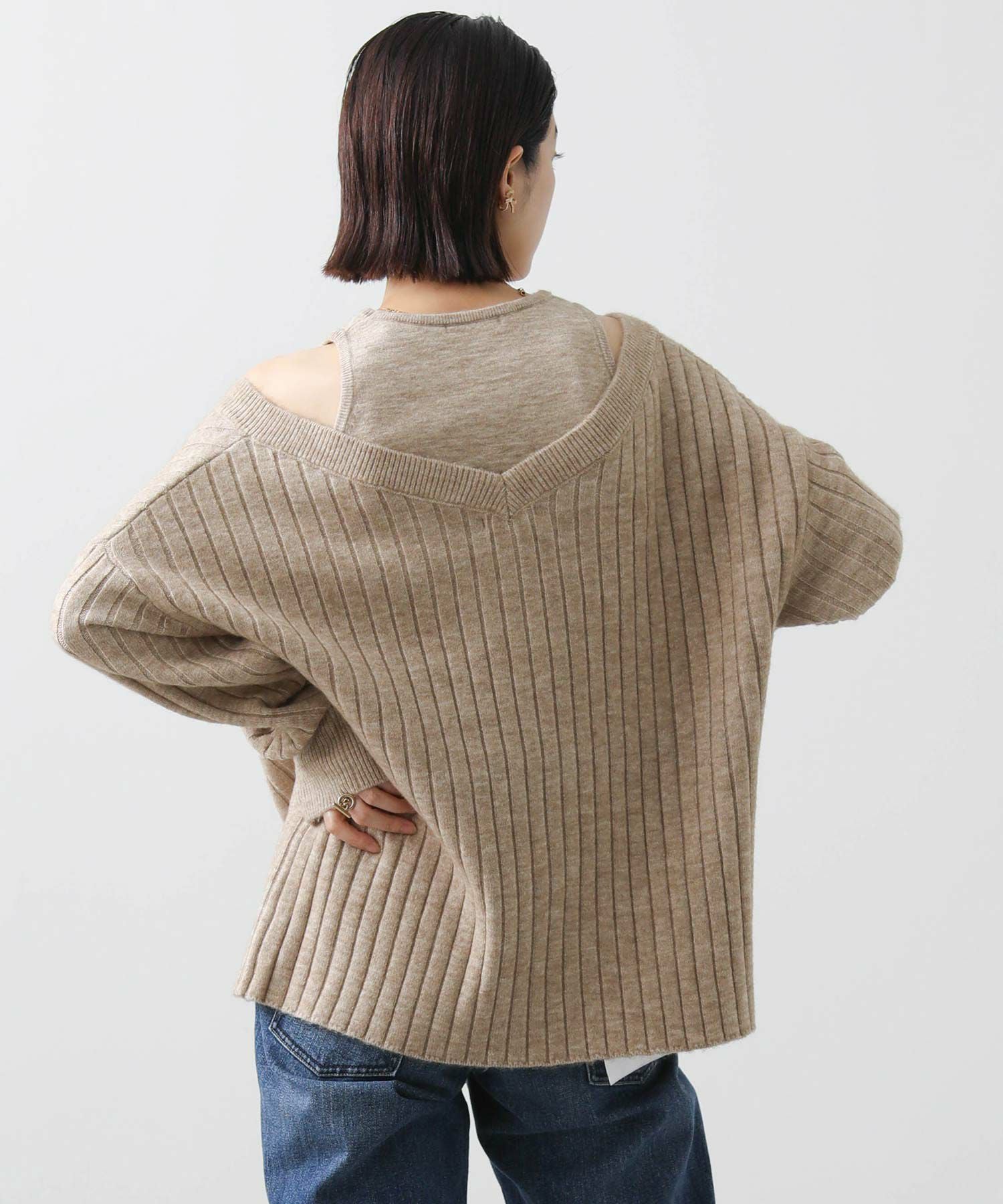 Vネックデザインのプルオーバーとニットタンクのセットニット。