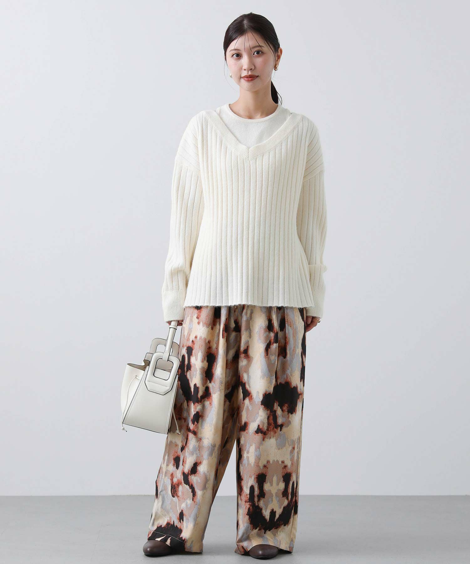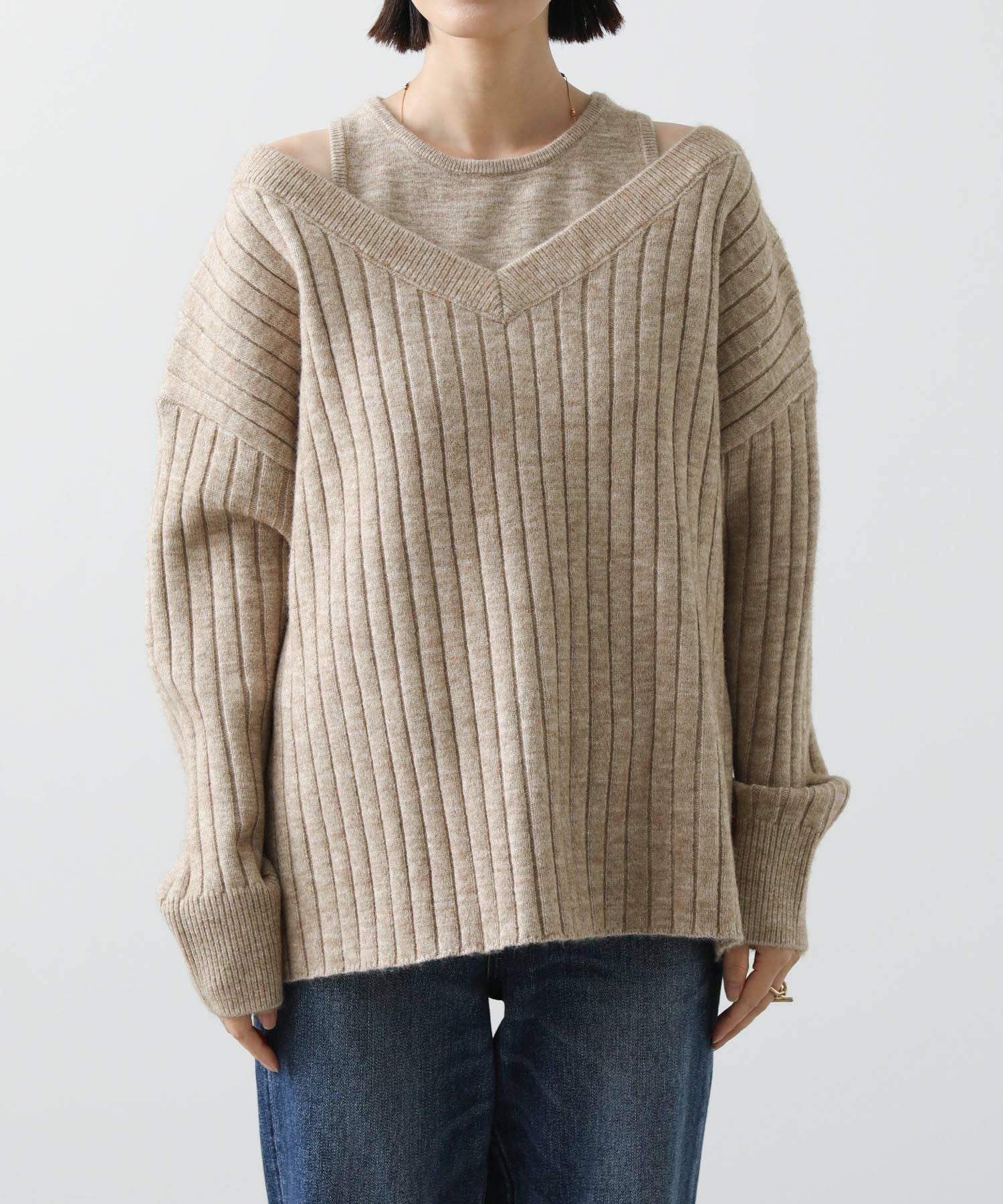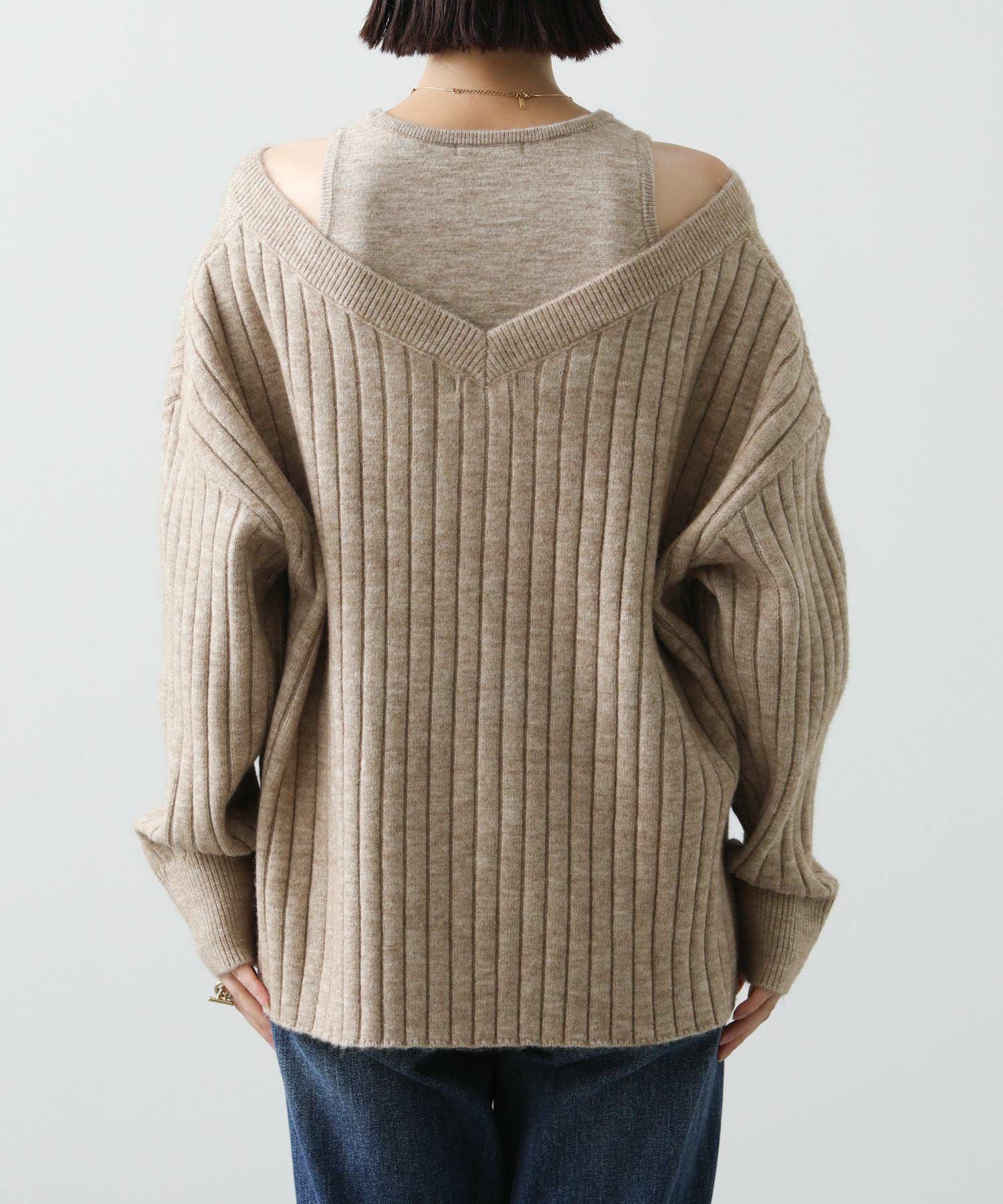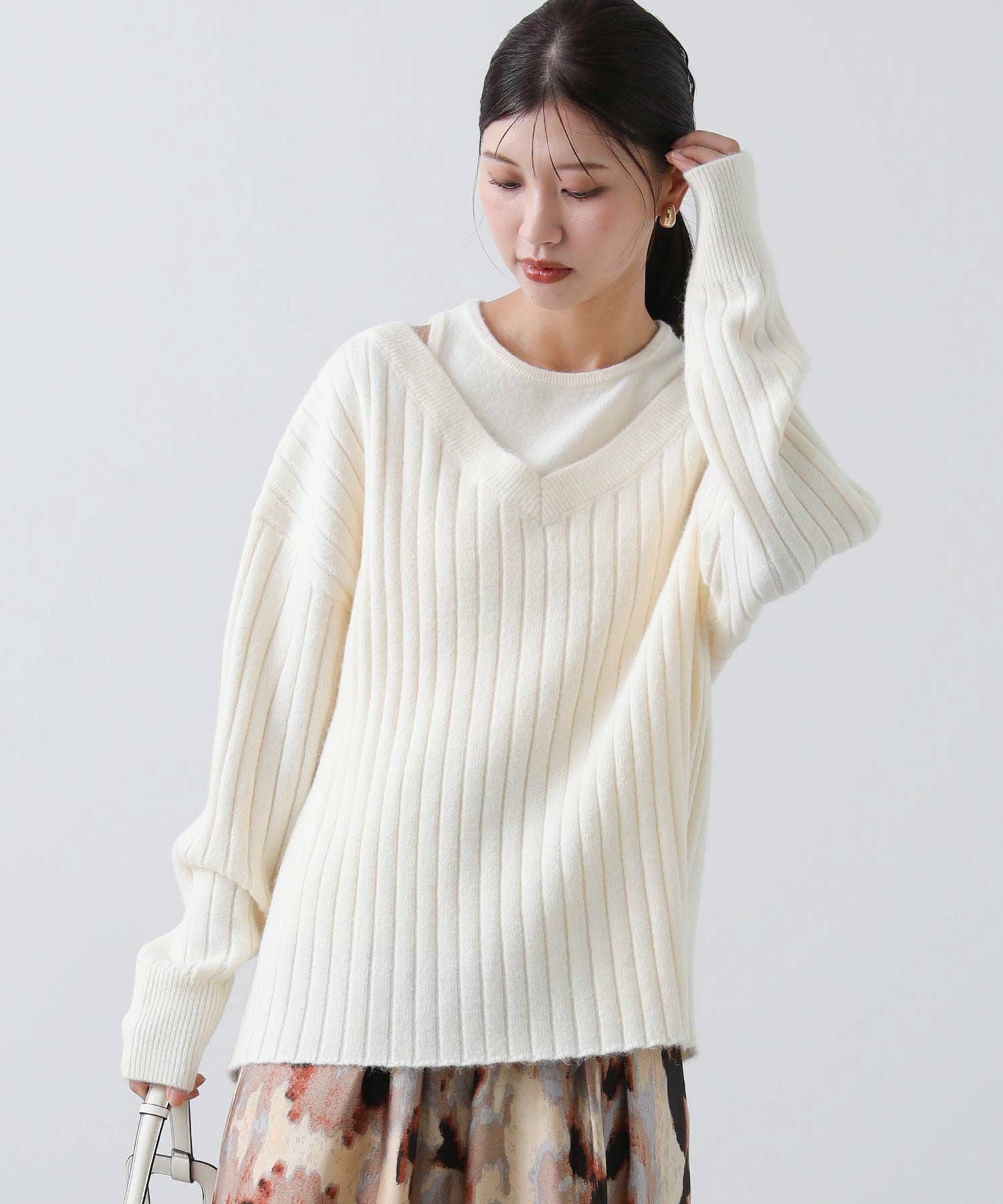 Vネックデザインのプルオーバーとニットタンクのセットニット。