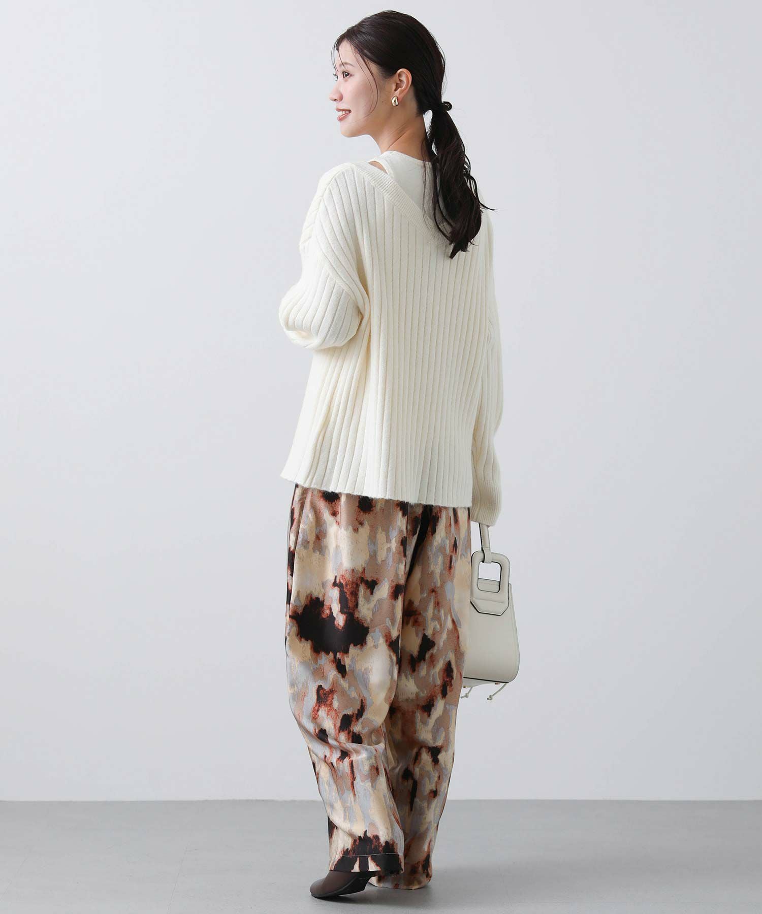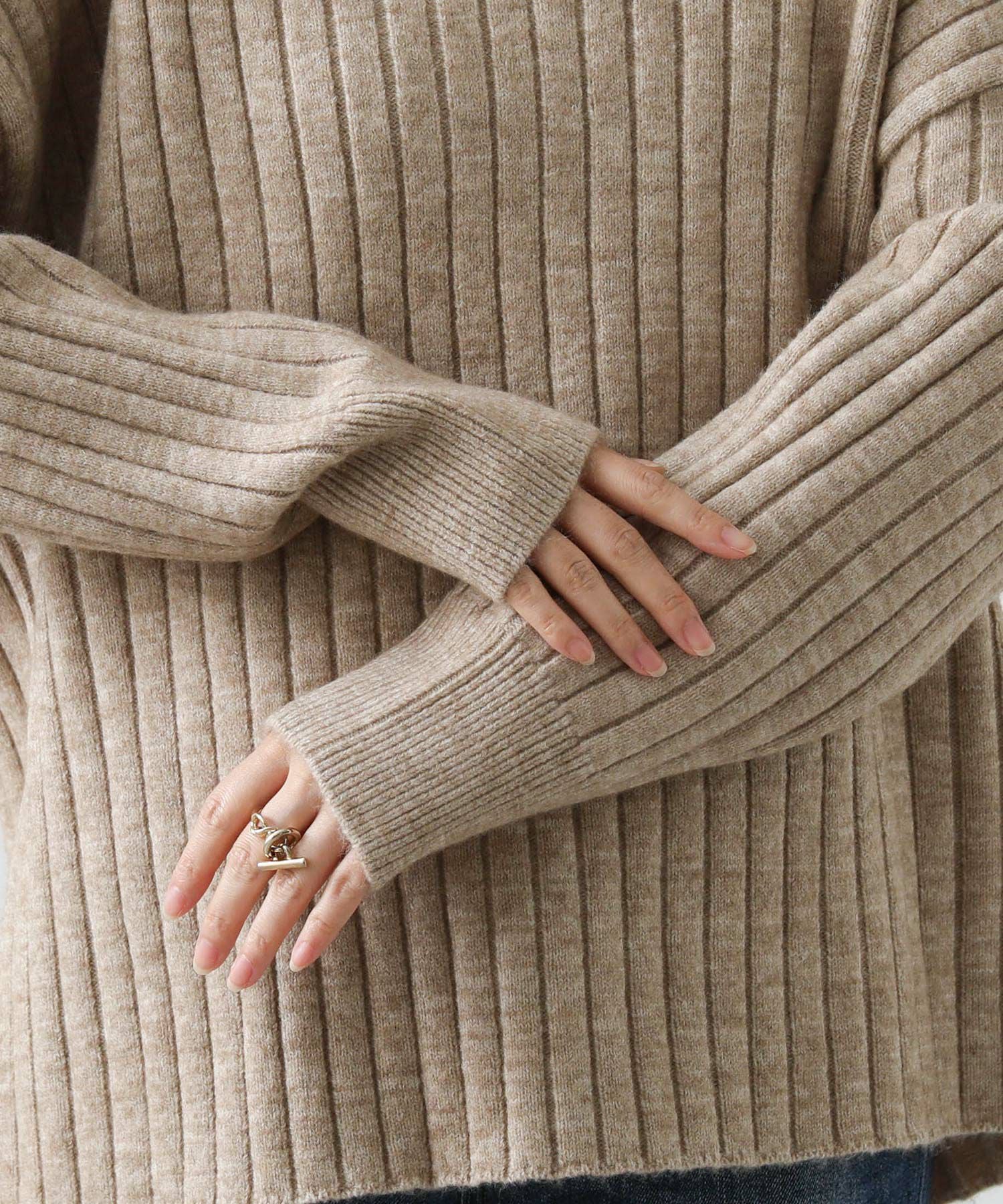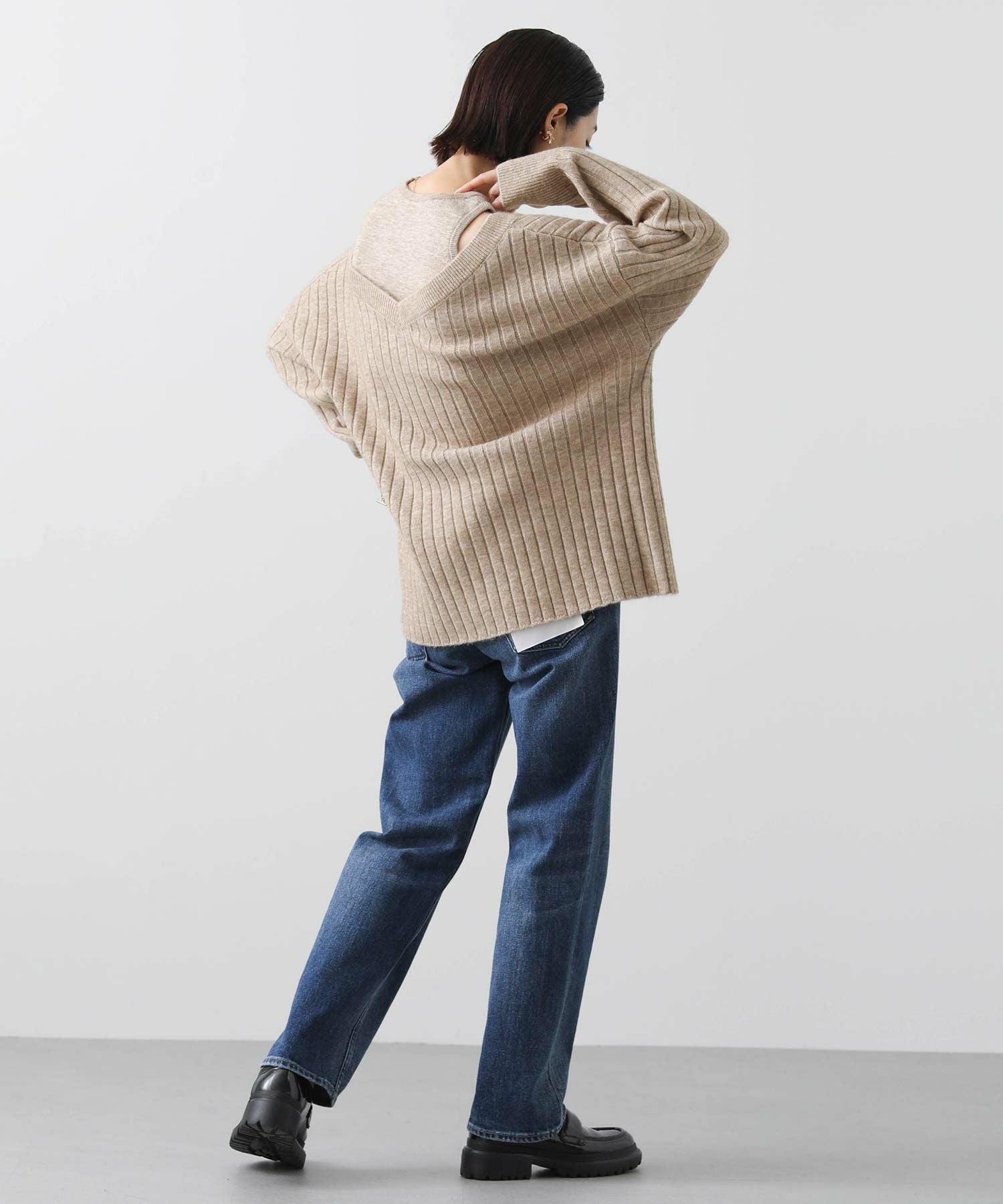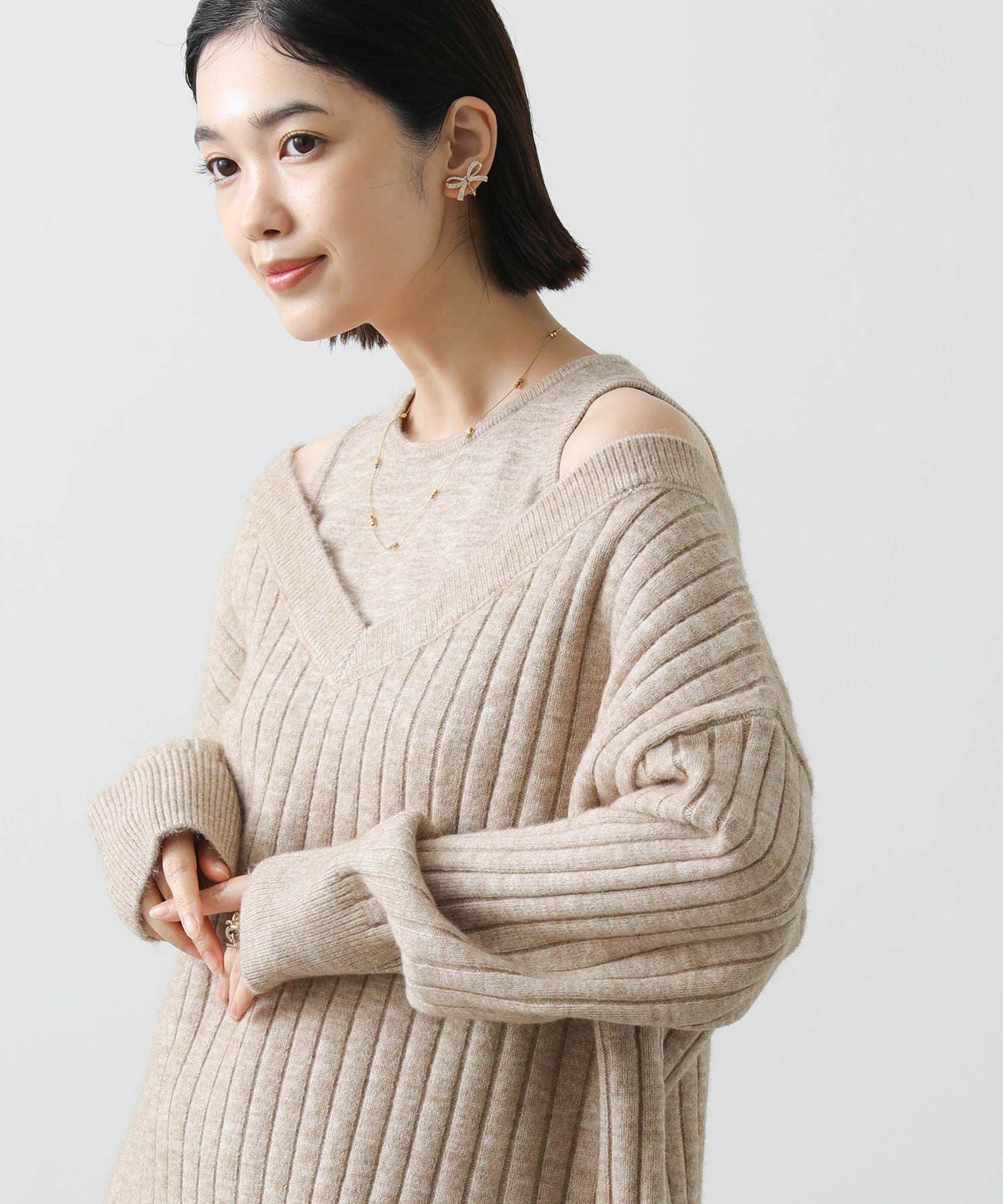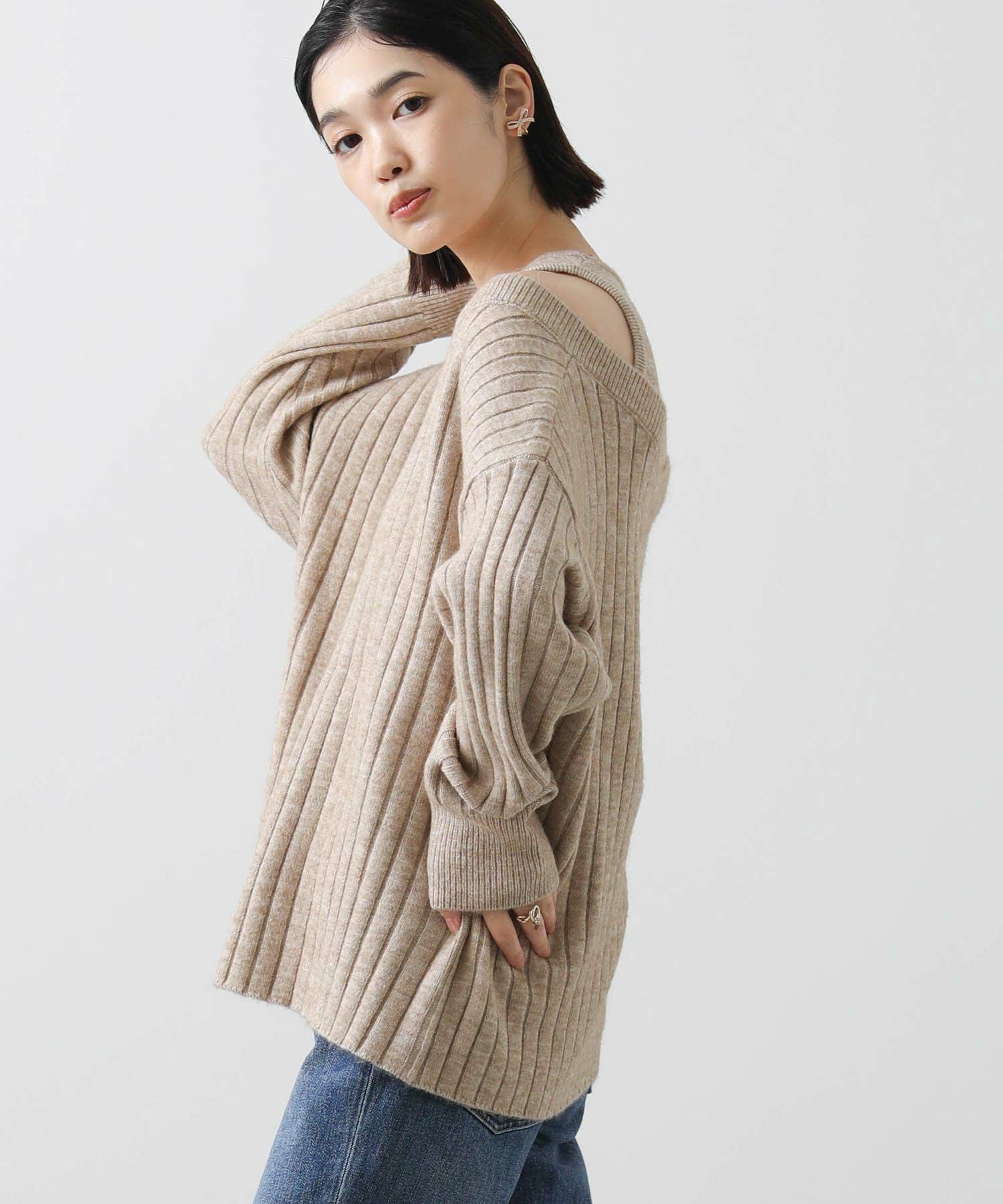 柔らかなニット素材が大人な雰囲気に。さり気ない肌見せが女性らしい着こなしに仕上がるポイントです。
