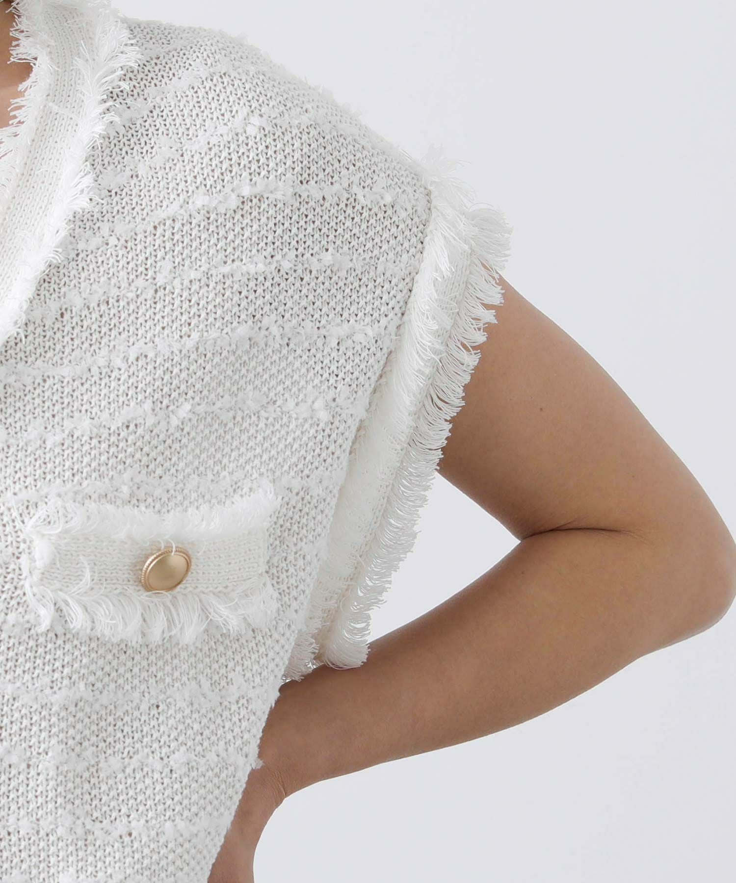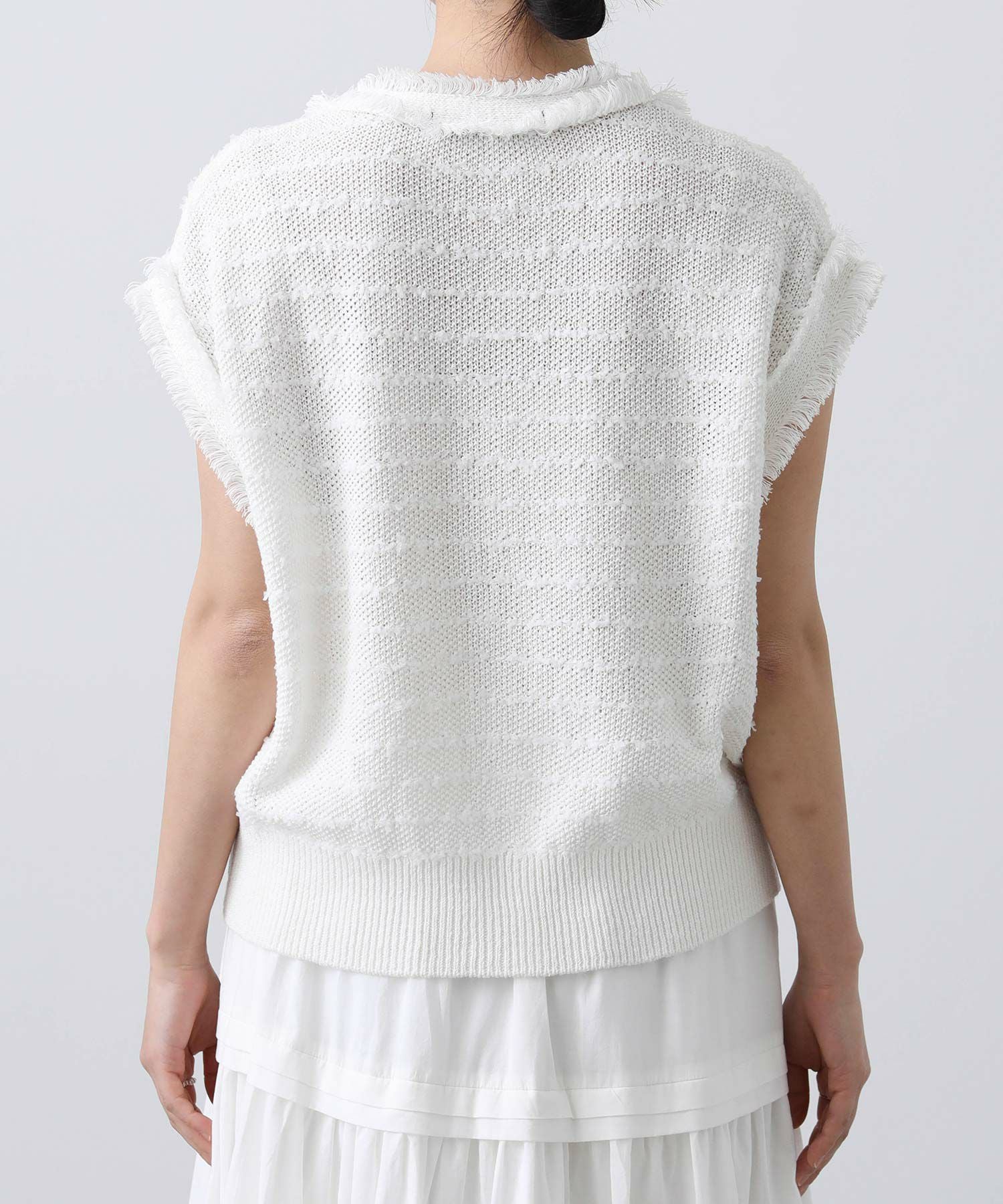 立体感のある糸とサラッとした糸を組み合わせてツィード風に編み上げたニットベスト。