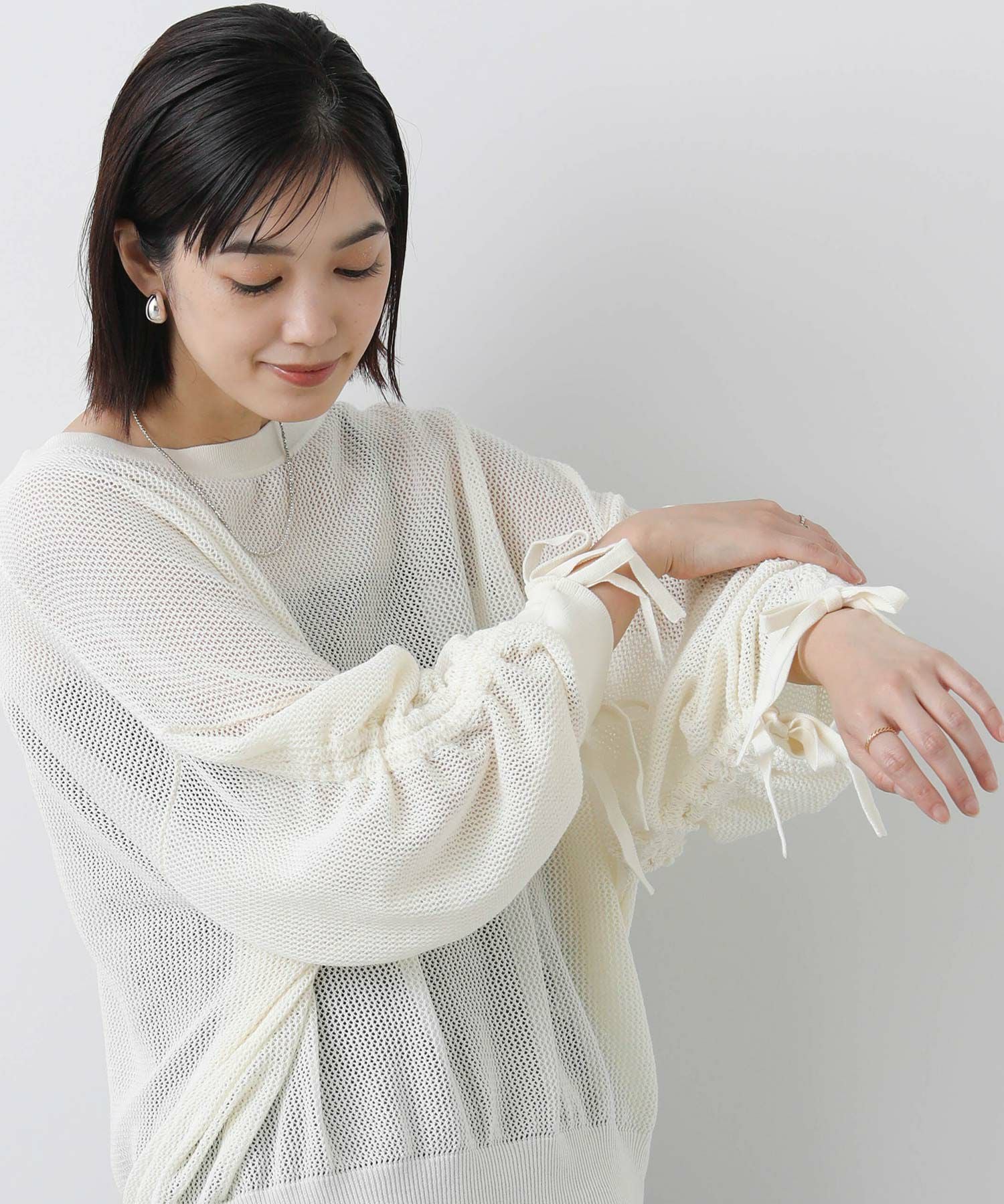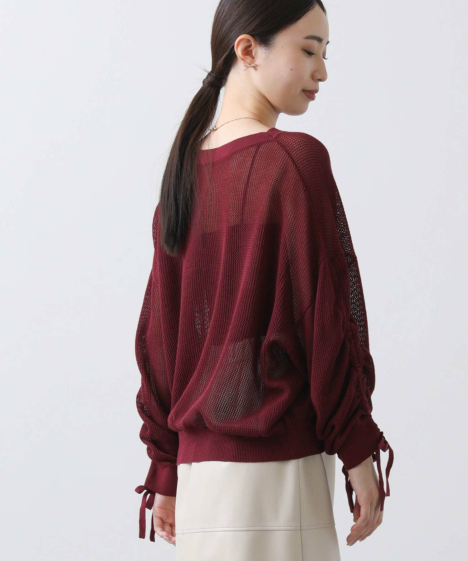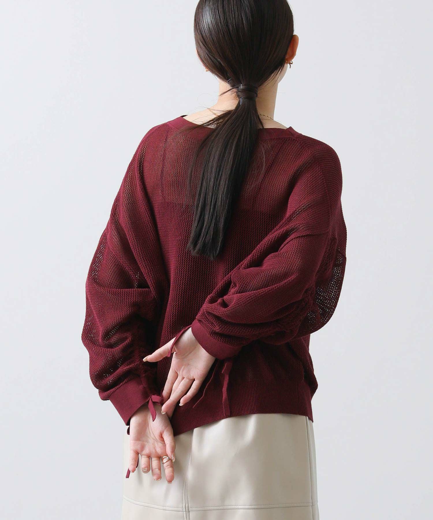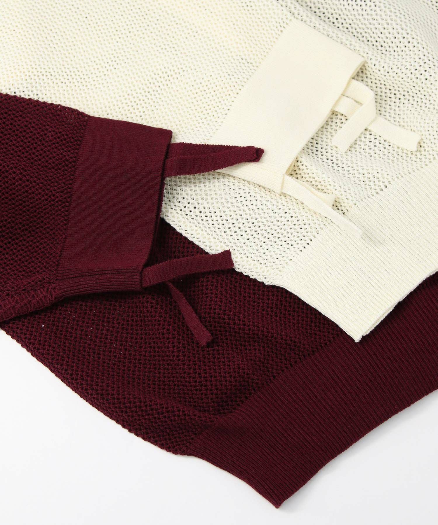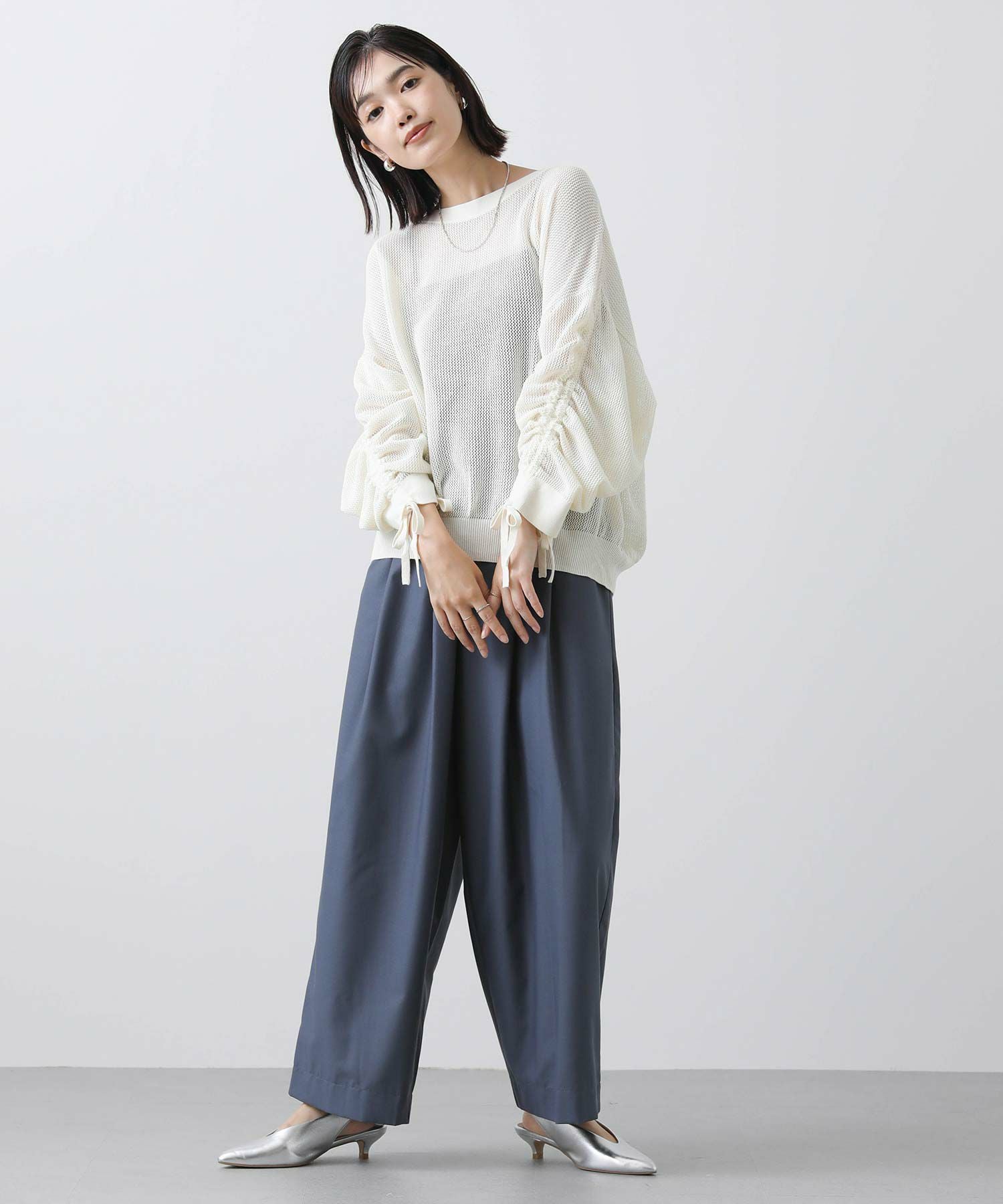ワイドシルエットのメッシュ編みニット。